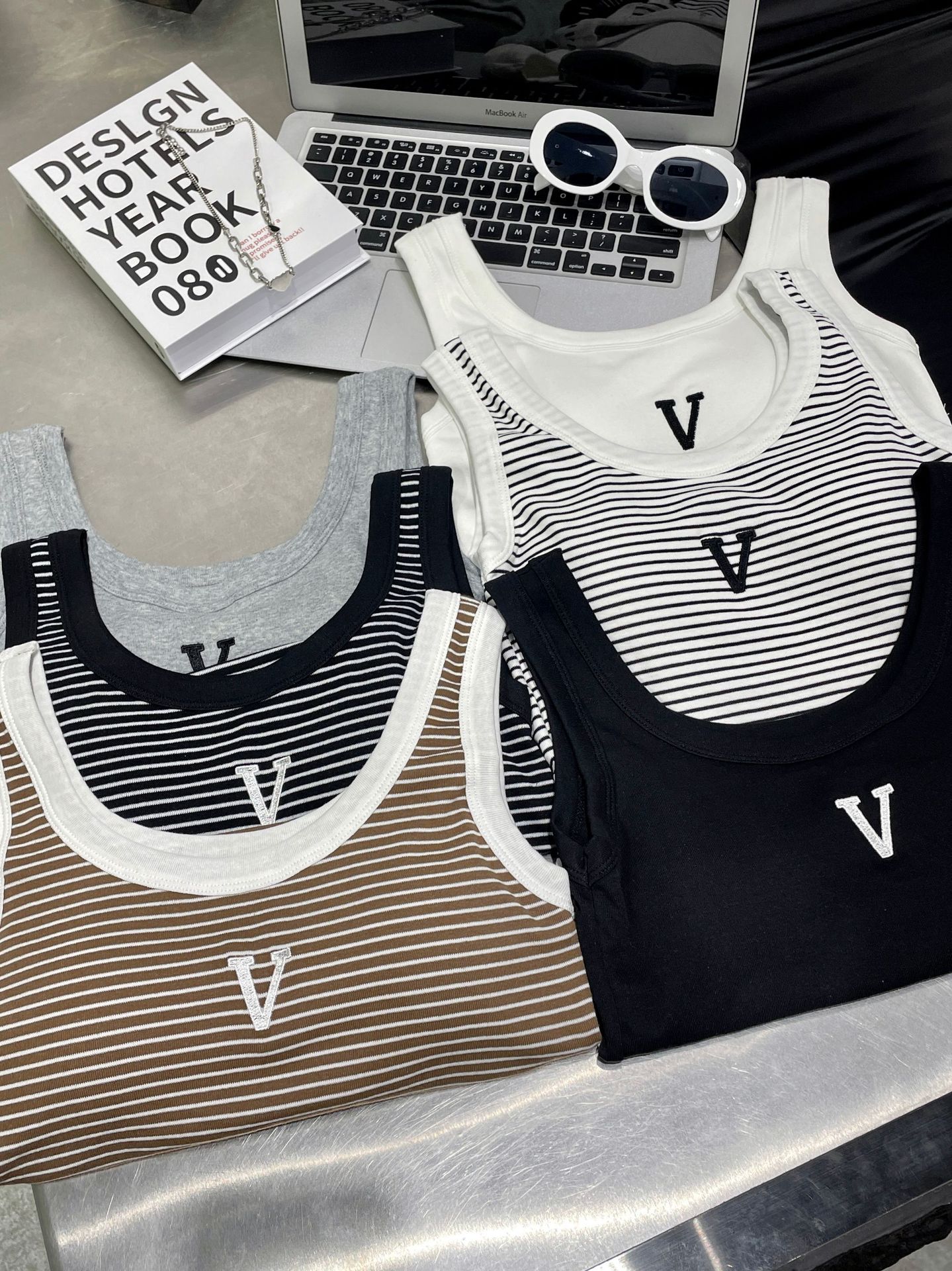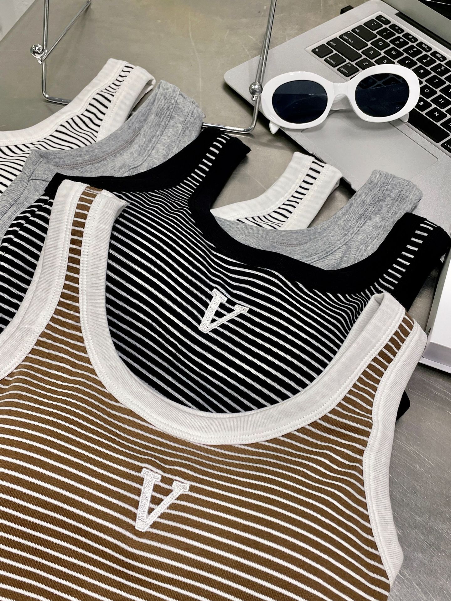 标题:撞色条纹一体杯U型美背吊带背心女内搭打底外穿性感无袖抹胸上衣