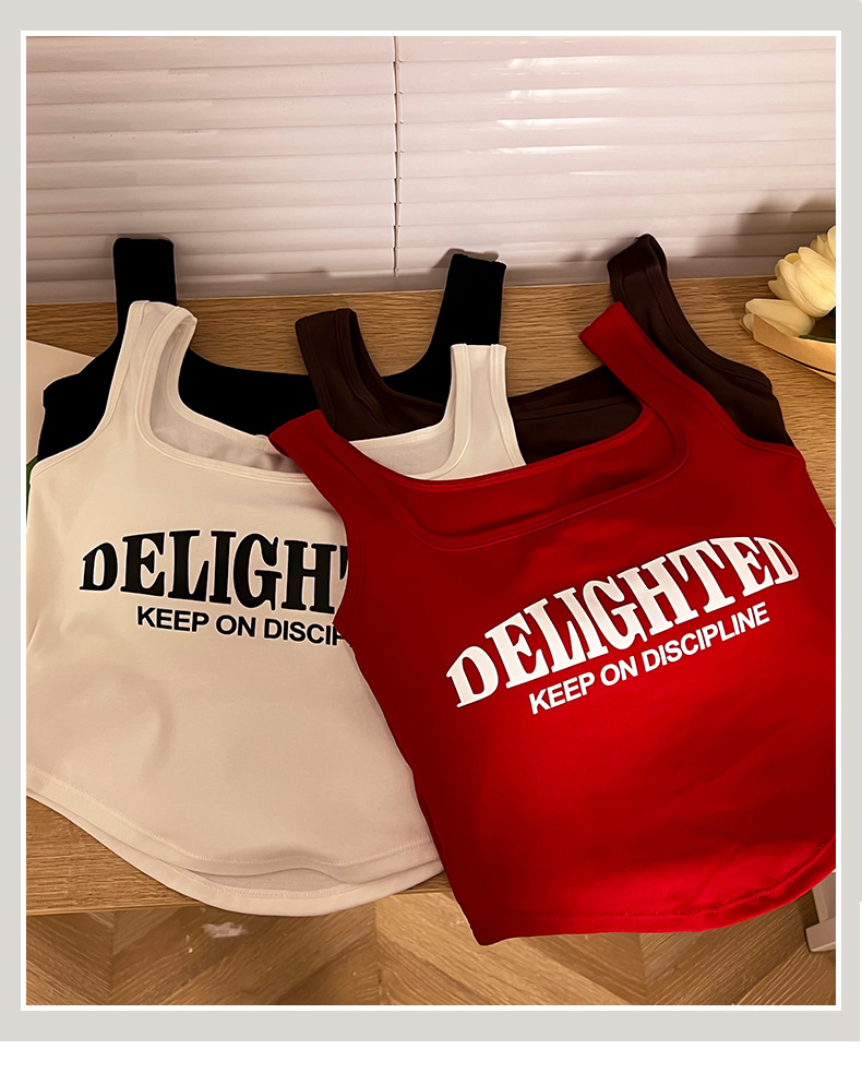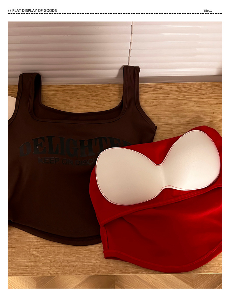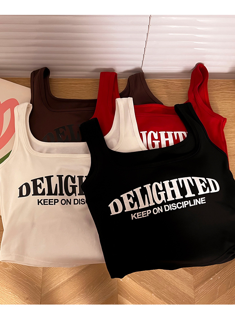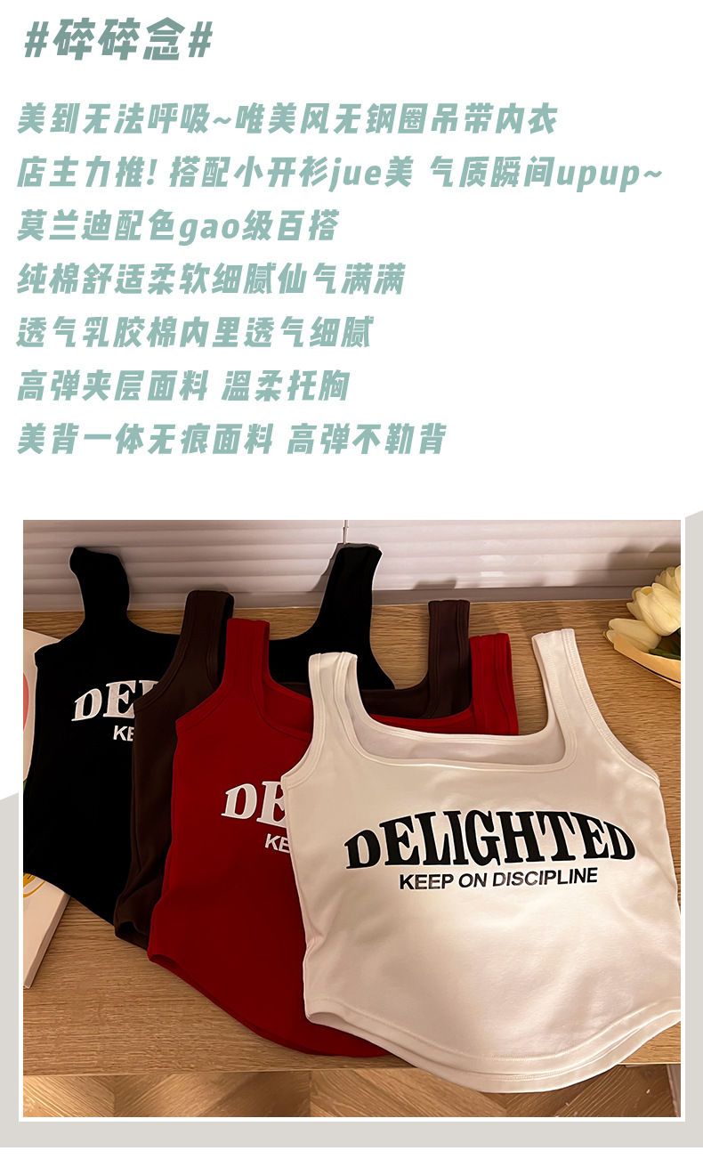 标题:美式吊带小背心女夏季外穿带胸垫红色短款内搭无袖多巴胺穿搭上衣