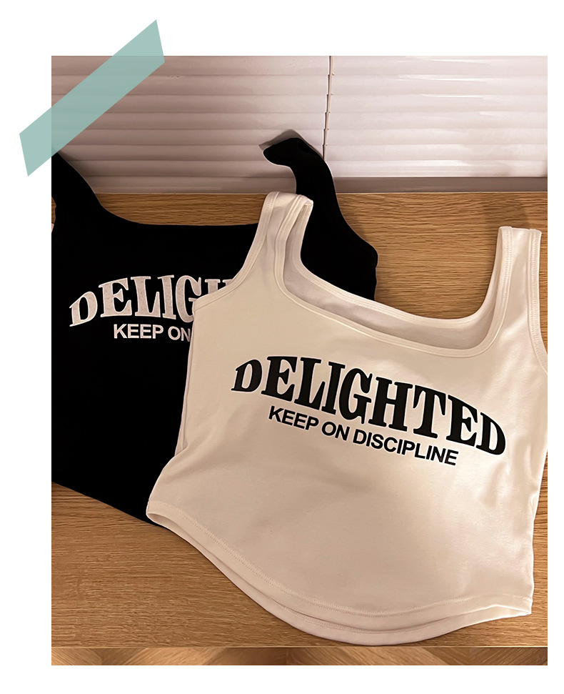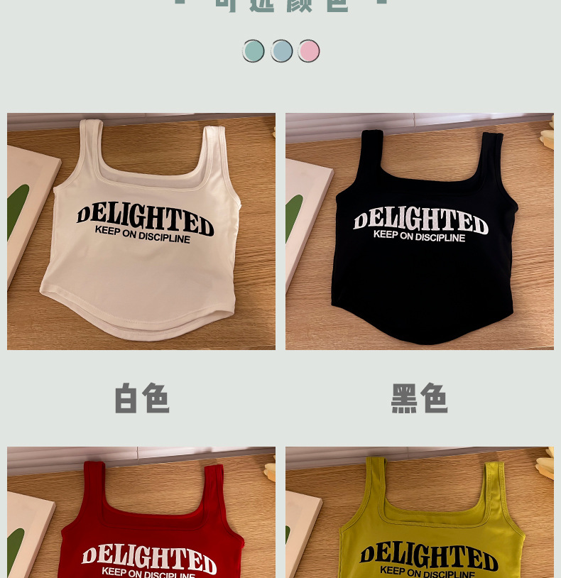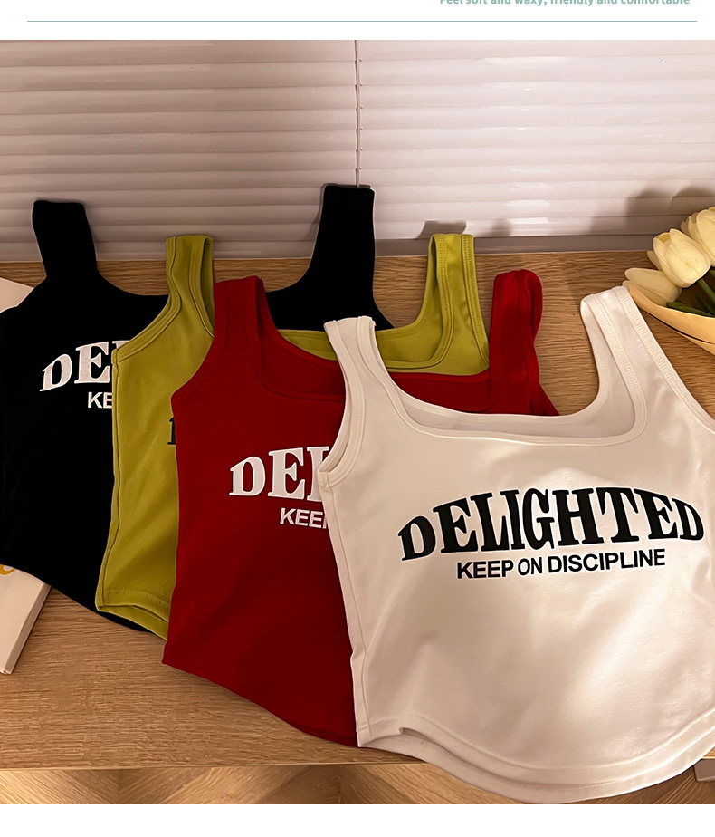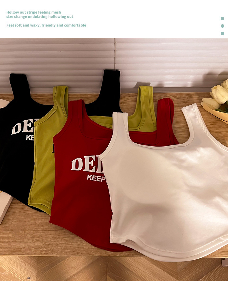 标题:美式吊带小背心女夏季外穿带胸垫红色短款内搭无袖多巴胺穿搭上衣