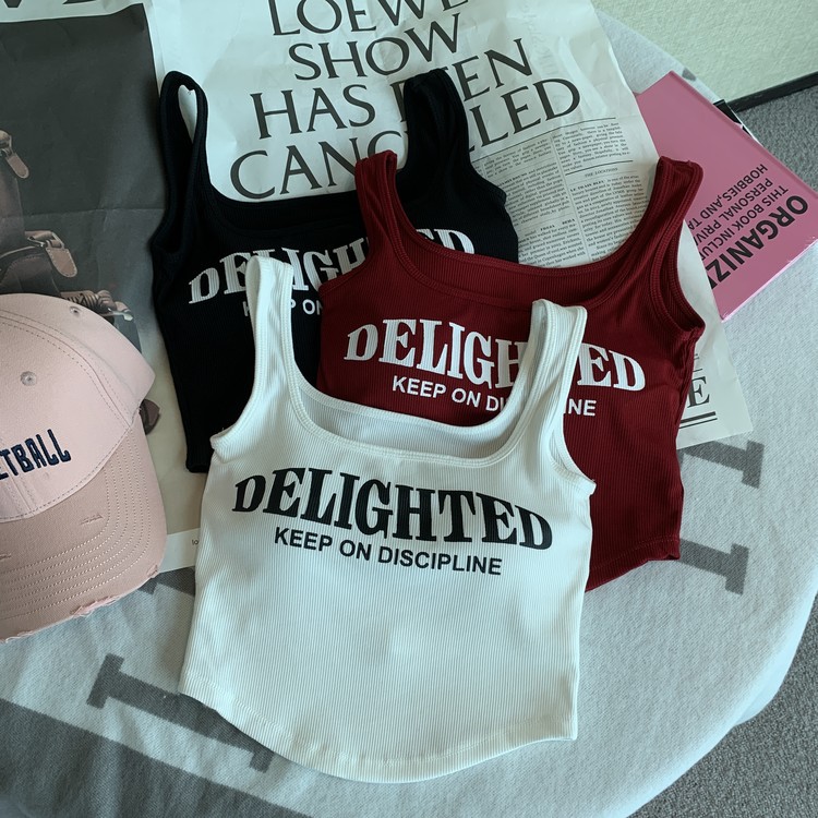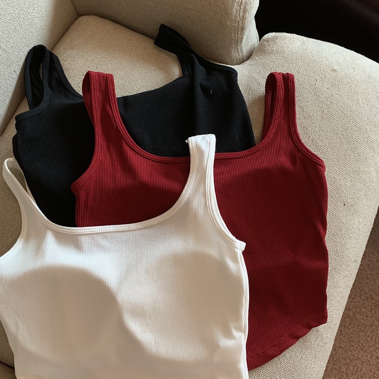 标题:美式复古带胸垫吊带背心女内搭外穿夏季泰式小众辣妹抹胸无袖上衣
