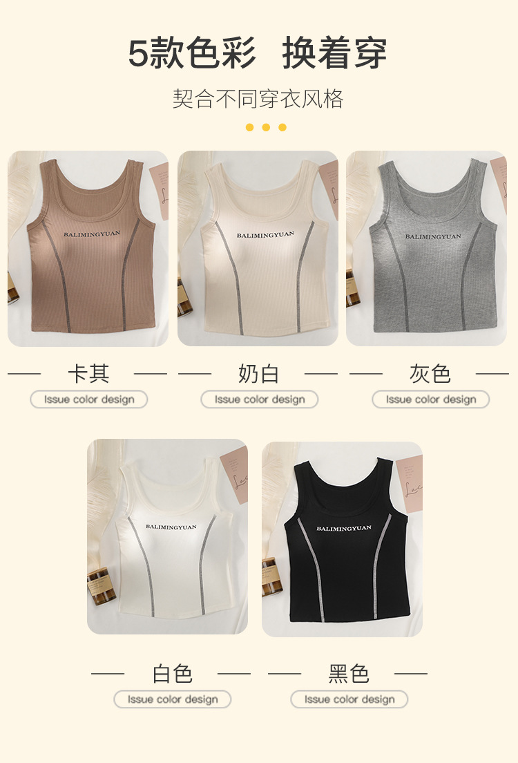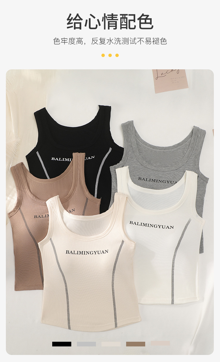 描述:面料名称:精梳棉,主面料成分:棉,品牌:兰如玉(服饰),产品类别:宽肩背心,产地:汕头,货号:1938#滨,颜色:白色,黑色,卡其,奶肤色,浅灰色,尺码:均码,是否跨境出口专供货源:是,款式细节:无缝/一片式,上市时间:2023年夏季,款式:背心式,风格:运动,领型:圆领,季节:四季通用,主面料成分含量:95%(含)-100%(不含),面料厚薄(克重):适中(181-200克/平米),