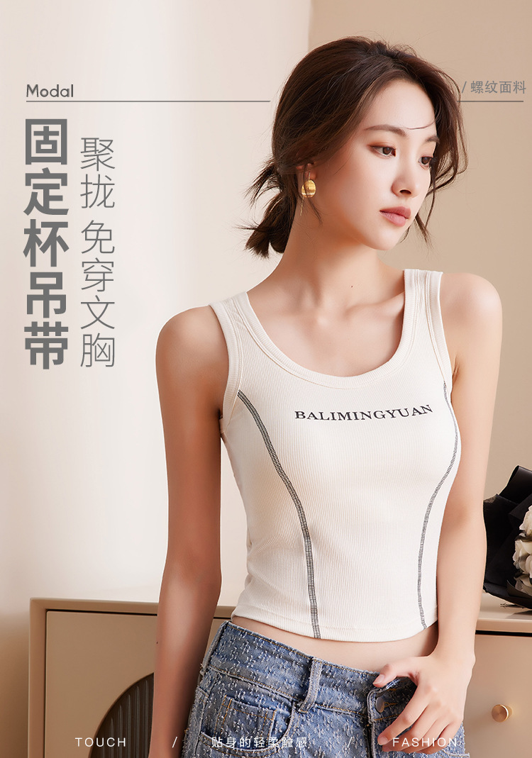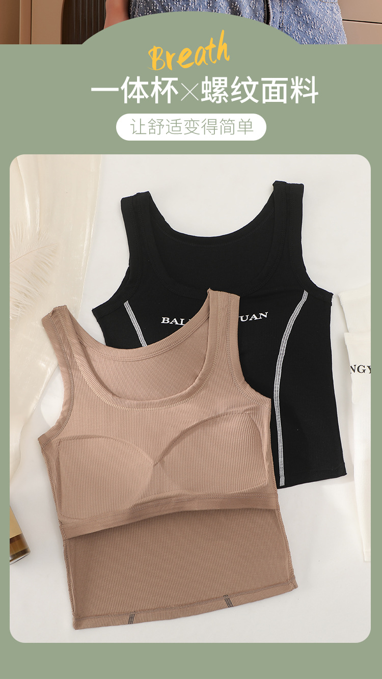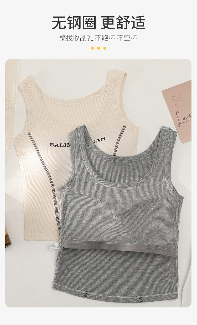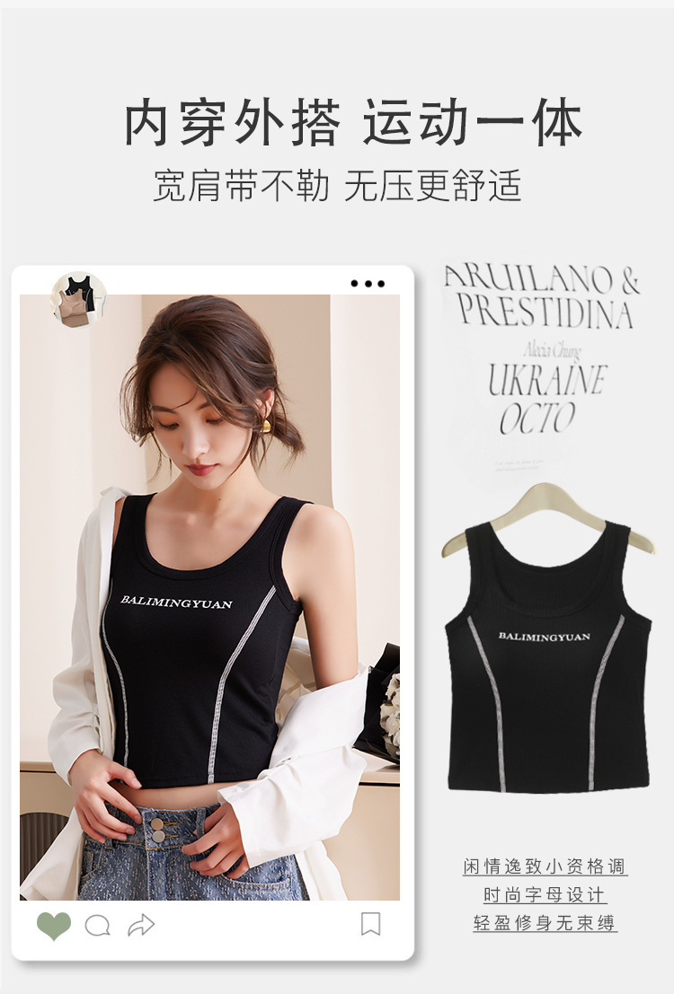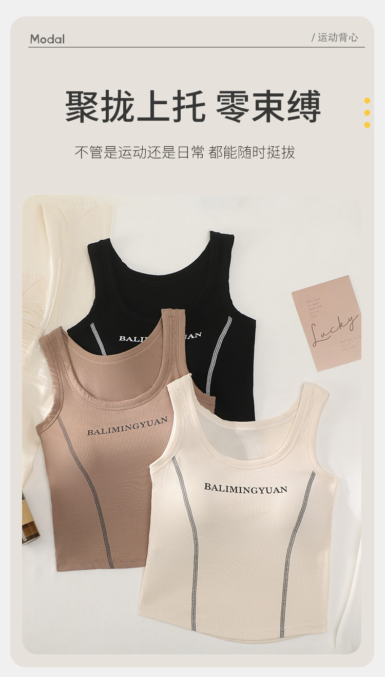 标题:跨境新品长款美背运动背心外穿瑜伽一体式固定杯背心棉质打底内衣