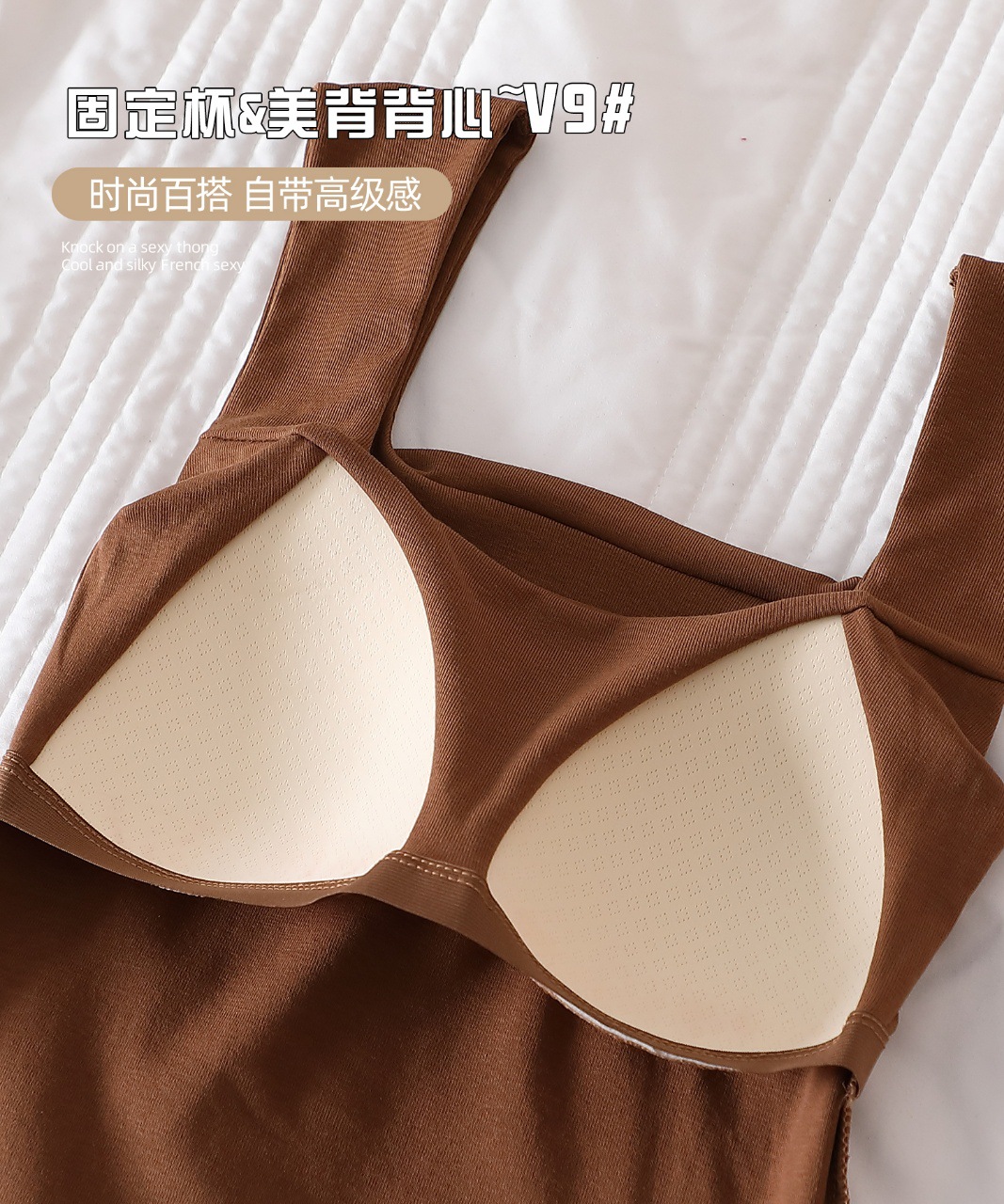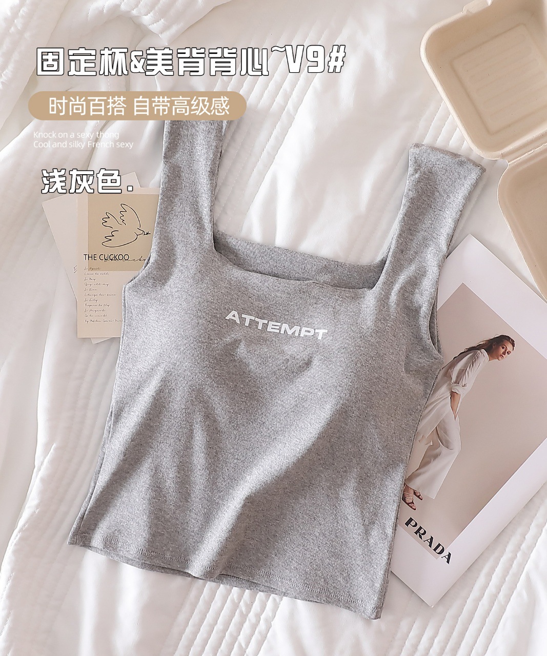 标题:短款纯棉宽肩背心女时尚内搭带胸垫免穿内衣方领美背打底修身外穿