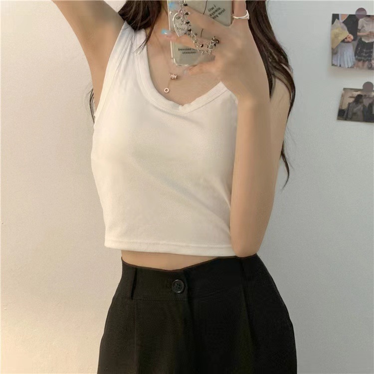 标题:爆款韩版风纯棉吊带背心带胸垫固定杯裹胸外穿内搭无袖短款上衣女