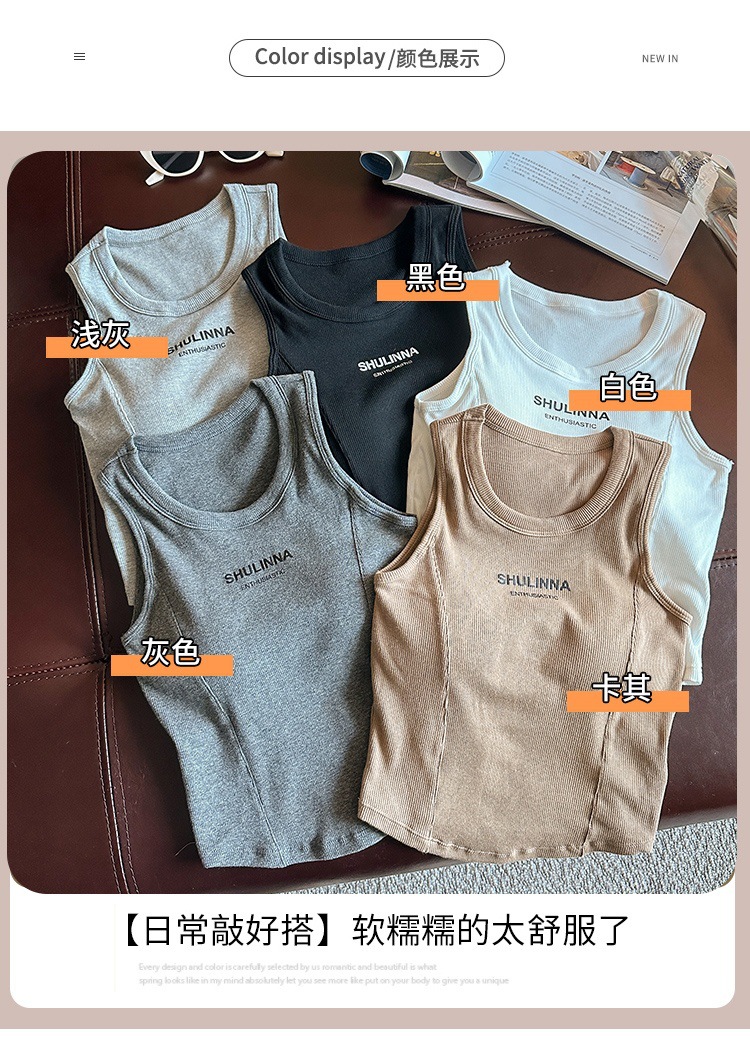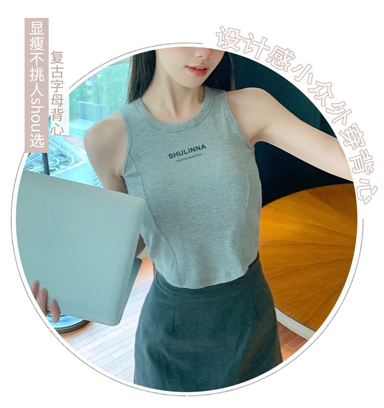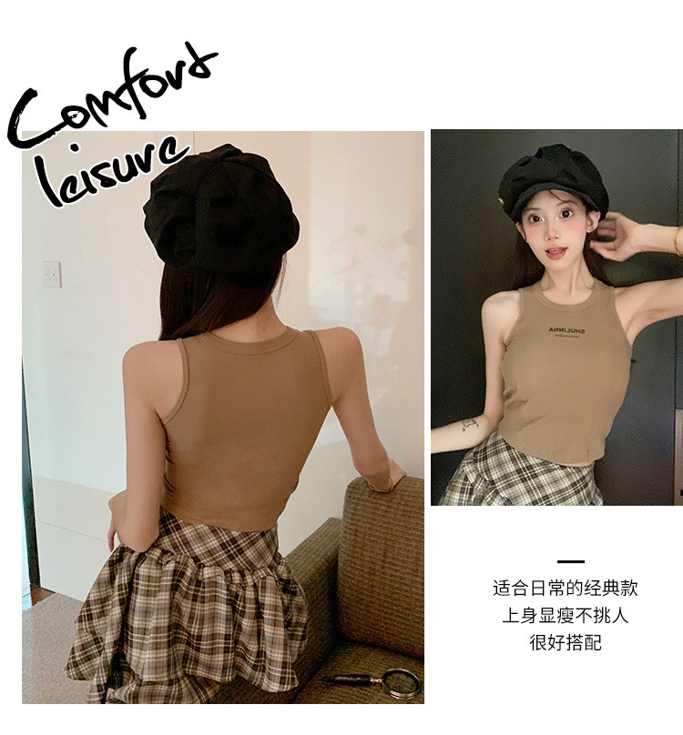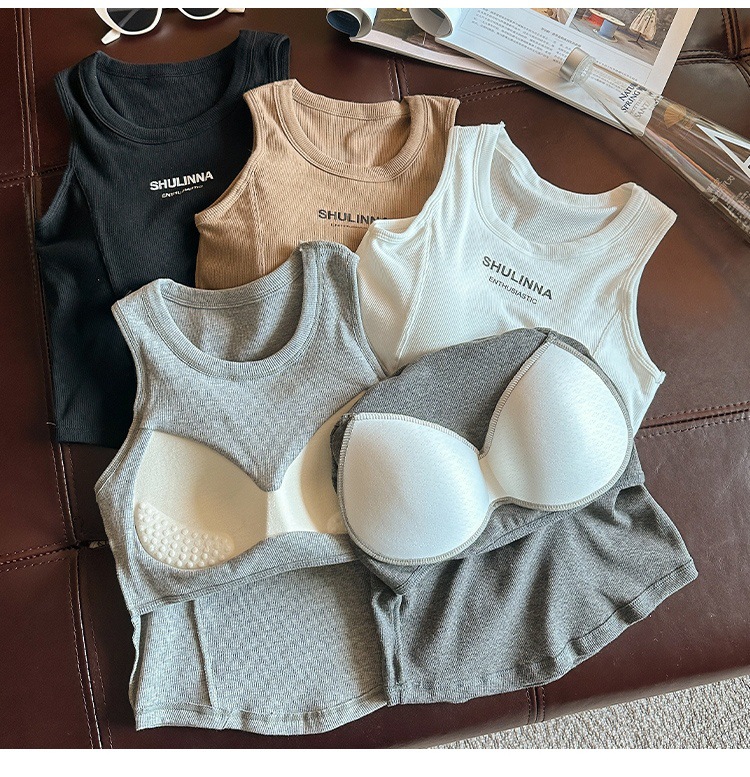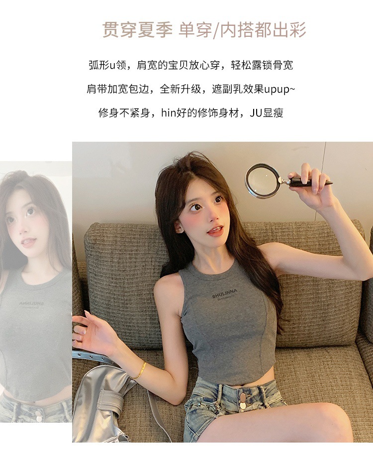 标题:方领设计感背心女带胸垫防走光内衣美背吊带内搭辣妹外穿短款抹胸