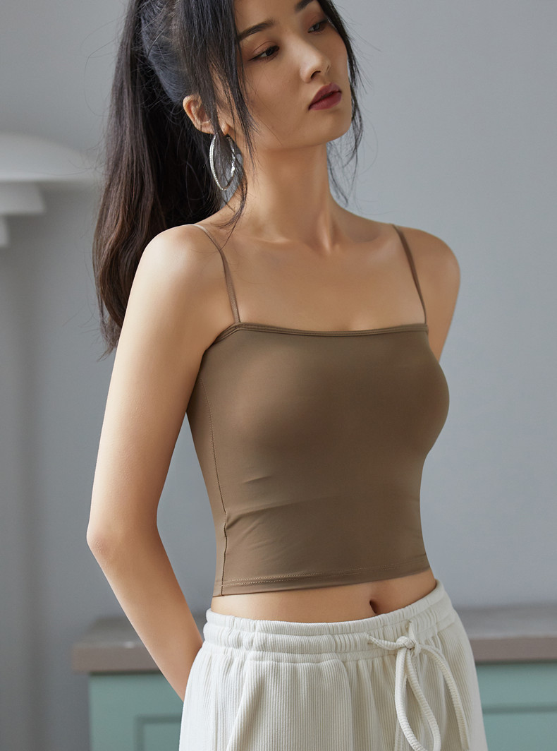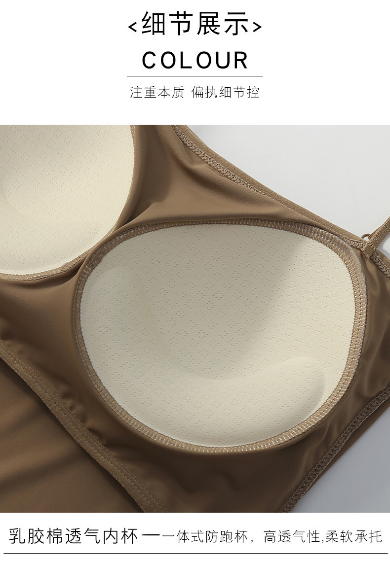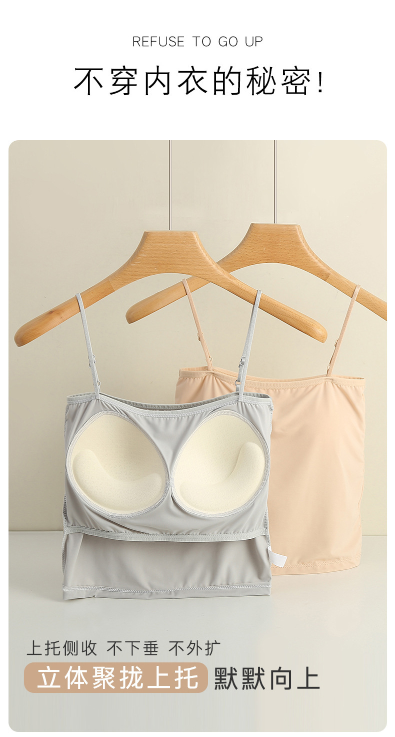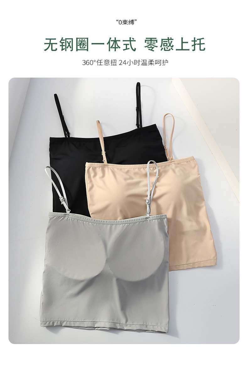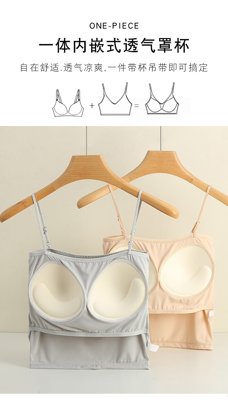 标题:美背辣妹时尚百搭吊带背心带胸垫打底防走光冰丝内搭外穿抹胸内衣