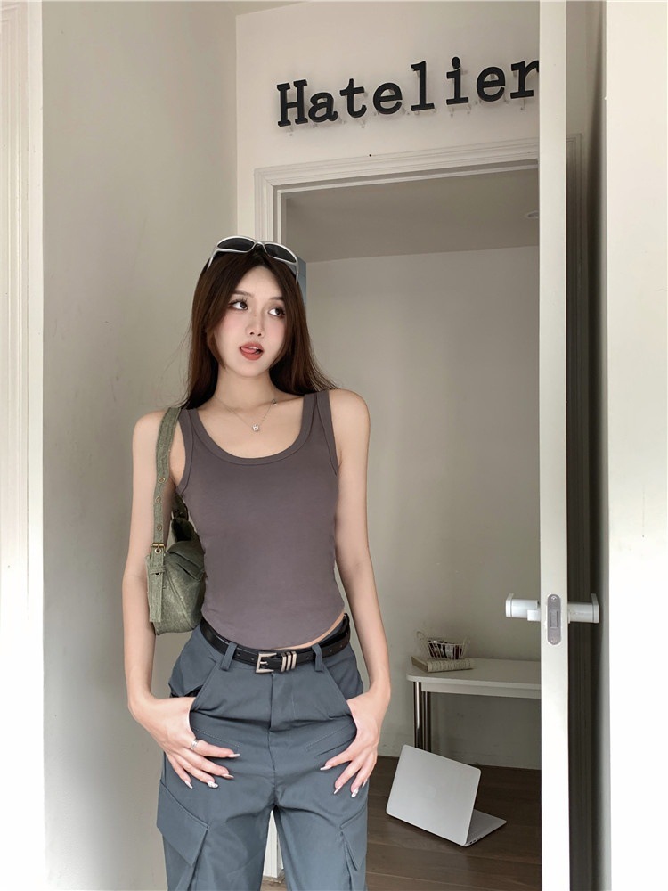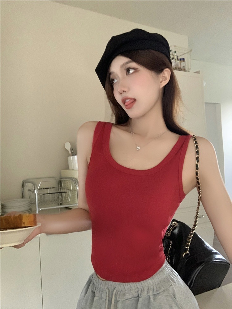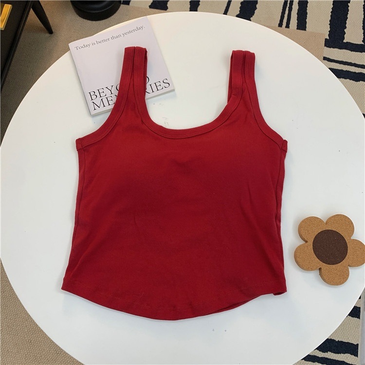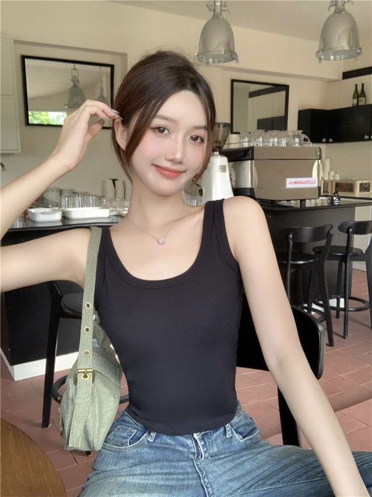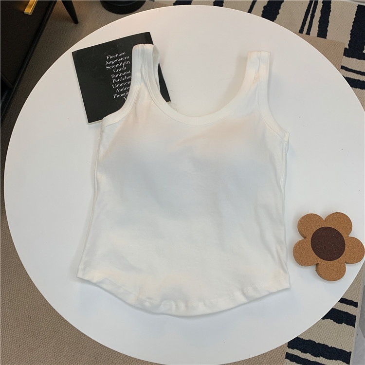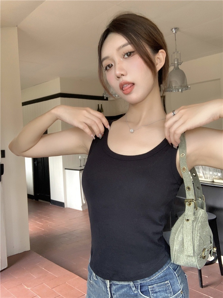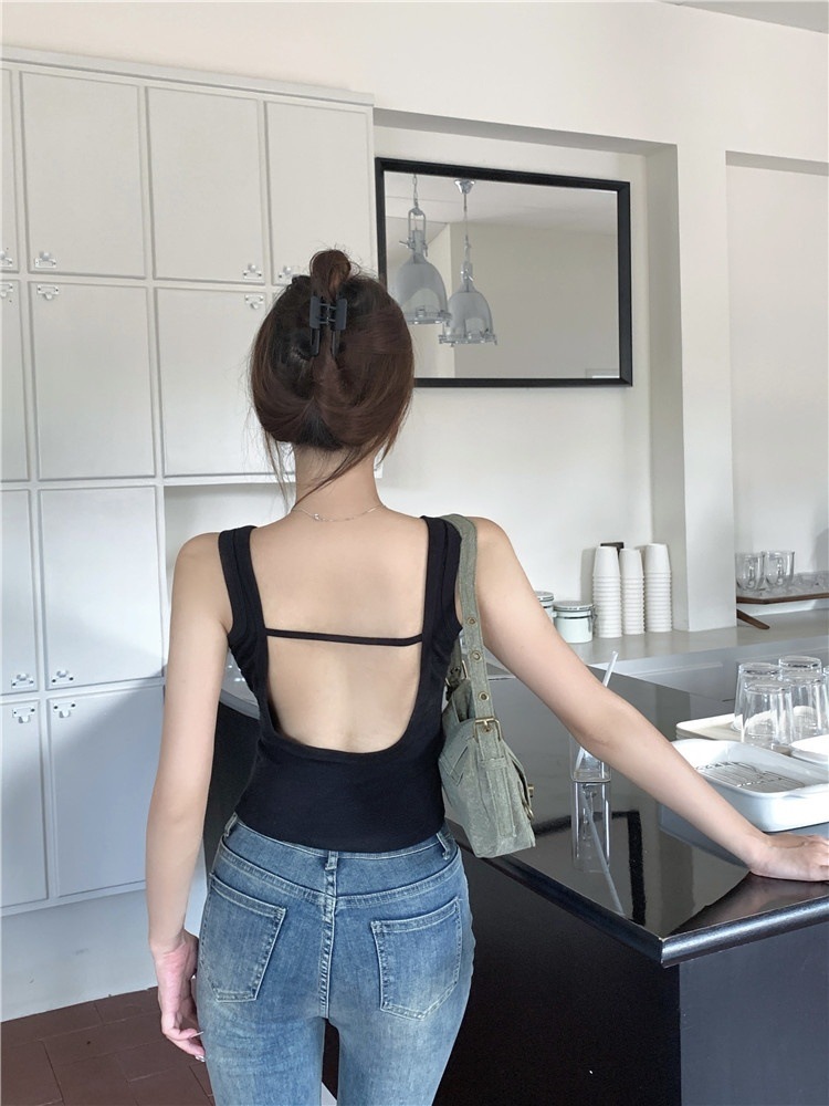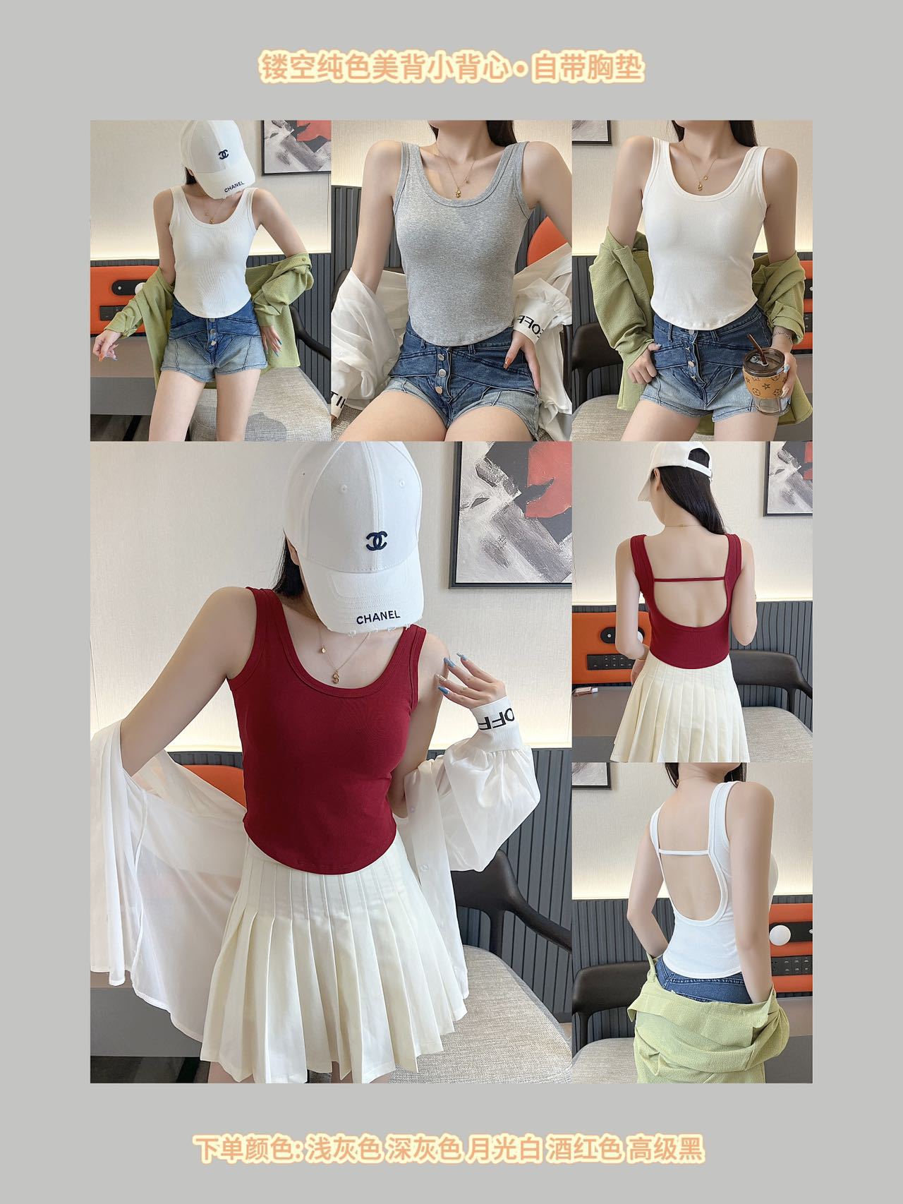 标题:法式性感辣妹镂空纯棉吊带背心带胸垫修身短款美背打底衫上衣女潮