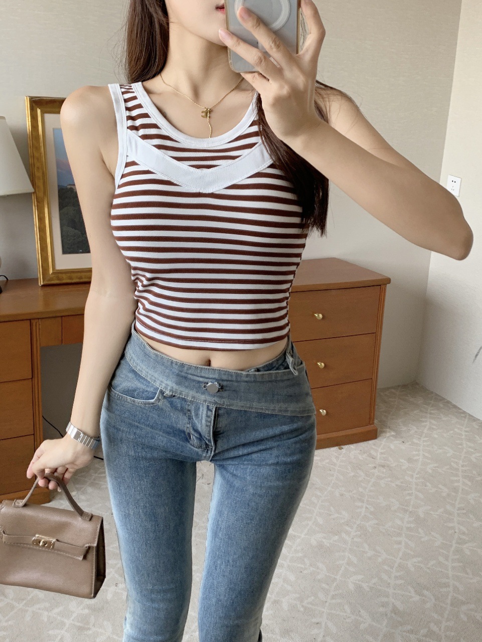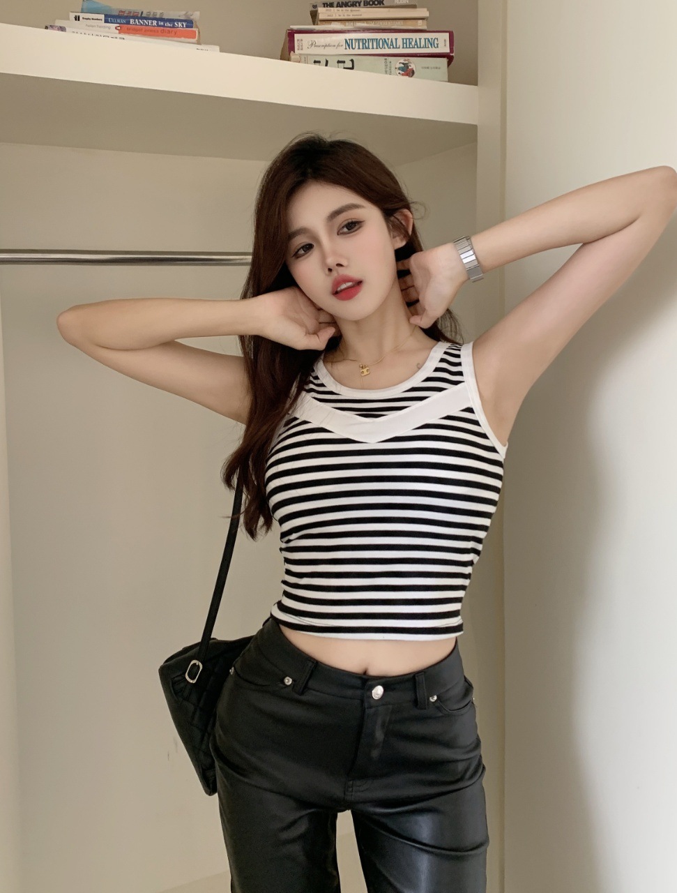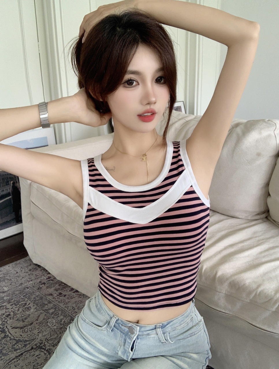 标题:新款时尚宽带小背心带胸垫固定杯透气修身舒适短款外穿吊带上衣女