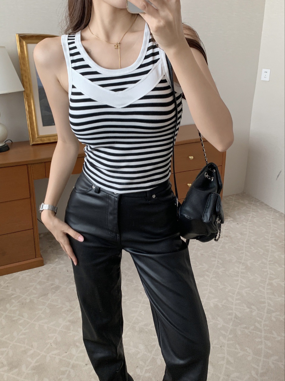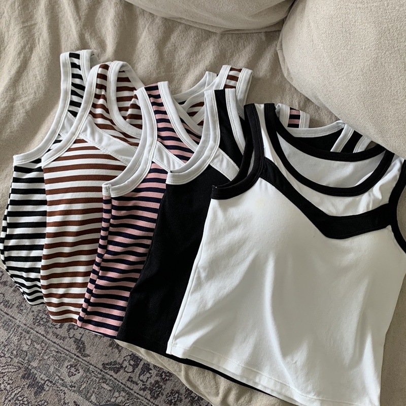 描述:面料名称:纯棉,主面料成分:棉,品牌:帕美千衣,产品类别:吊带背心,产地:汕头,货号:AL734697316272,颜色:白色,黑色,黑白条纹,蓝粉条纹,咖白条纹,尺码:均码(80-125斤),是否跨境出口专供货源:是,款式细节:棉垫,上市时间:2023年秋季,款式:背心式,风格:欧美,领型:圆领,季节:夏季,秋季,主面料成分含量:90%(含)-95%(不含),面料厚薄(克重):适中(161-180克/平米),