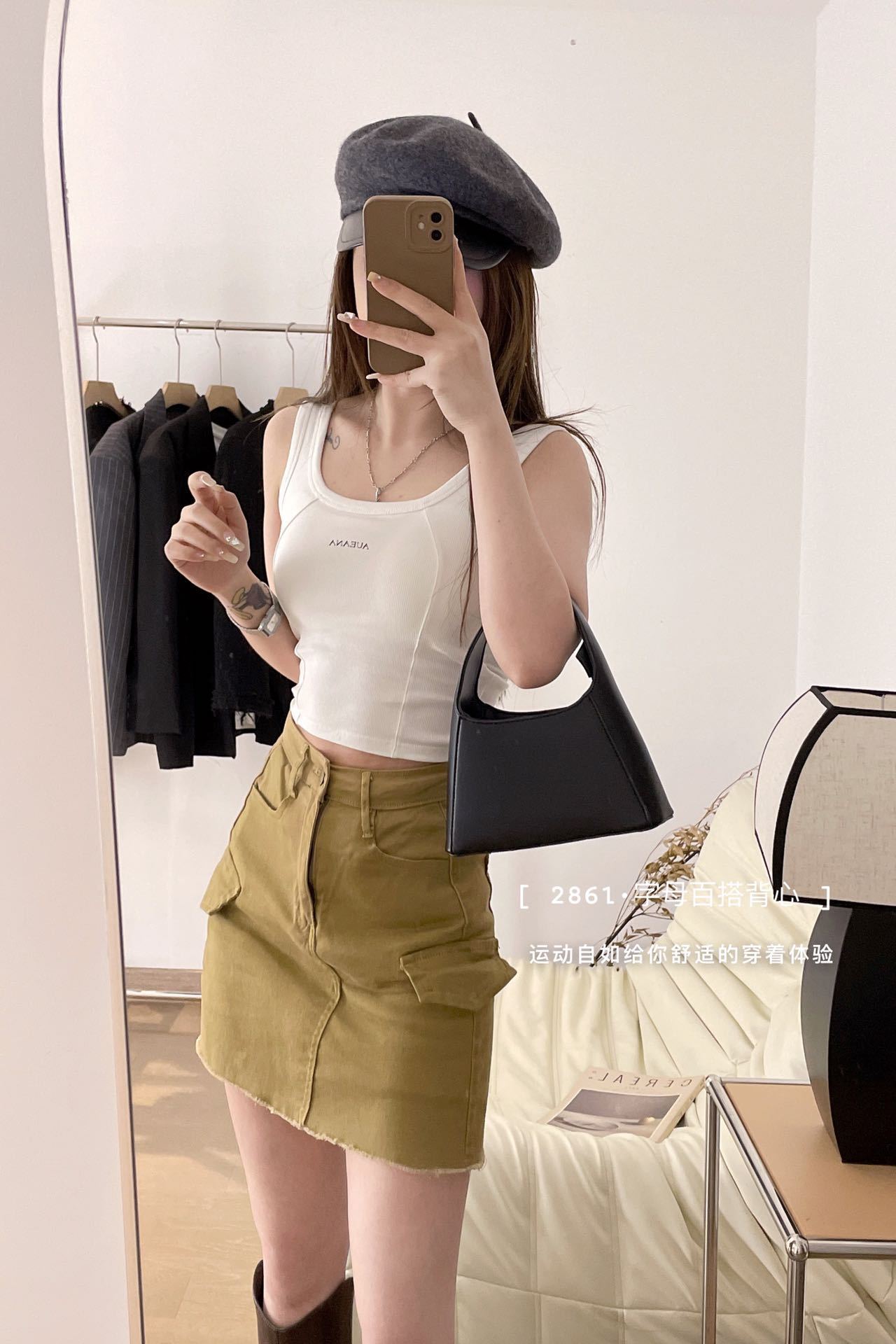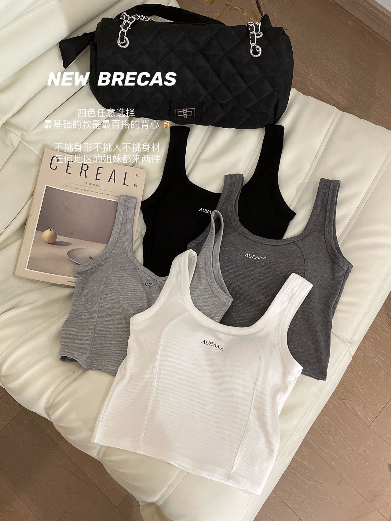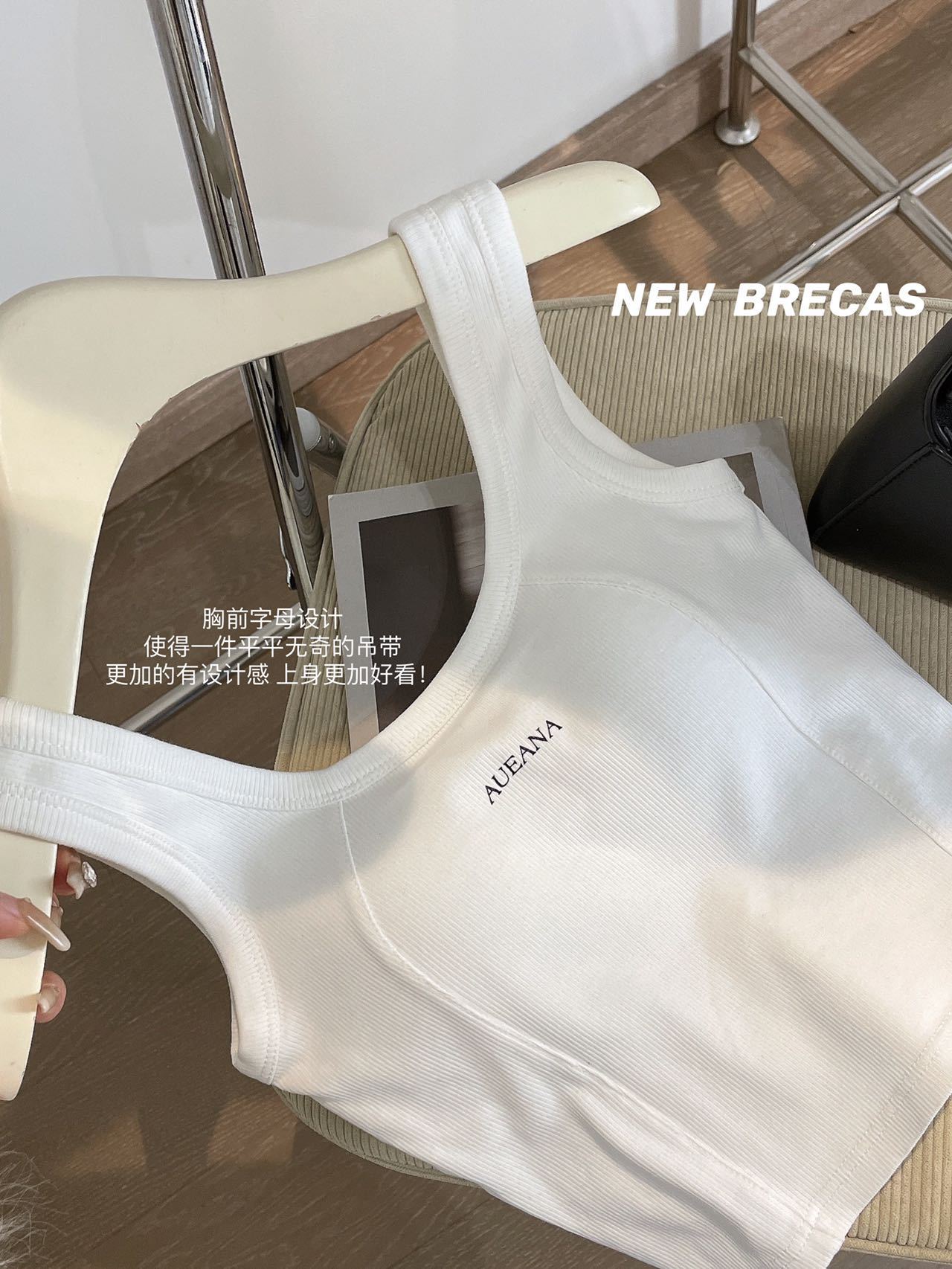 标题:妃子纪2861螺纹无袖小吊带背心内衣女士带胸垫短款运动防走光内搭