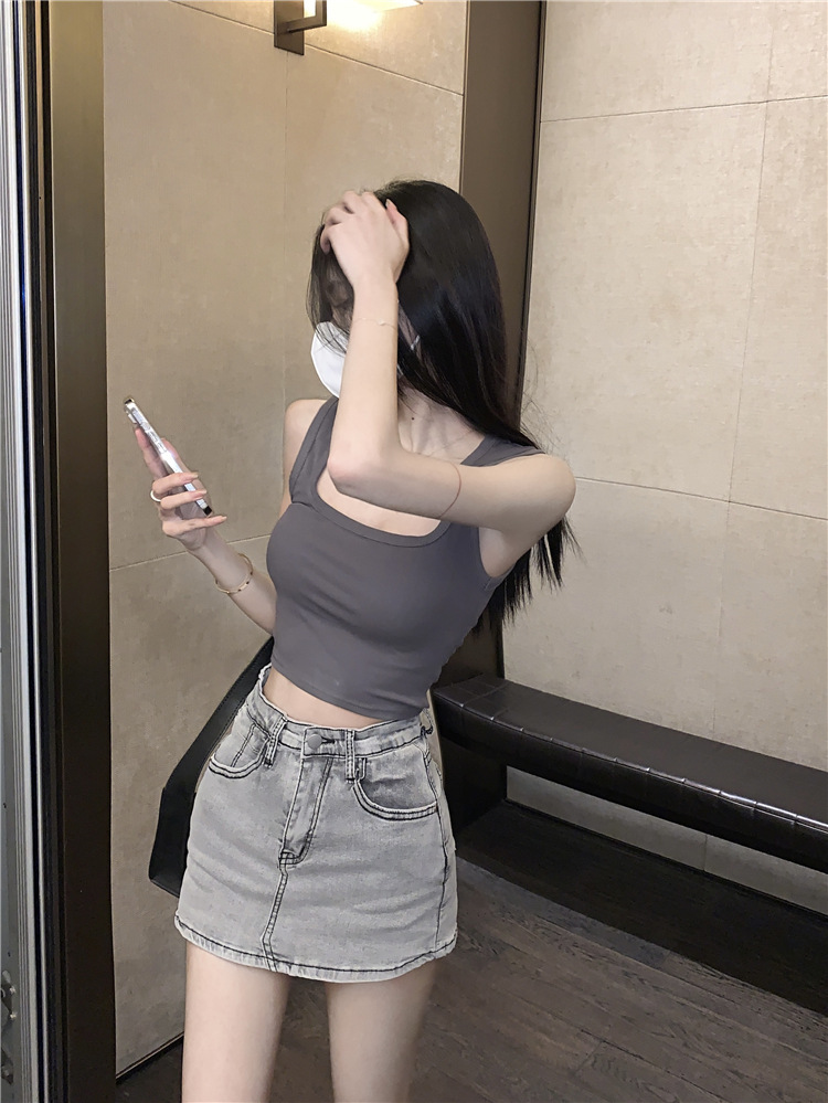 标题:工字吊带背心女带胸垫秋季美背内搭打底运动健身无袖上衣辣妹外穿