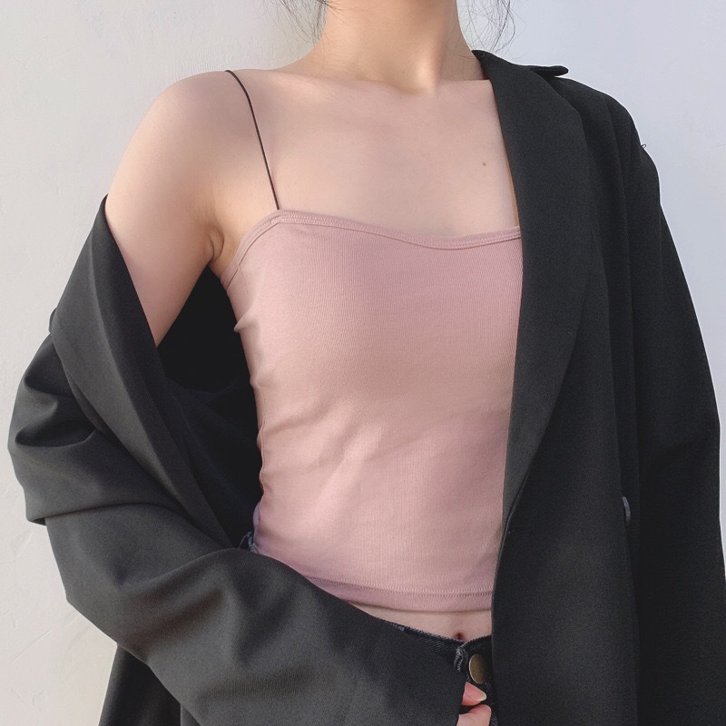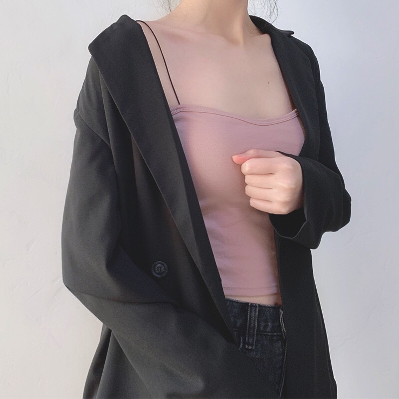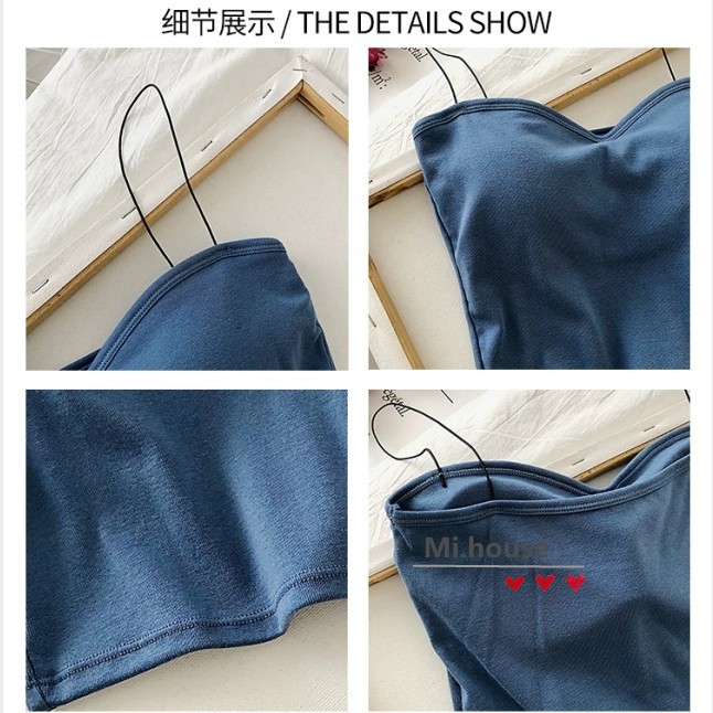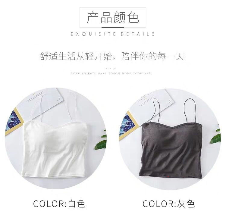 标题:油画少女吊带背心女纯色性感美背细带带胸垫打底抹胸裹胸短款上衣