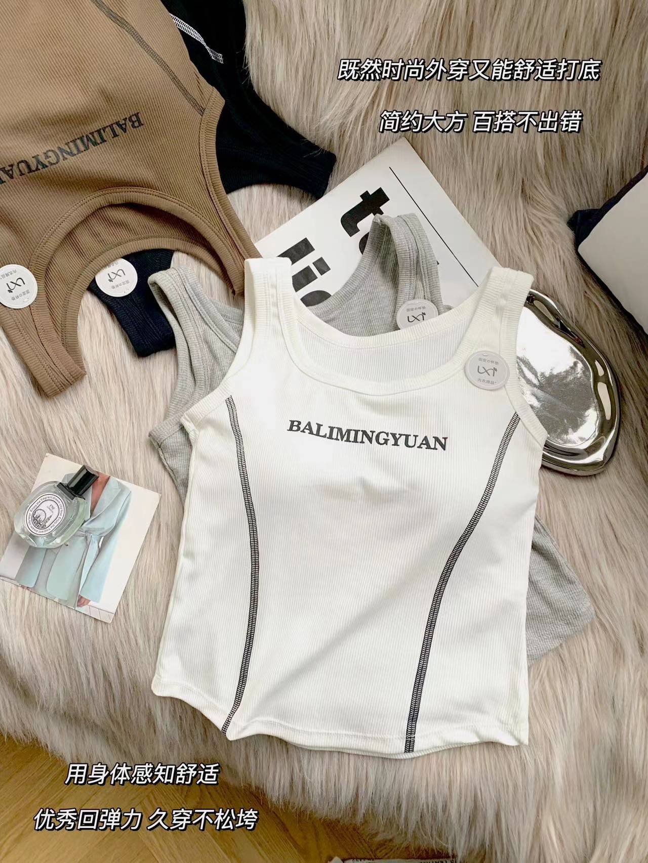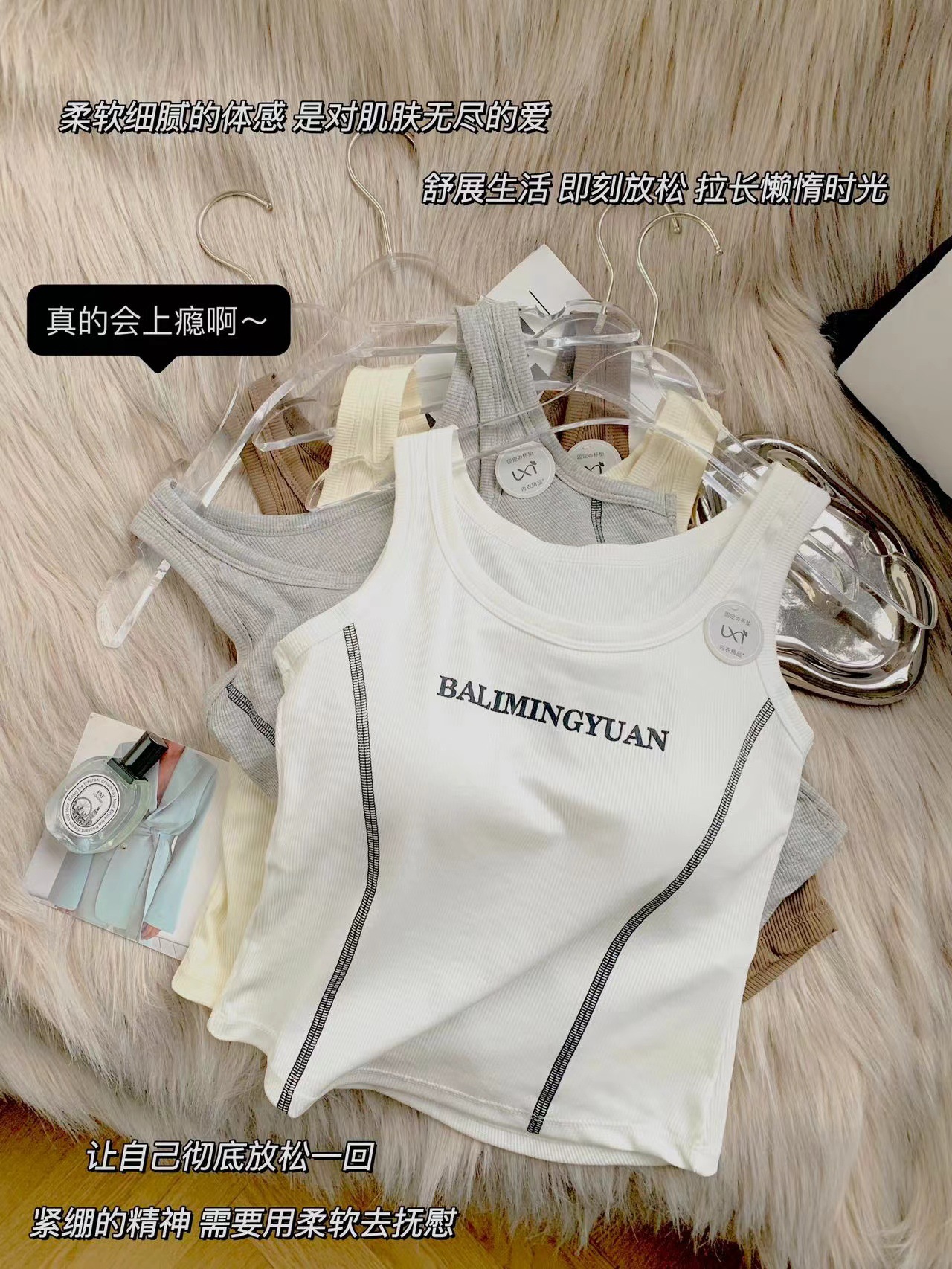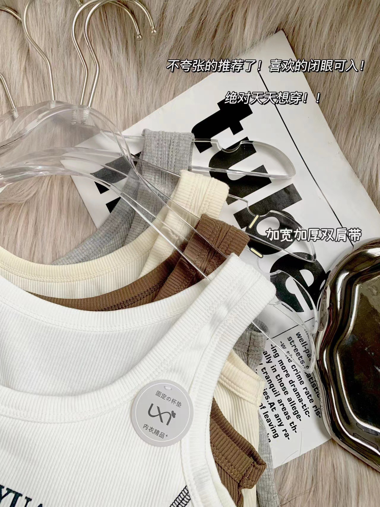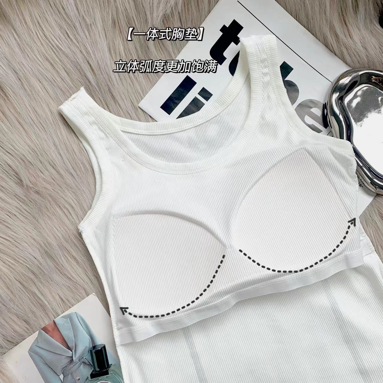 标题:韩版螺纹棉少女美背背心固定杯带胸垫百搭修身纯色内搭外穿打底女