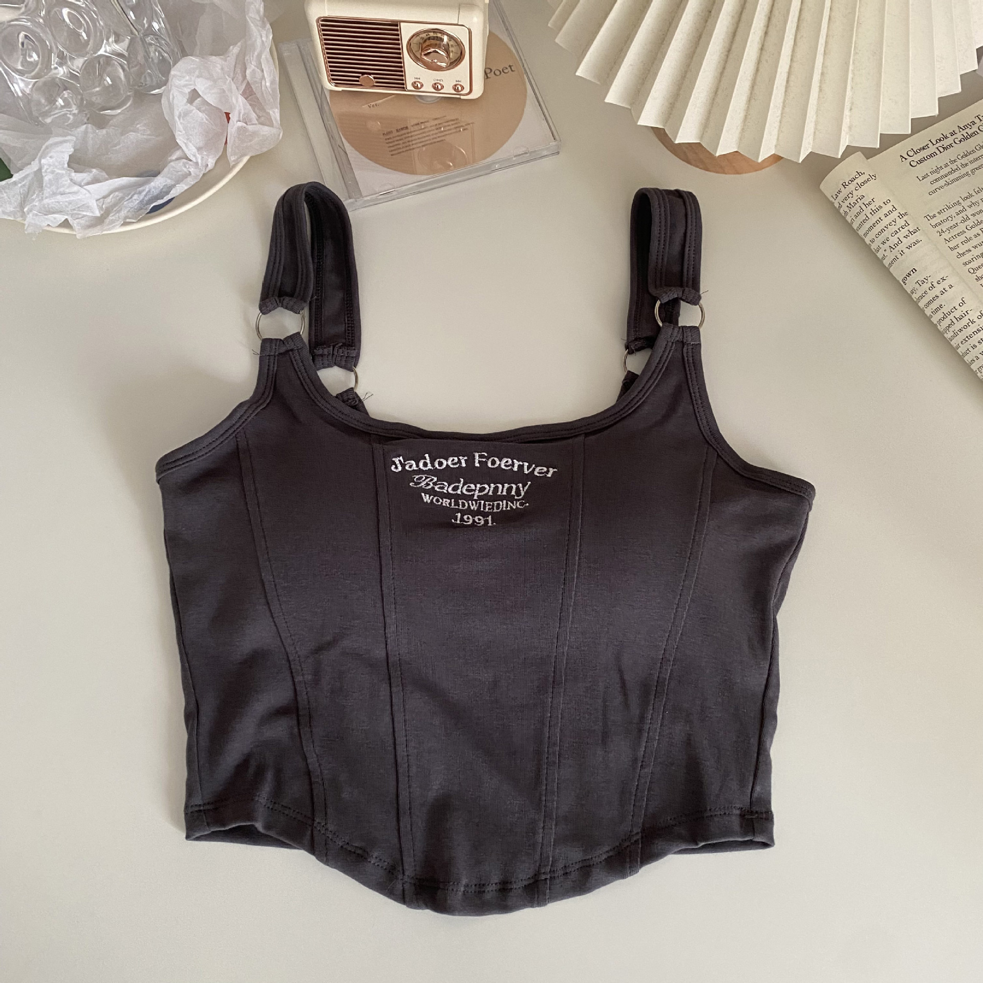 标题:纯欲字母刺绣小吊带背心女带胸垫内搭辣妹修身显瘦外穿内搭上衣女