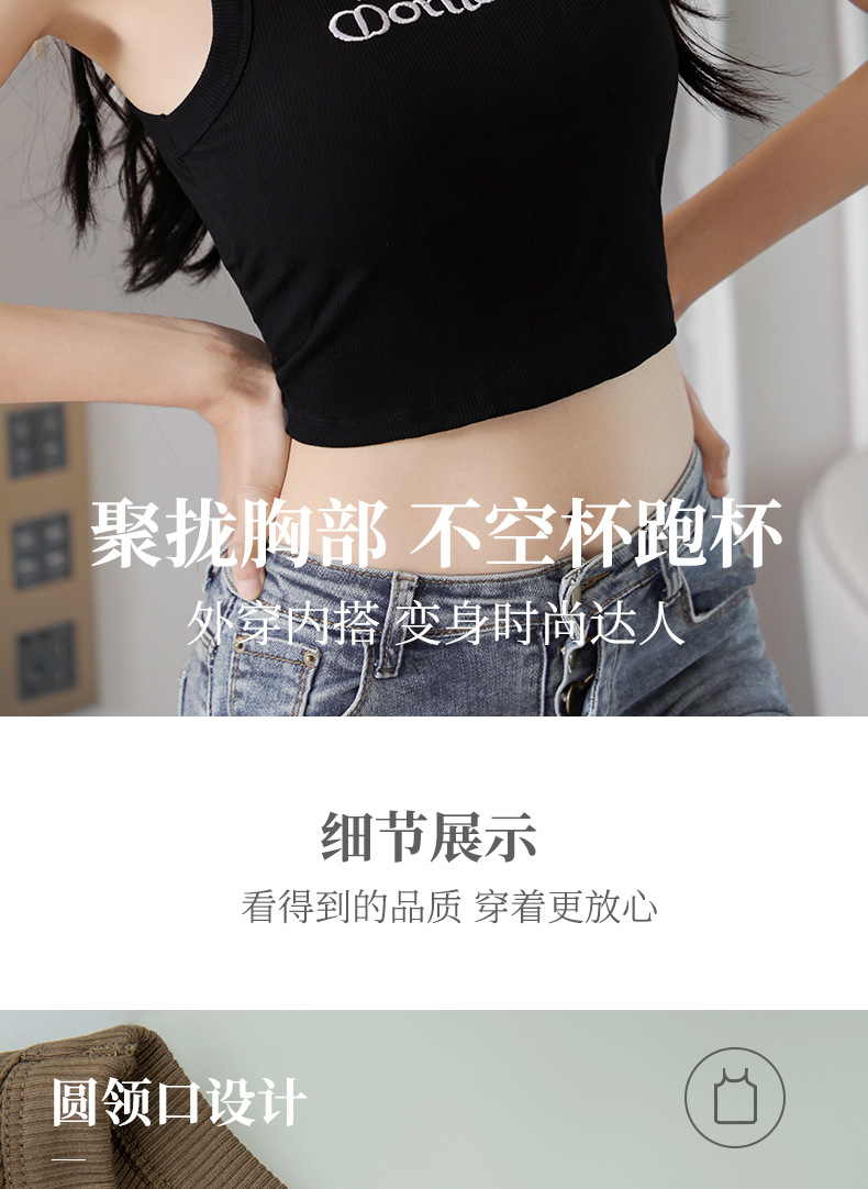 标题:性感短款工字型黑色内搭背心女夏季辣妹修身外穿运动无袖上衣女