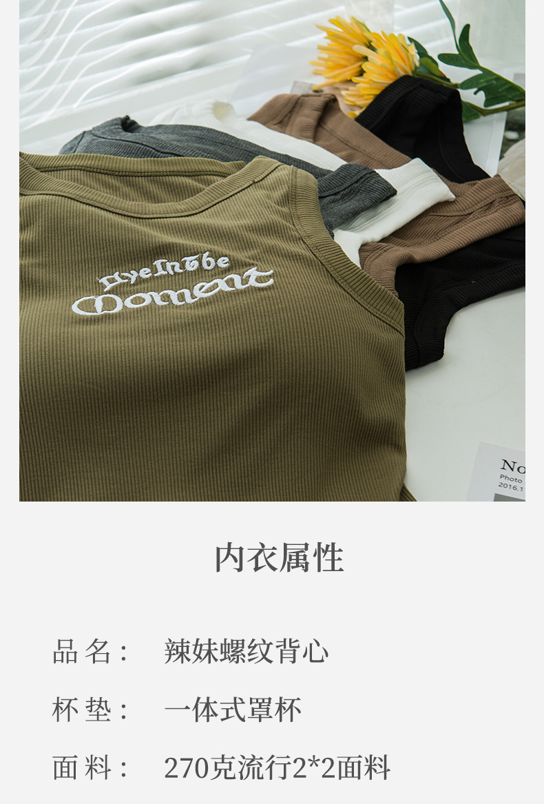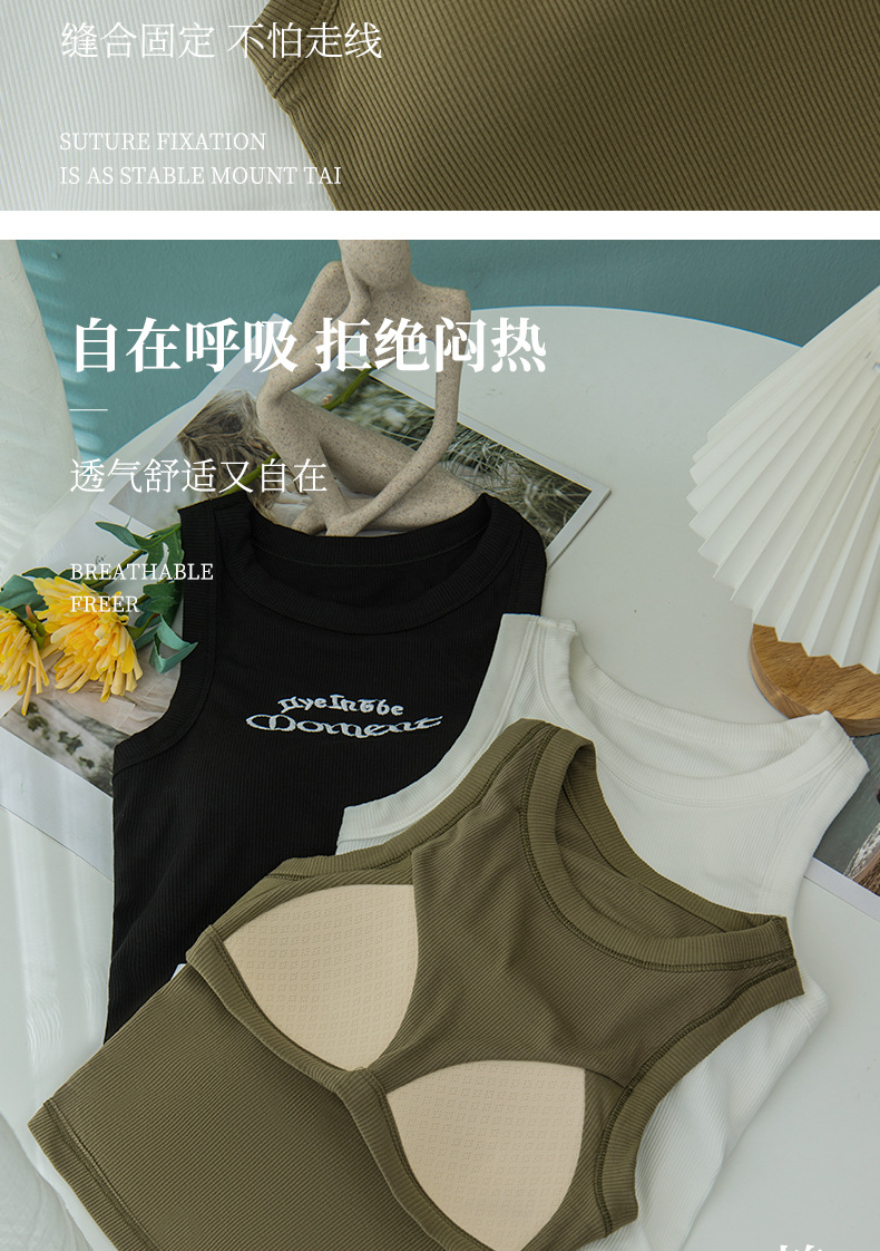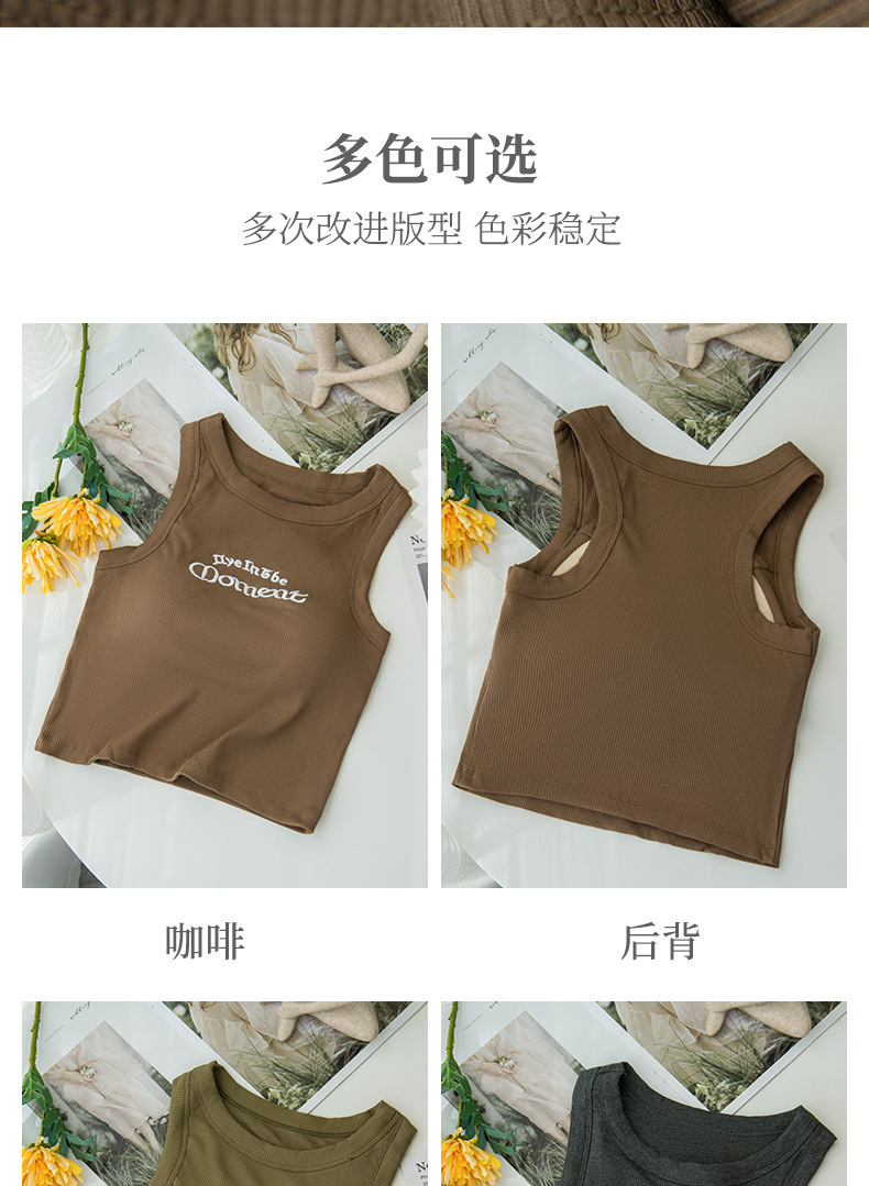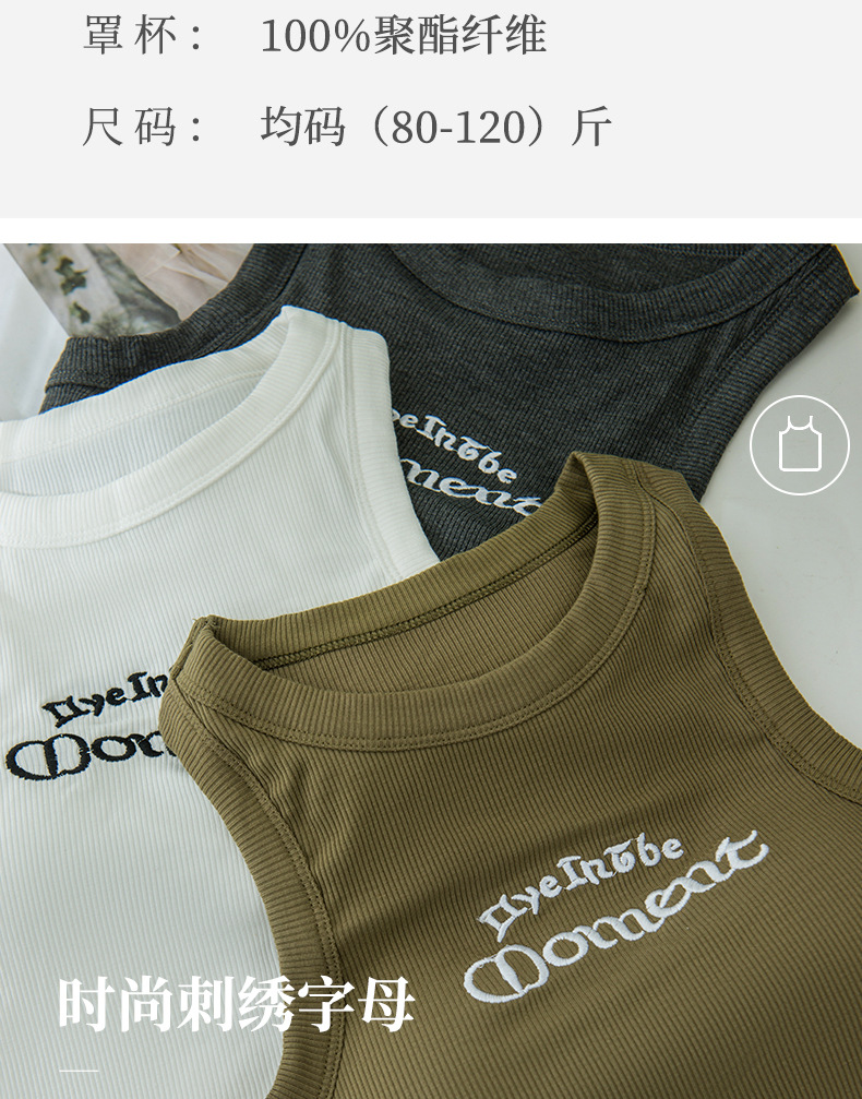 描述:面料名称:棉,主面料成分:棉,品牌:璐悦欣,产品类别:宽肩背心,产地:汕头,货号:2301,颜色:绿色,白色,深灰,咖啡,黑色,尺码:均码(80-120斤),是否跨境出口专供货源:否,款式细节:海绵垫,上市时间:2023年夏季,款式:背心式,风格:辣妹,领型:圆领,季节:夏季,冬季,春季,秋季,四季通用,主面料成分含量:90%(含)-95%(不含),面料厚薄(克重):适中(181-200克/平米),