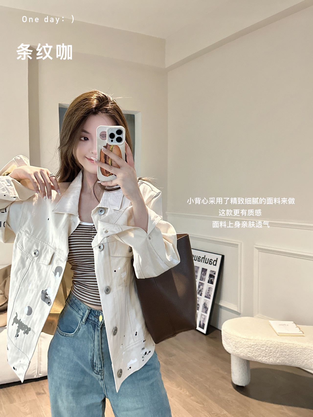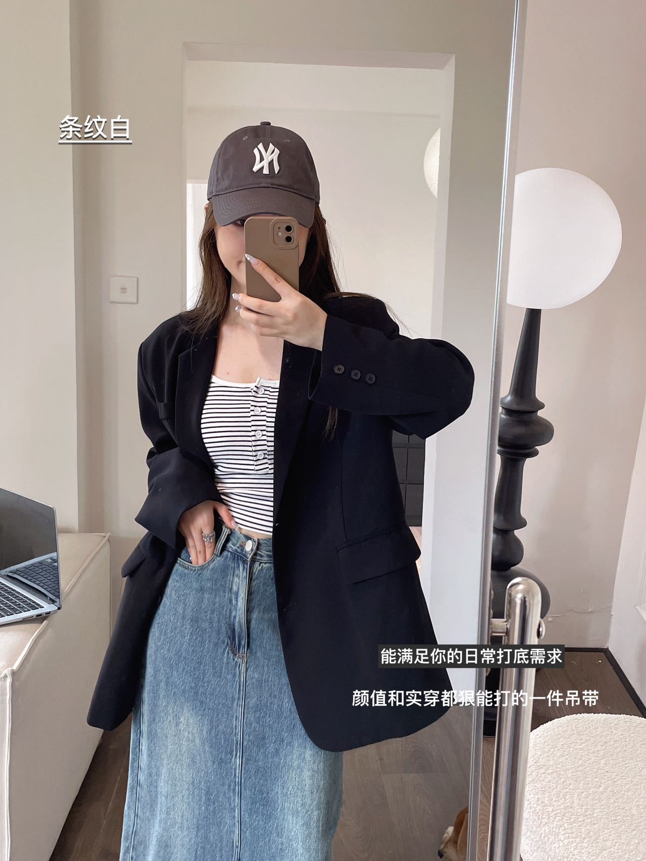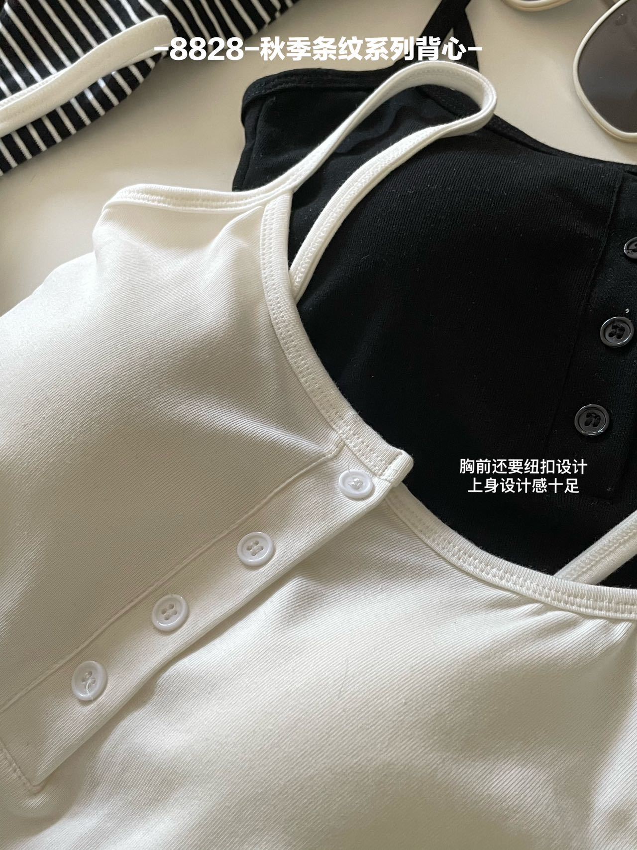 标题:秋季新款中弹内搭百搭吊带撞色肩带条纹设计感带胸垫无钢圈吊带