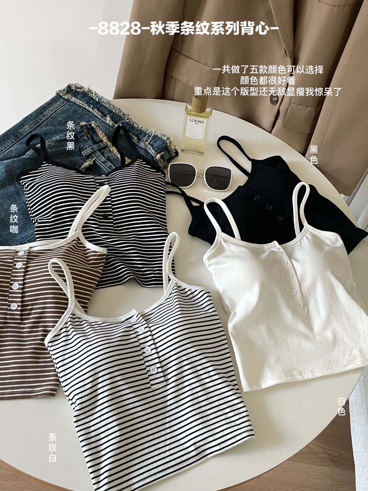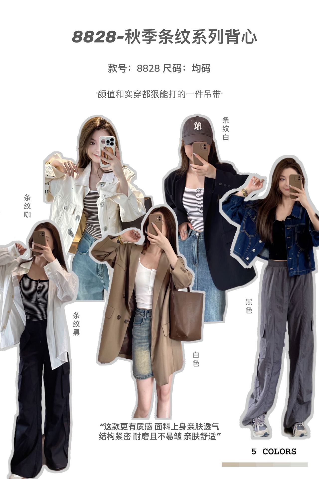 描述:货号:8828,品牌:其他,款式:吊带款,版型:A字型,衣长:普通款(50cm<衣长≤65cm),图案:条纹/格子,流行元素:条纹,上市年份/季节:2023年秋季,面料名称:锦纶,主面料成分:氨纶,颜色:条纹黑,条纹白,纯白色,纯黑色,条纹咖,尺码:均码,主面料成分含量:30%(含)-50%(不含),风格:休闲风,风格类型:日韩休闲,弹力:中弹,是否跨境货源:否,肩带样式:不可拆卸,主面料成分2含量:30%以下,主面料成分2:锦纶,