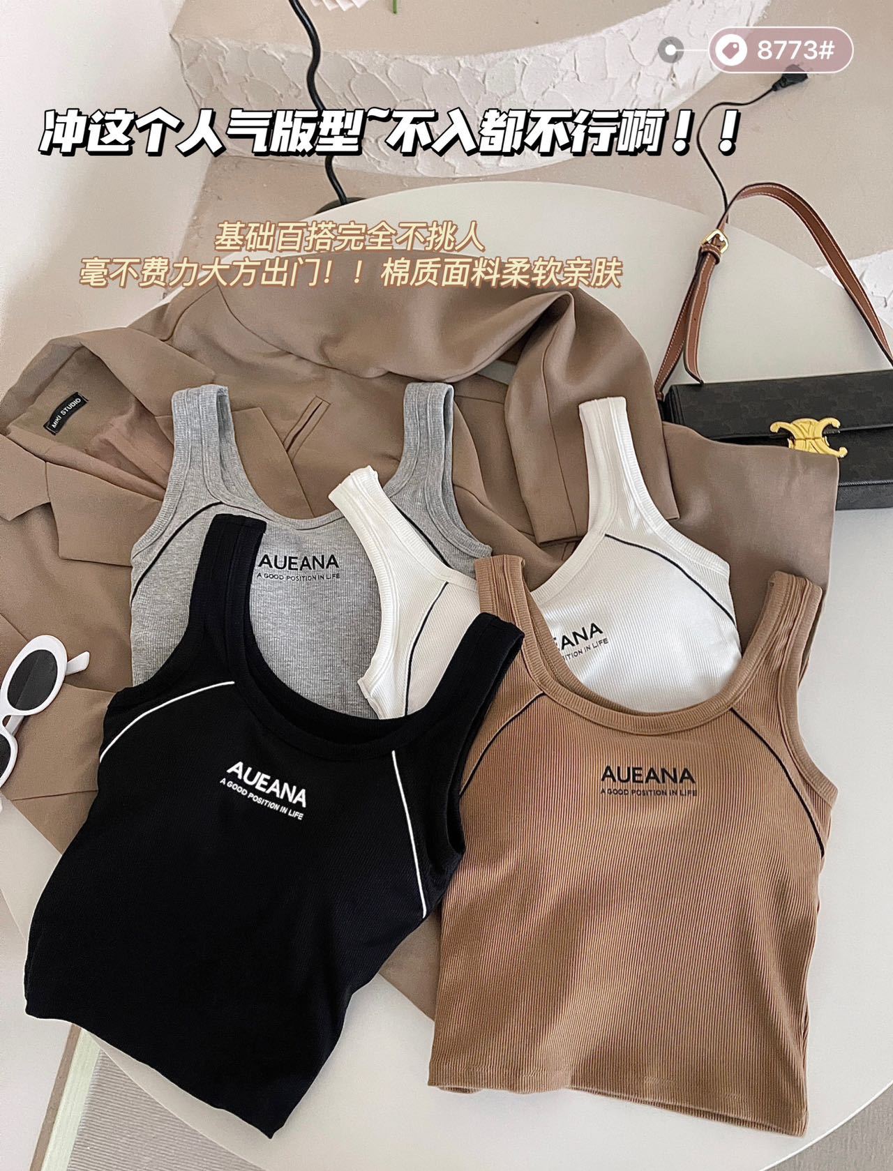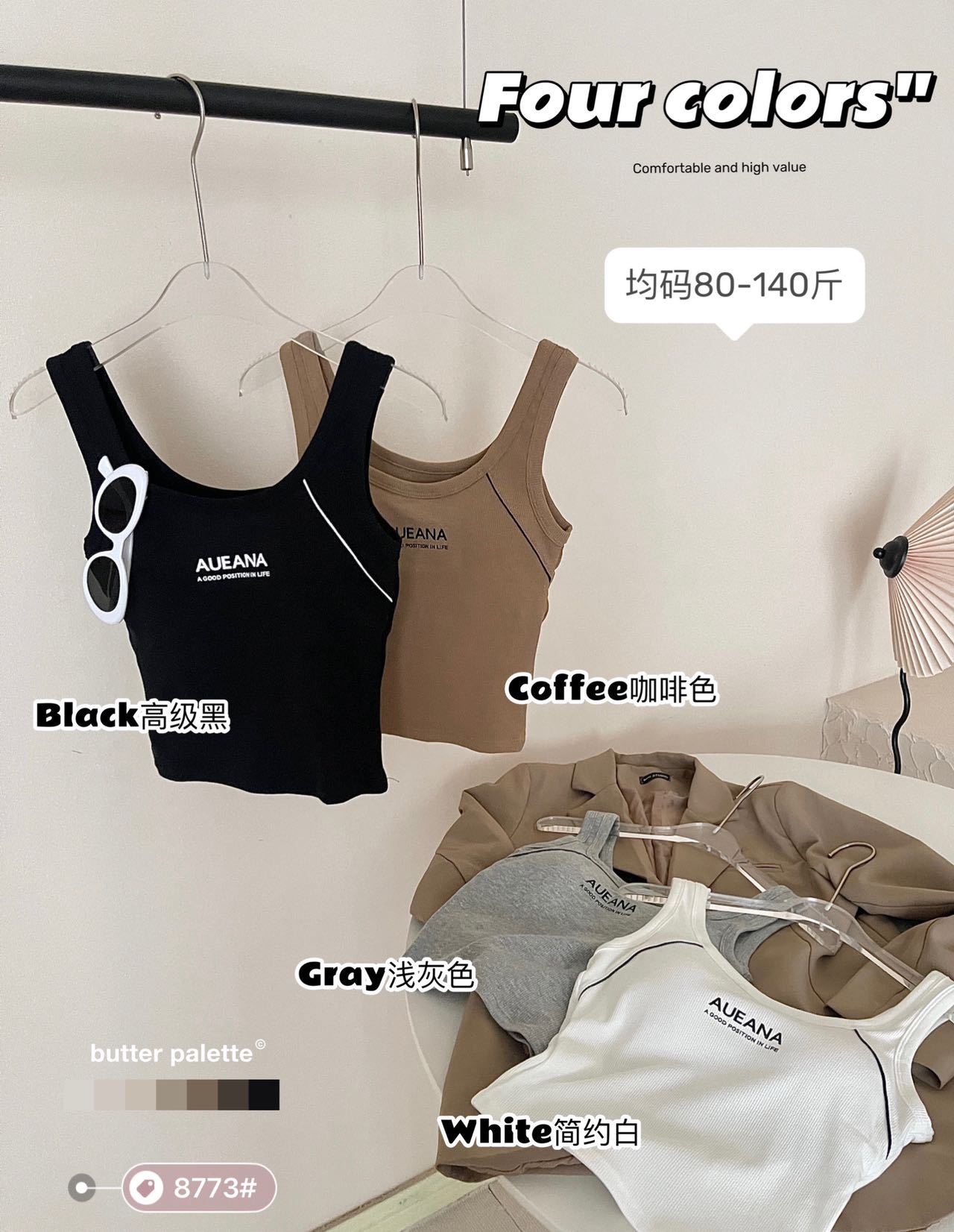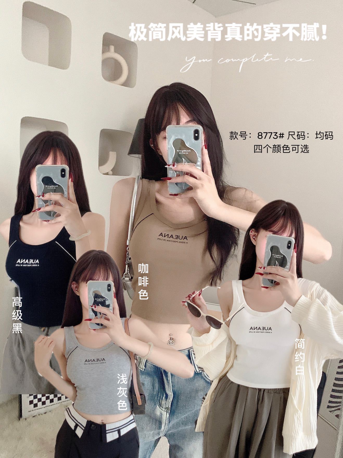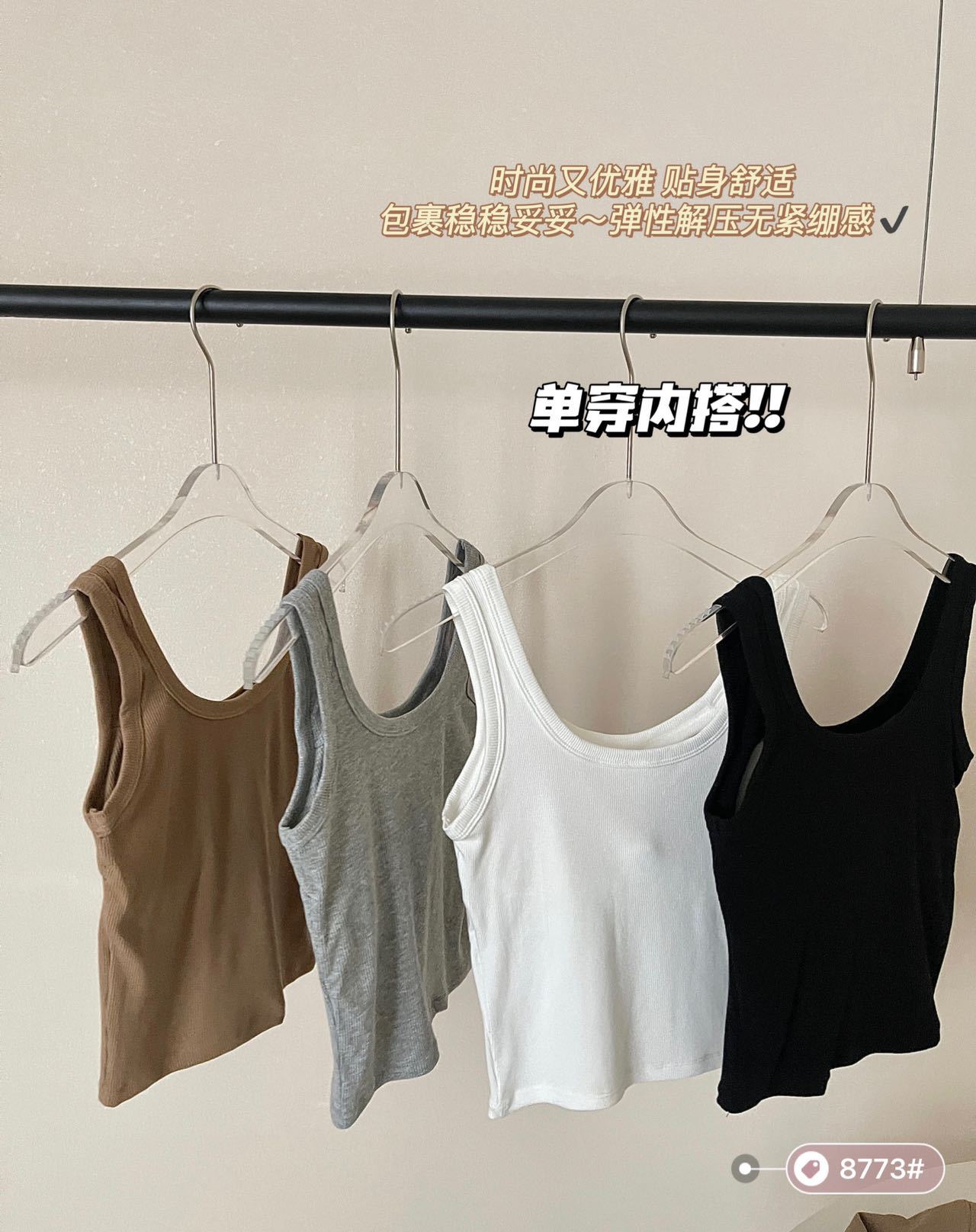 描述:面料名称:棉,主面料成分:棉,品牌:无,产品类别:吊带背心,产地:汕头,货号:8773#,颜色:黑色,白色,灰色,咖色,尺码:均码(80-125斤),是否跨境出口专供货源:是,款式细节:印花,上市时间:2023年秋季,款式:背心式,风格:百搭,领型:圆领,季节:四季通用,主面料成分含量:90%(含)-95%(不含),面料厚薄(克重):适中(181-200克/平米),