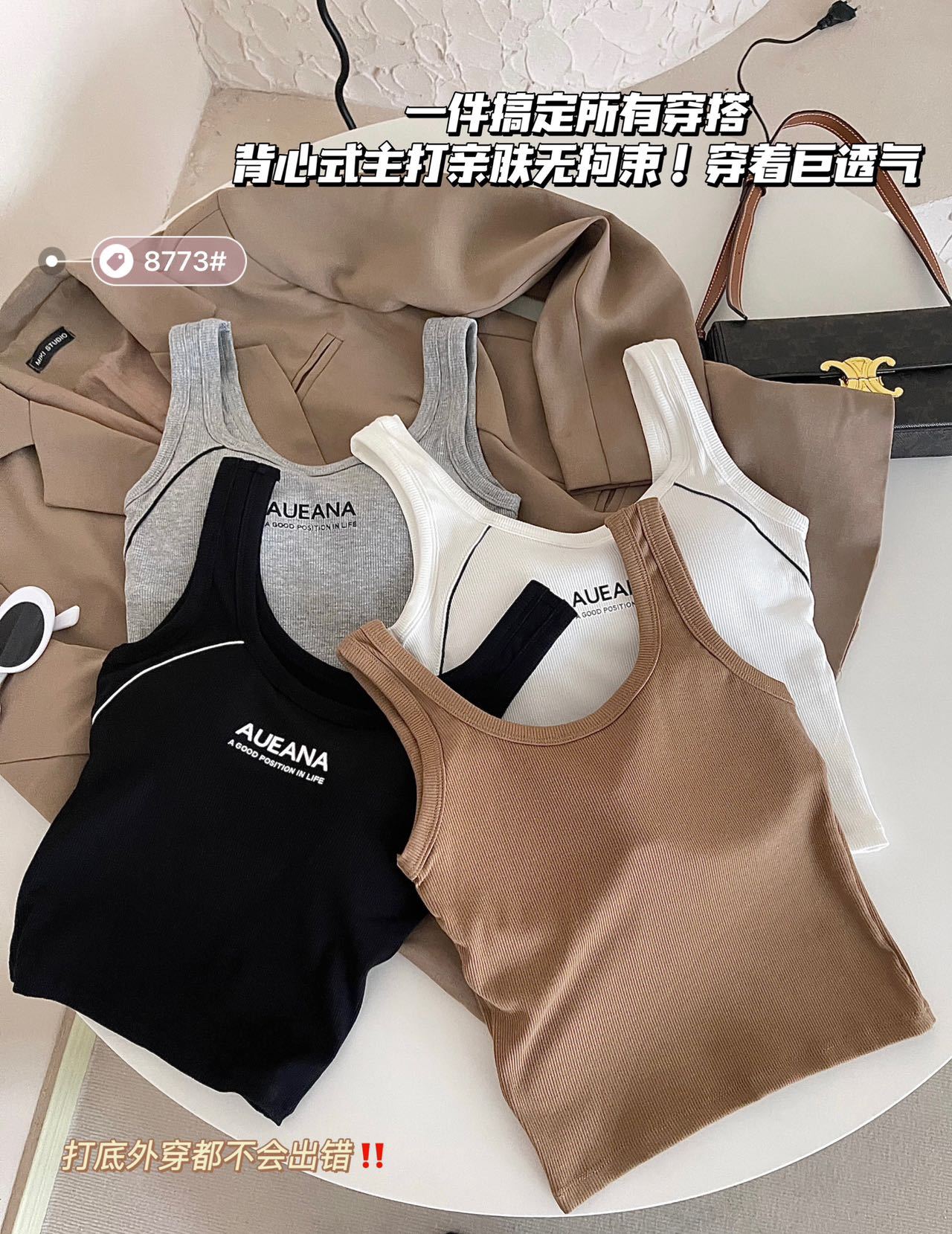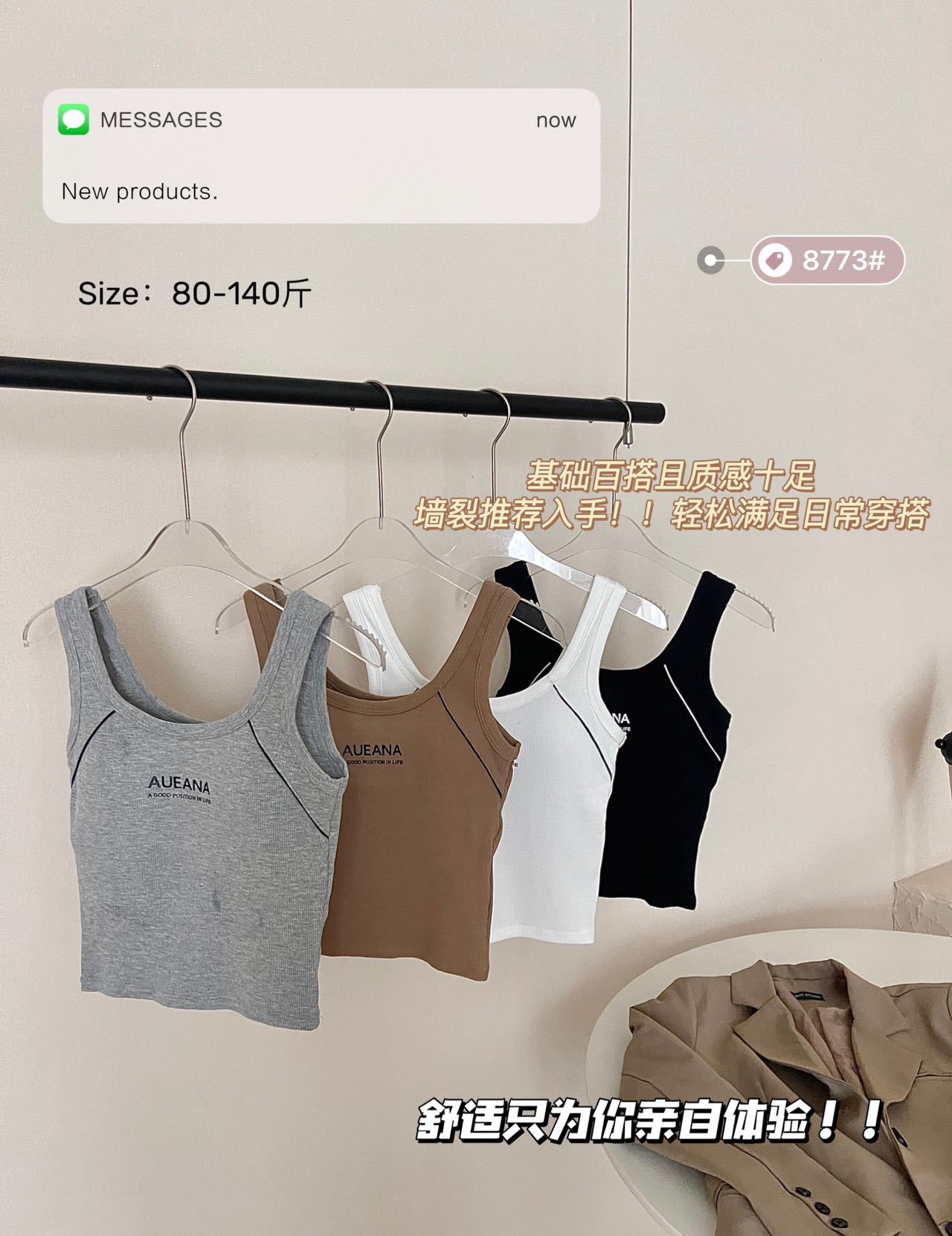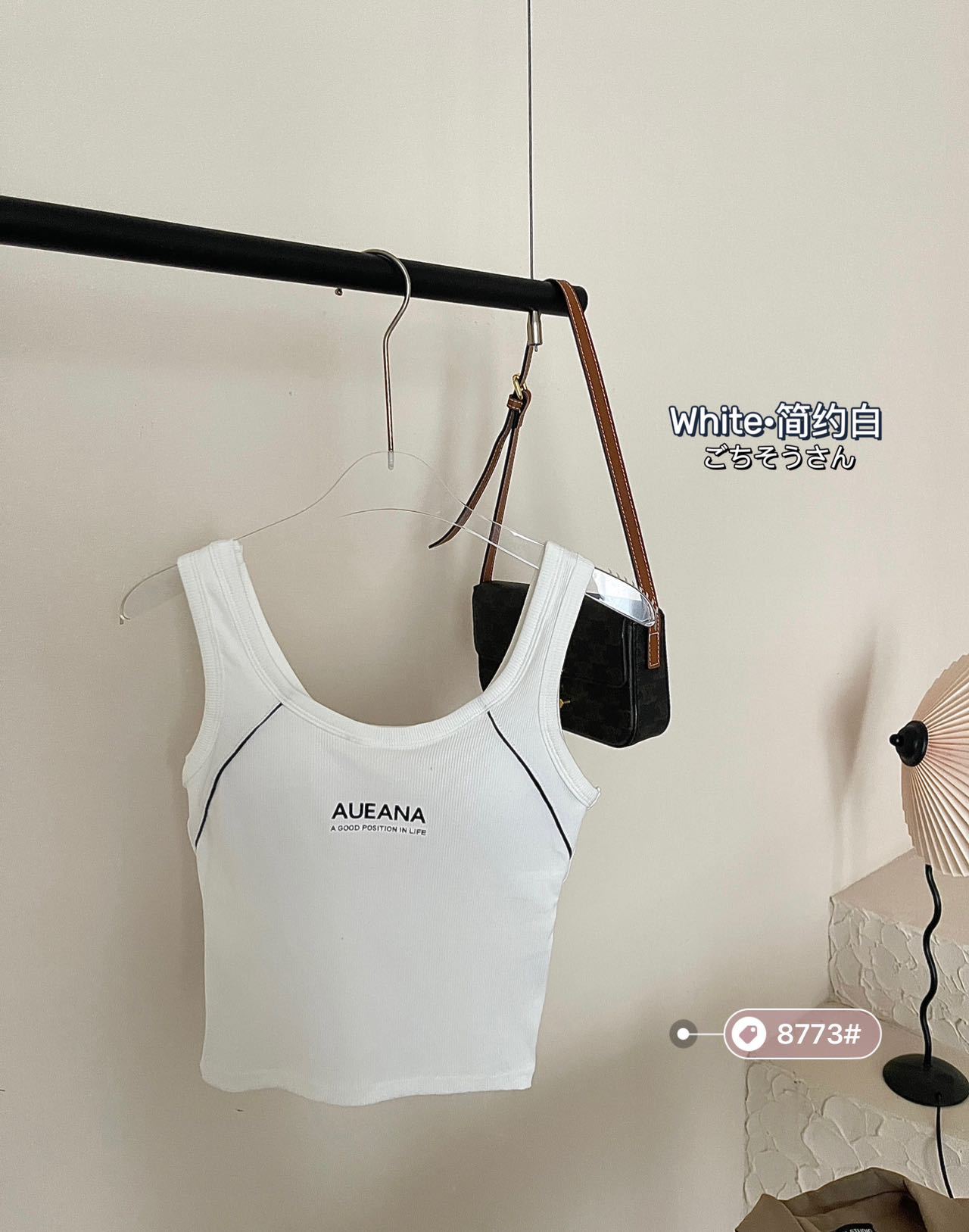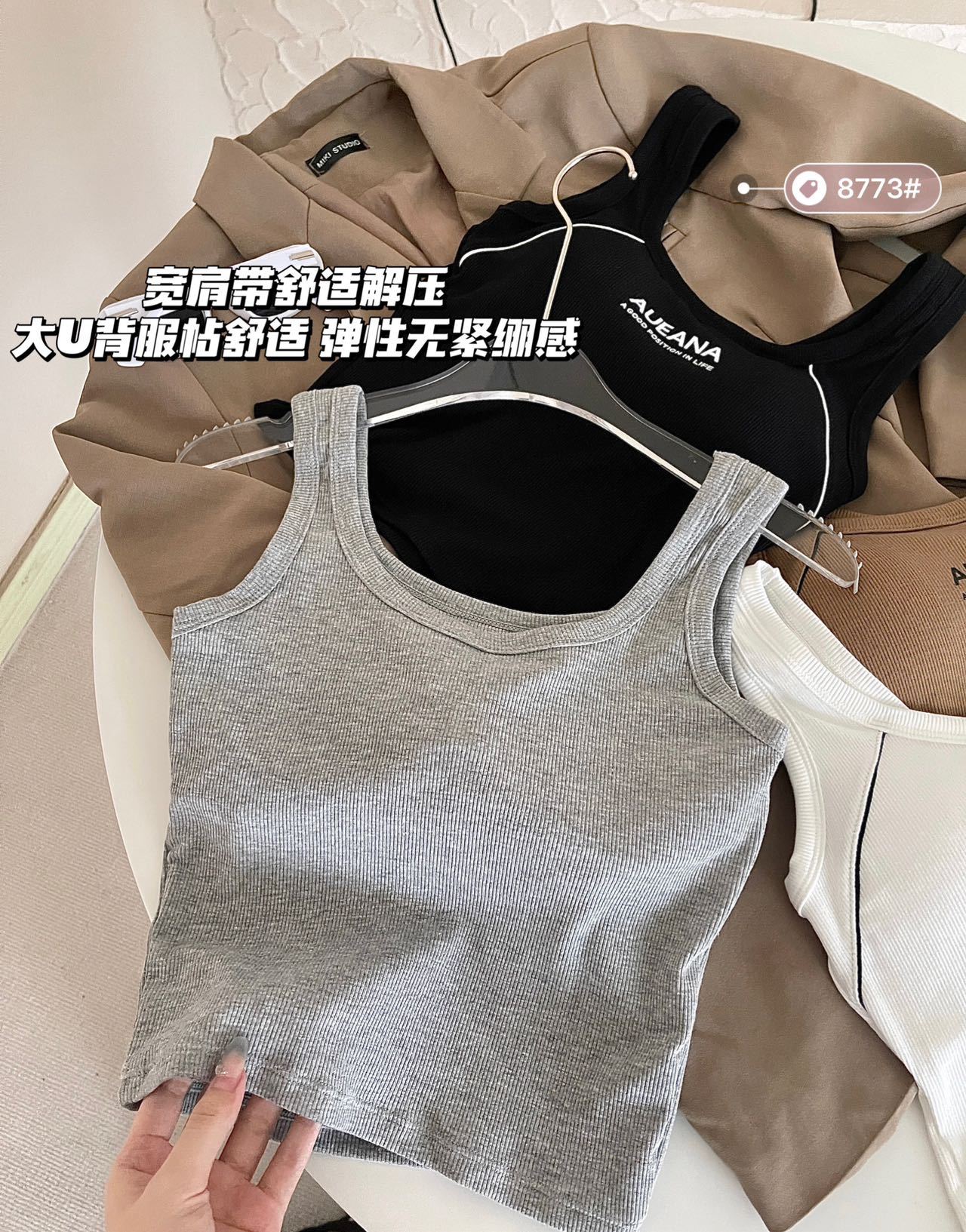 描述:面料名称:棉,主面料成分:棉,品牌:无,产品类别:吊带背心,产地:汕头,货号:8773#,颜色:黑色,白色,灰色,咖色,尺码:均码(80-125斤),是否跨境出口专供货源:是,款式细节:印花,上市时间:2023年秋季,款式:背心式,风格:百搭,领型:圆领,季节:四季通用,主面料成分含量:90%(含)-95%(不含),面料厚薄(克重):适中(181-200克/平米),
