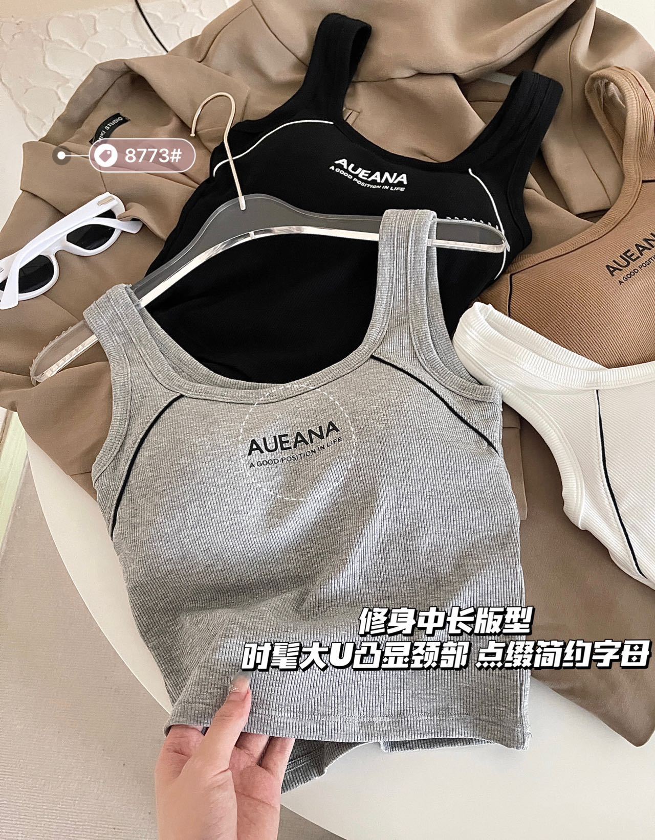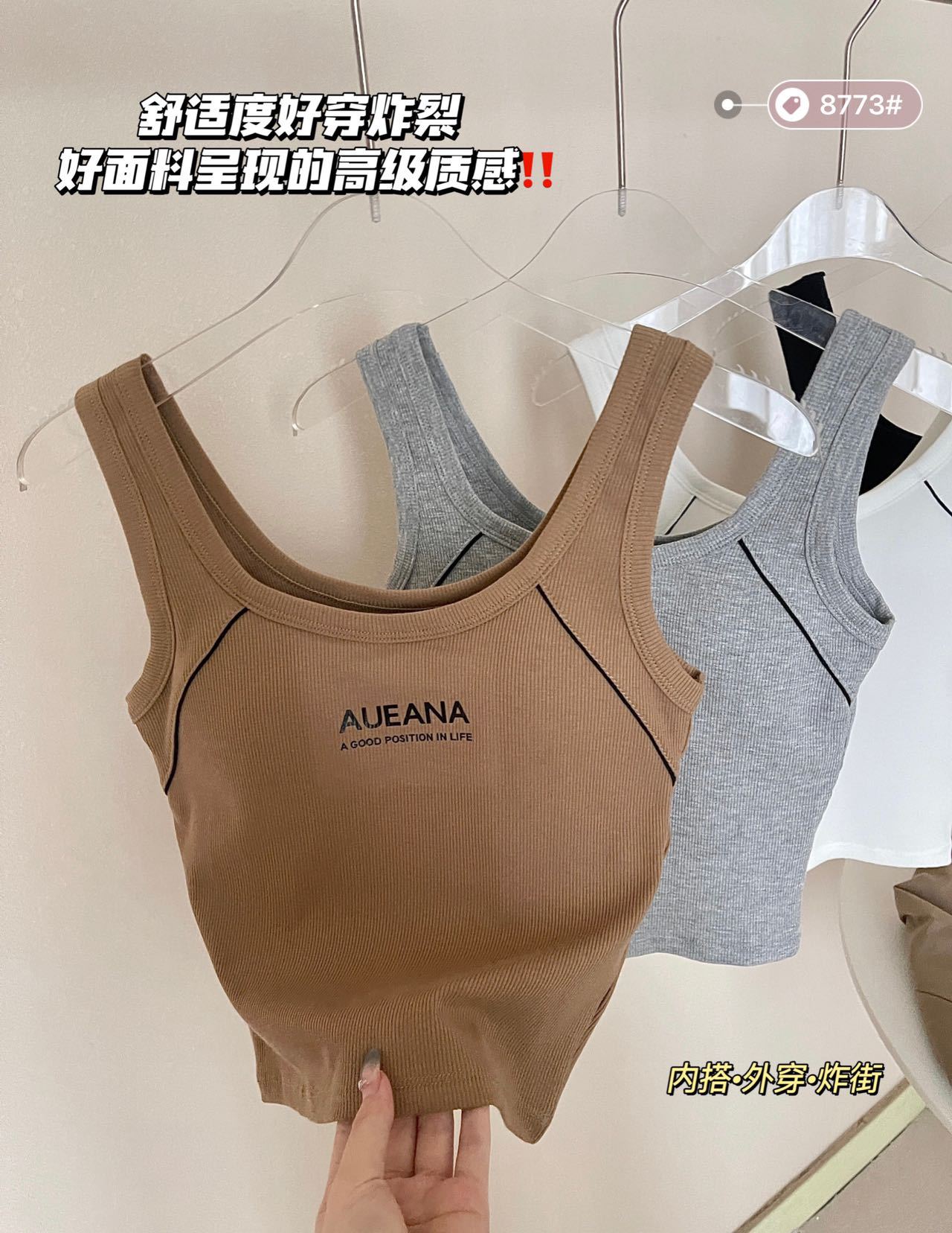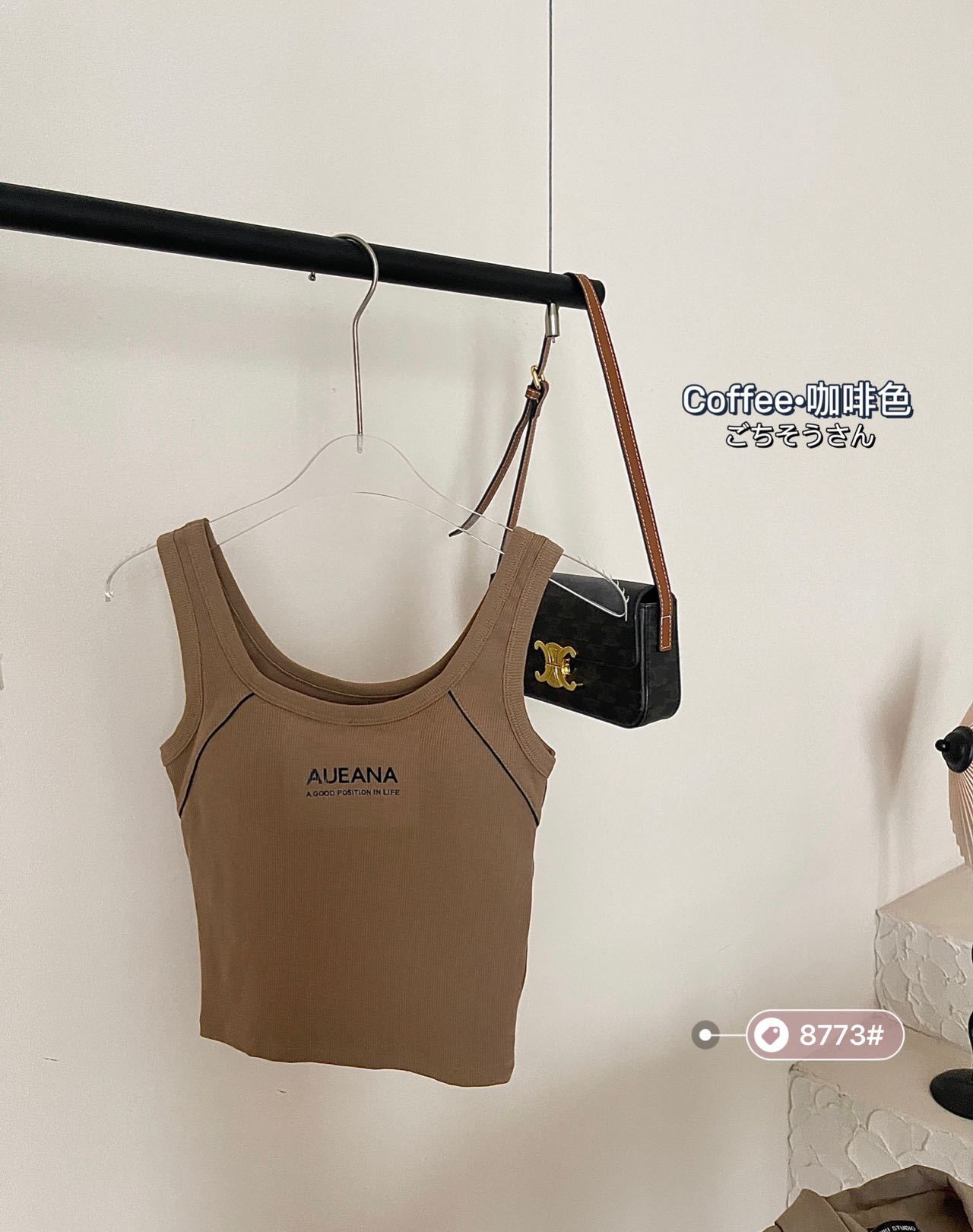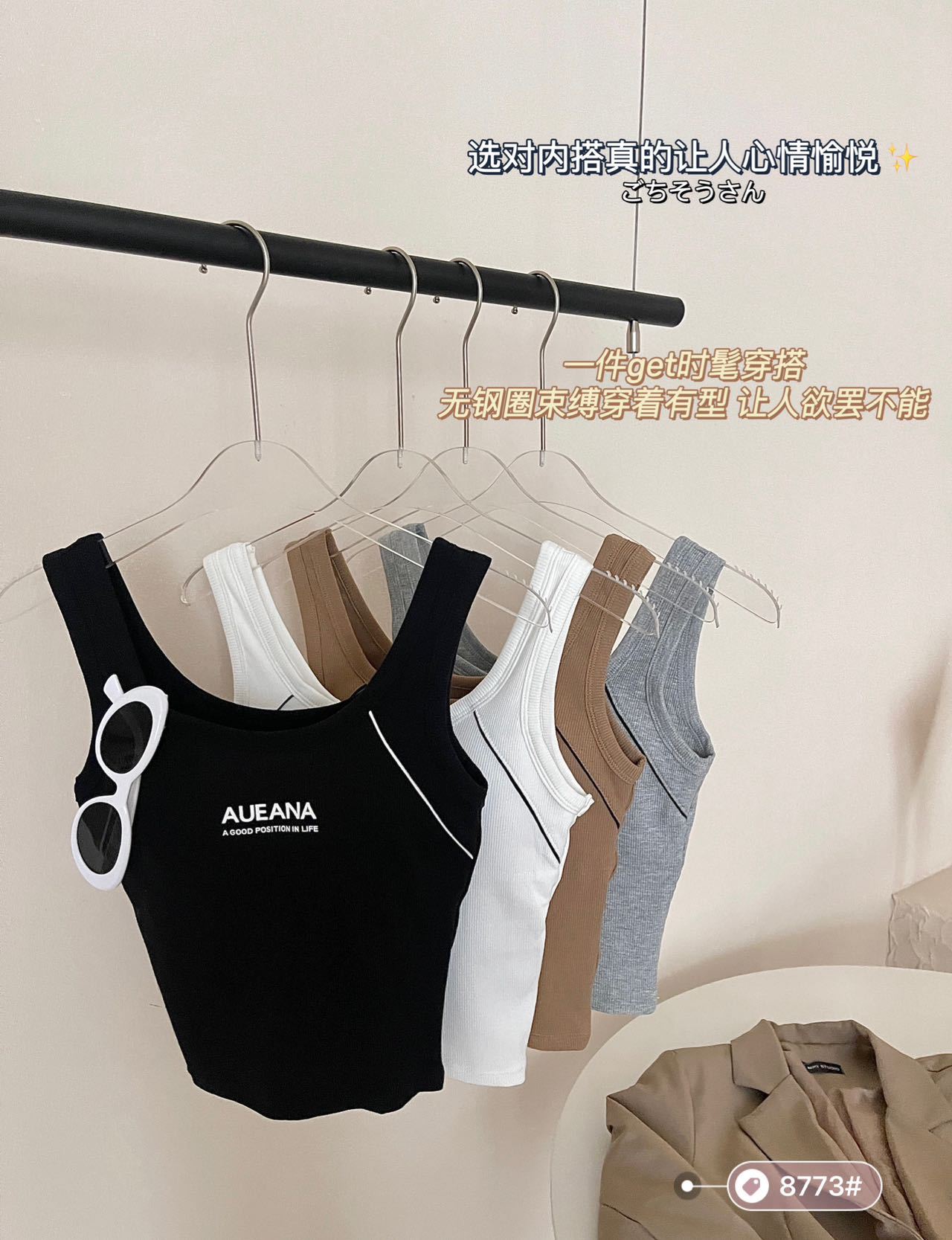 描述:面料名称:棉,主面料成分:棉,品牌:无,产品类别:吊带背心,产地:汕头,货号:8773#,颜色:黑色,白色,灰色,咖色,尺码:均码(80-125斤),是否跨境出口专供货源:是,款式细节:印花,上市时间:2023年秋季,款式:背心式,风格:百搭,领型:圆领,季节:四季通用,主面料成分含量:90%(含)-95%(不含),面料厚薄(克重):适中(181-200克/平米),
