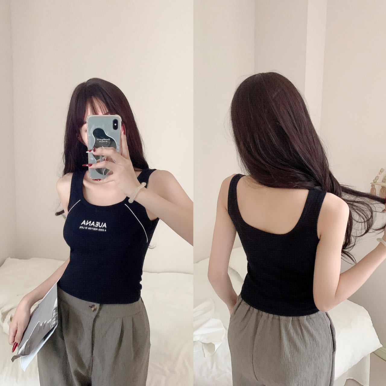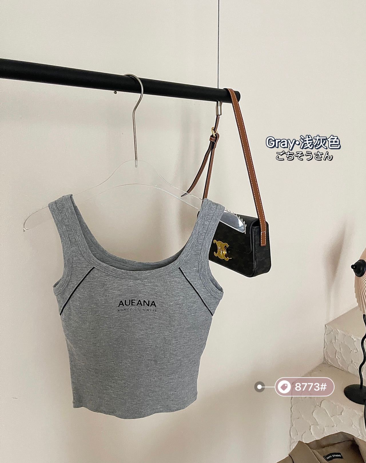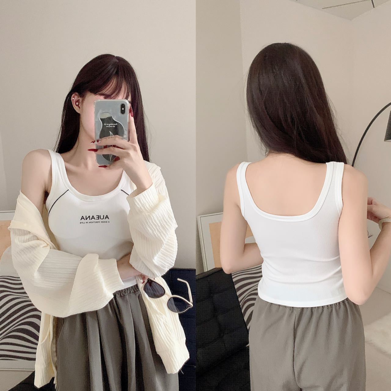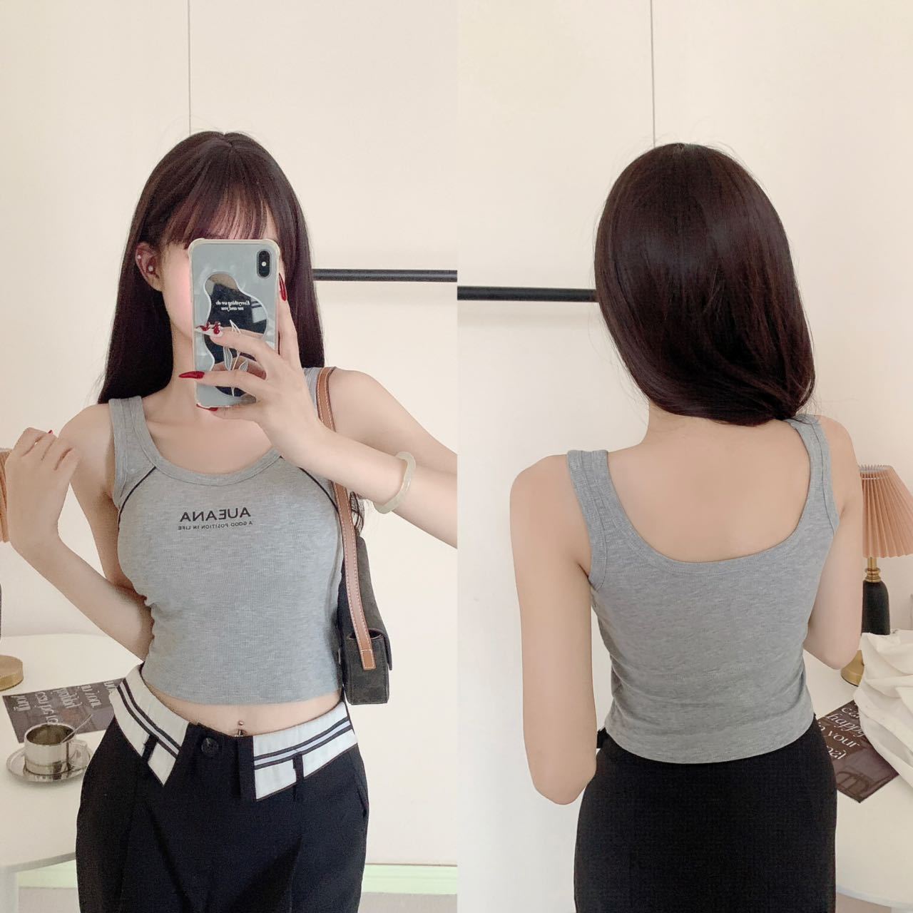 标题:纯色无袖打底背心女秋冬款印花字母修身显瘦短款时尚U领内搭上衣