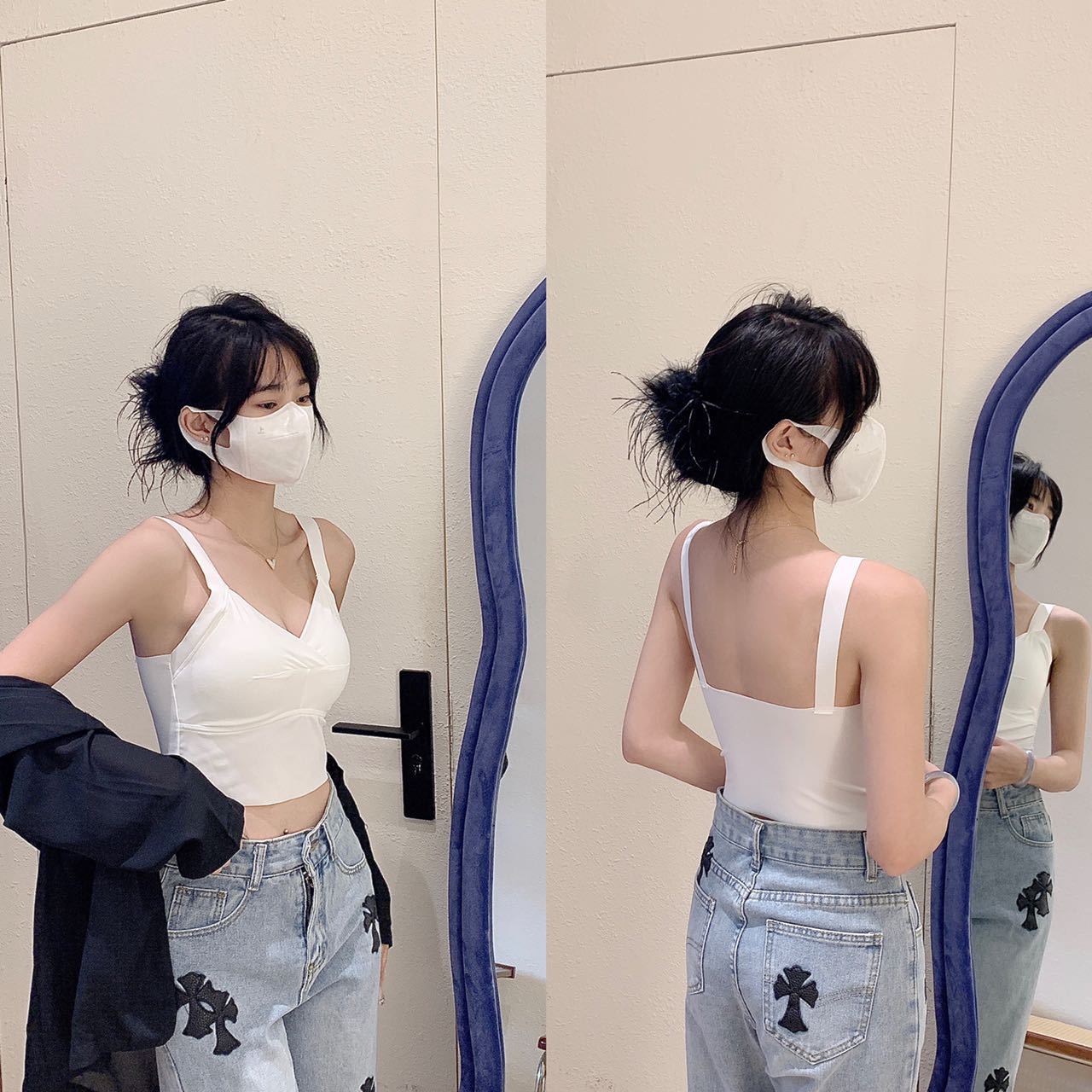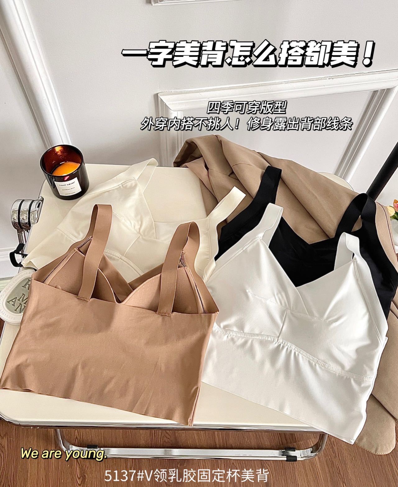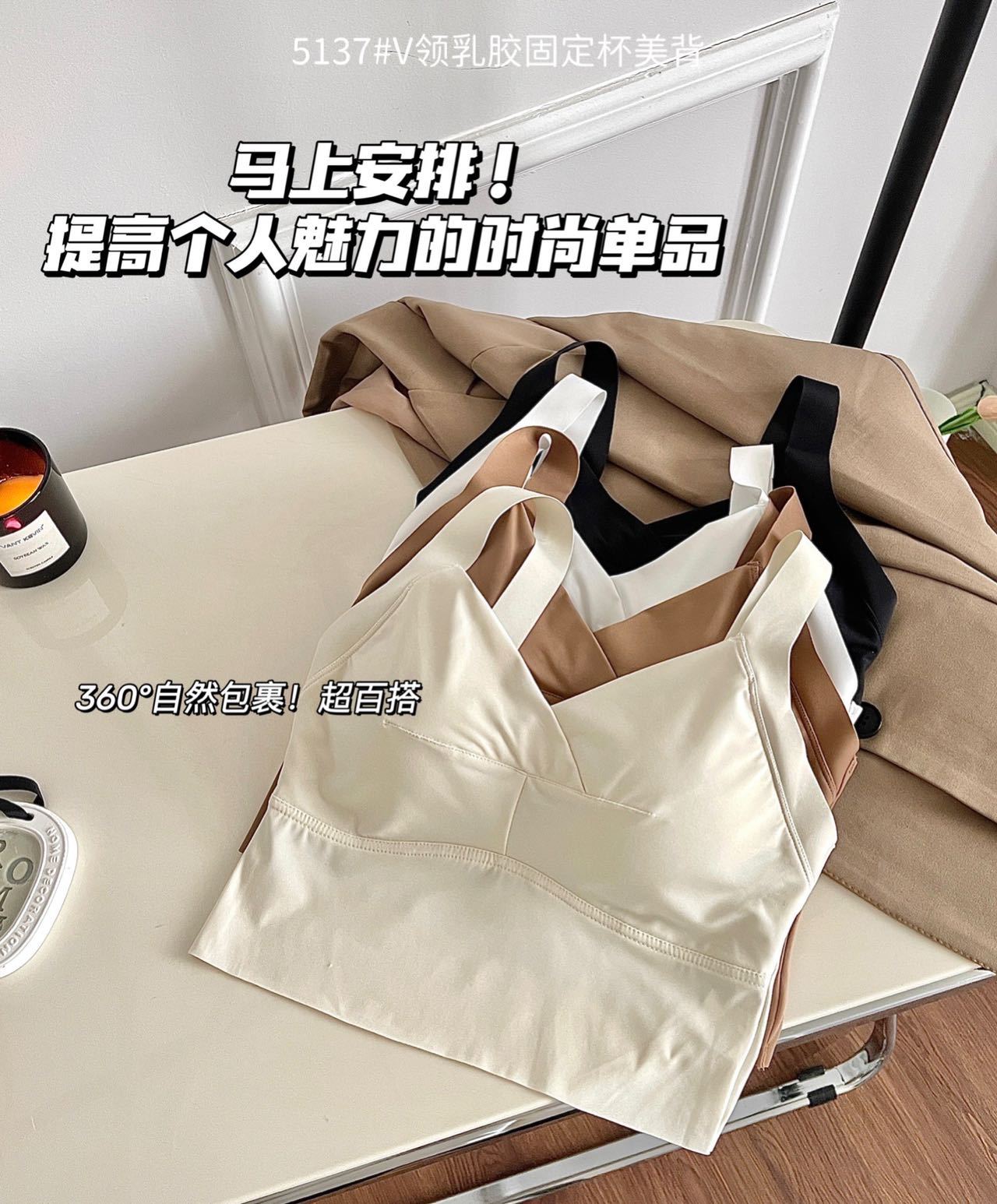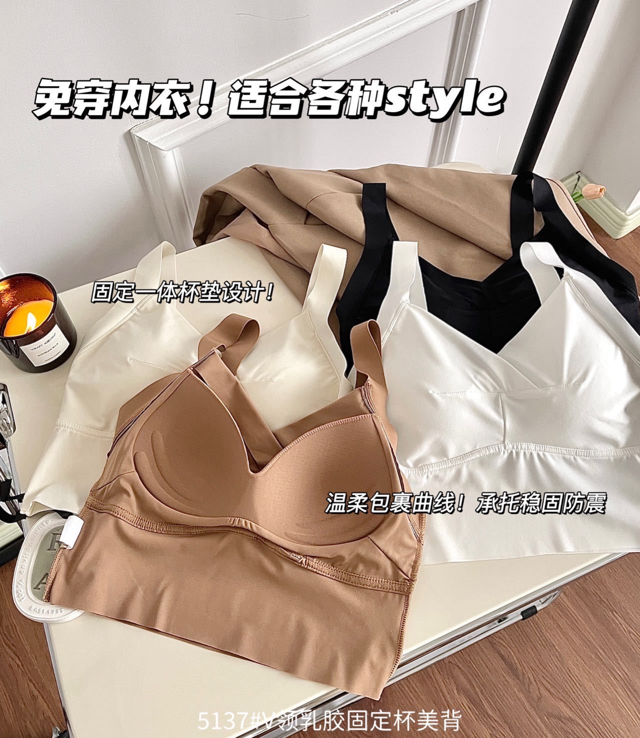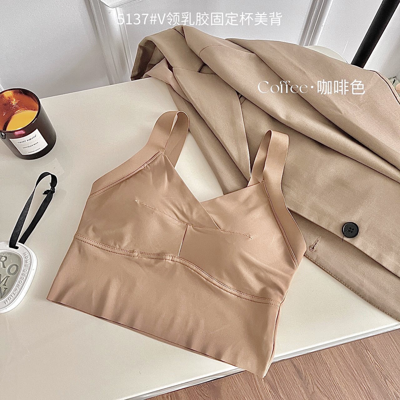 标题:韩国夏季冰丝性感内衣女士固定胸垫美背背心裹胸少女运动瑜伽文胸