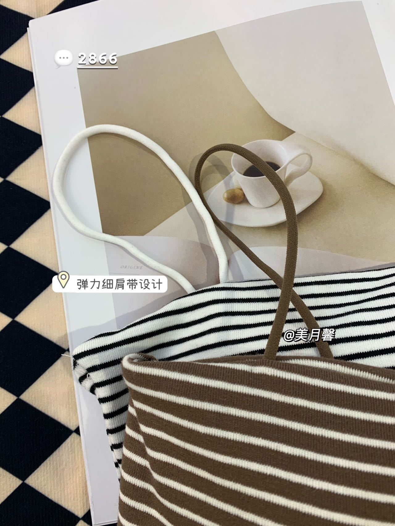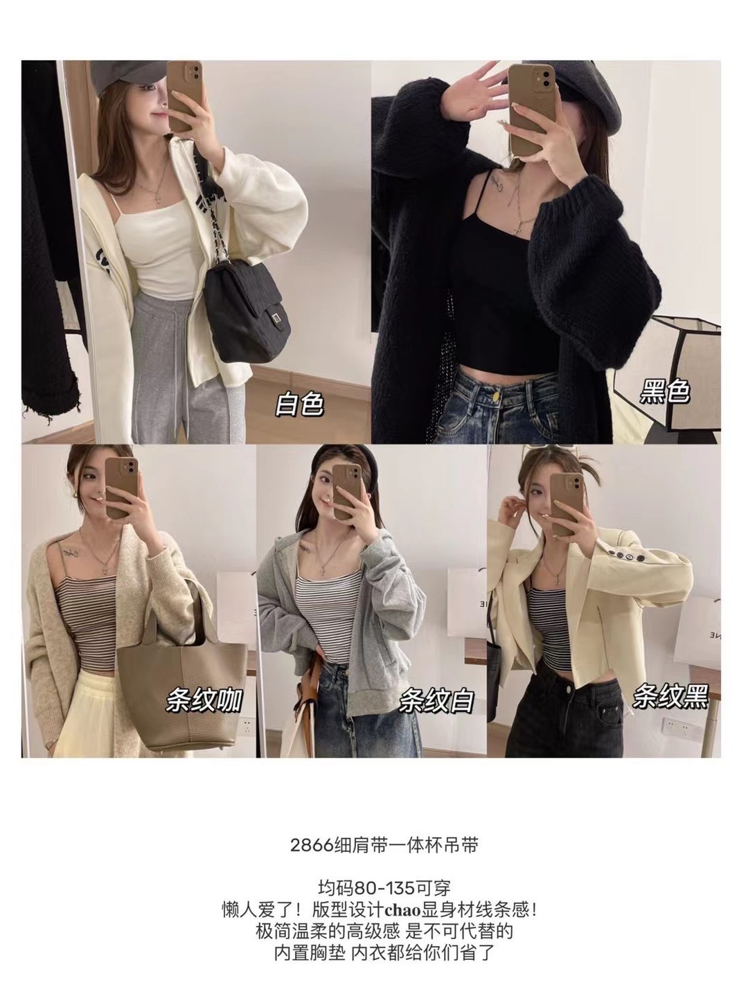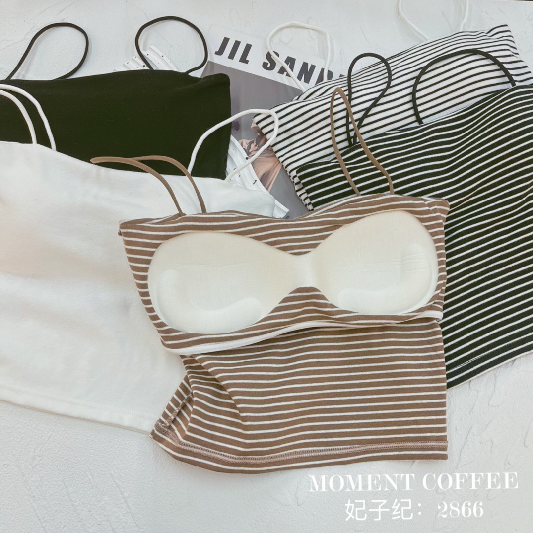 描述:面料名称:全棉,主面料成分:棉,品牌:黛蒽思,产品类别:吊带背心,产地:汕头,货号:2866,颜色:白色,黑色,条纹咖色,条纹黑色,条纹白色,尺码:均码,是否跨境出口专供货源:否,款式细节:无缝/一片式,上市时间:2023年春季,款式:吊带,风格:性感,领型:圆领,季节:夏季,冬季,春季,秋季,四季通用,主面料成分含量:100%,面料厚薄(克重):厚 (201-250克/平米),
