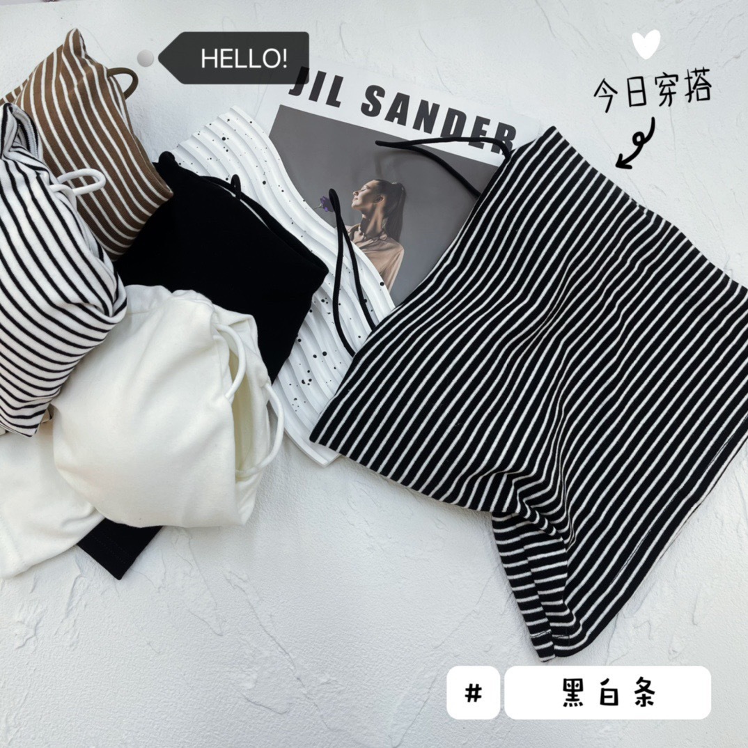 标题:夏季新款撞色条纹美背吊带背心纯棉裹胸抹胸打底外穿上衣女妃子纪