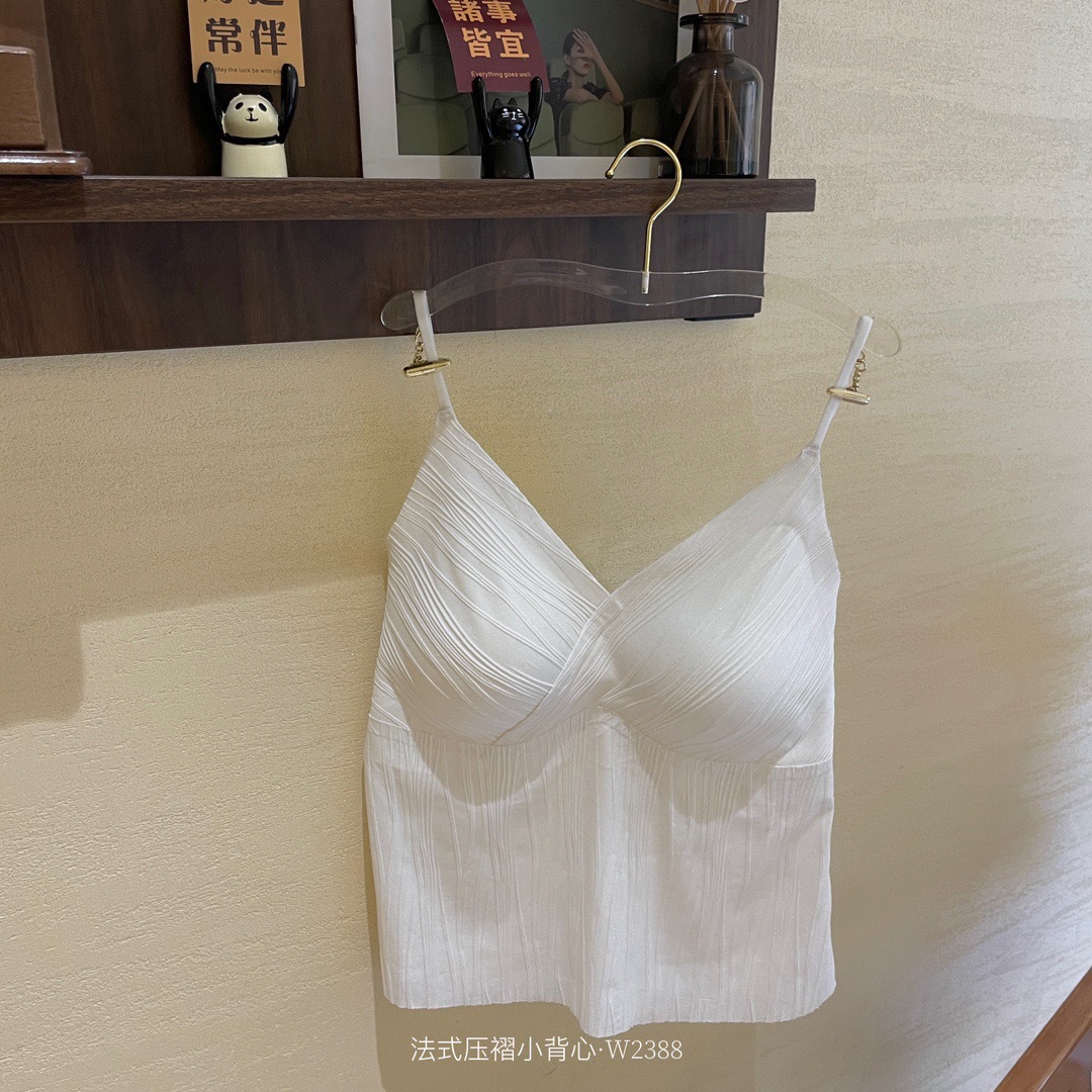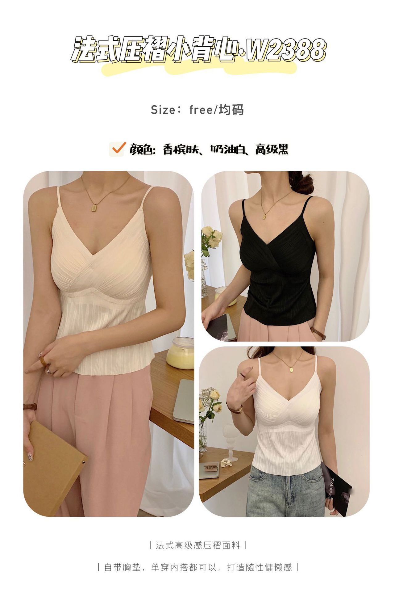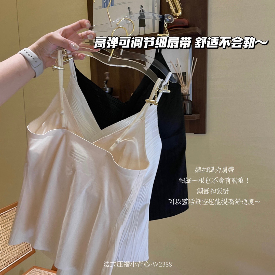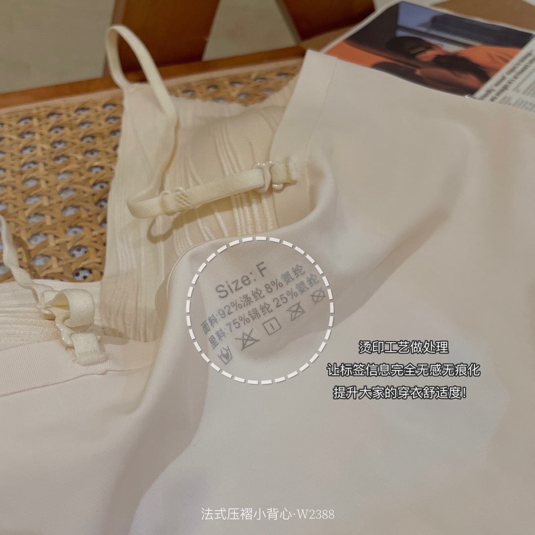 标题:法式压褶一体式吊带美背背心带胸垫聚拢无钢圈内衣软支撑无痕舒适