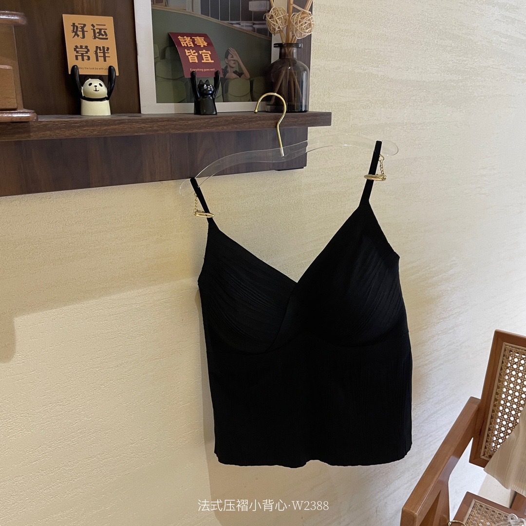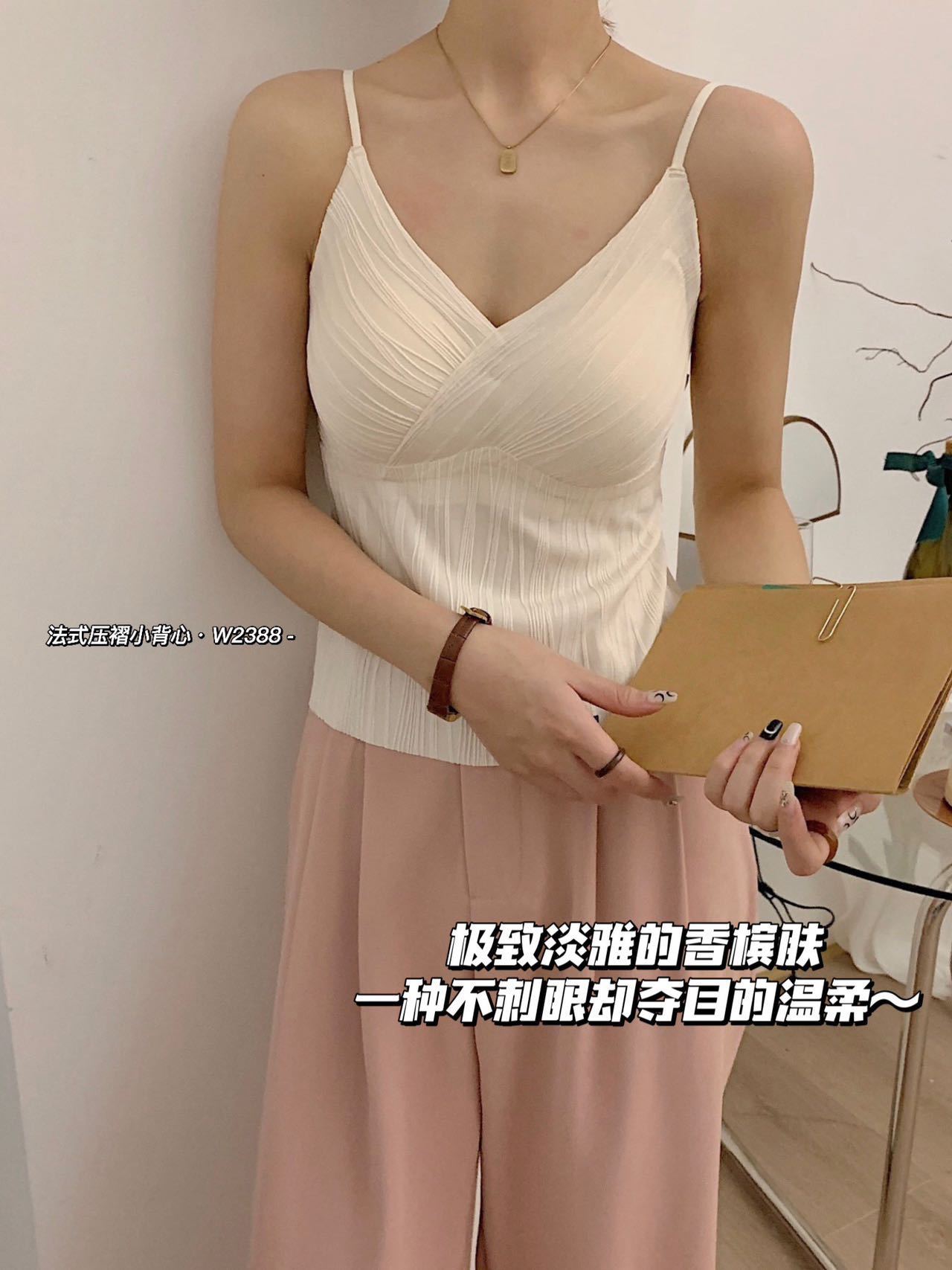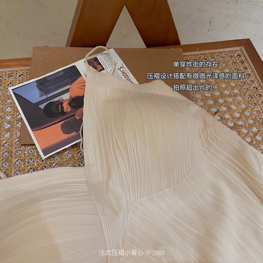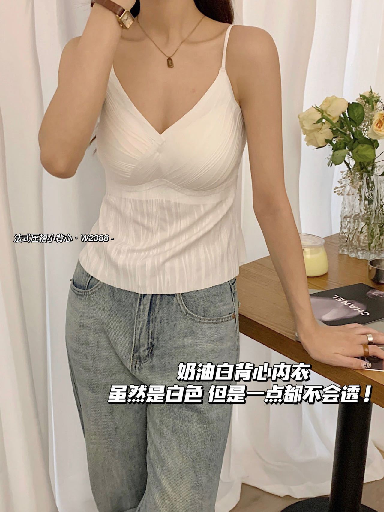 标题:法式压褶一体式吊带美背背心带胸垫聚拢无钢圈内衣软支撑无痕舒适