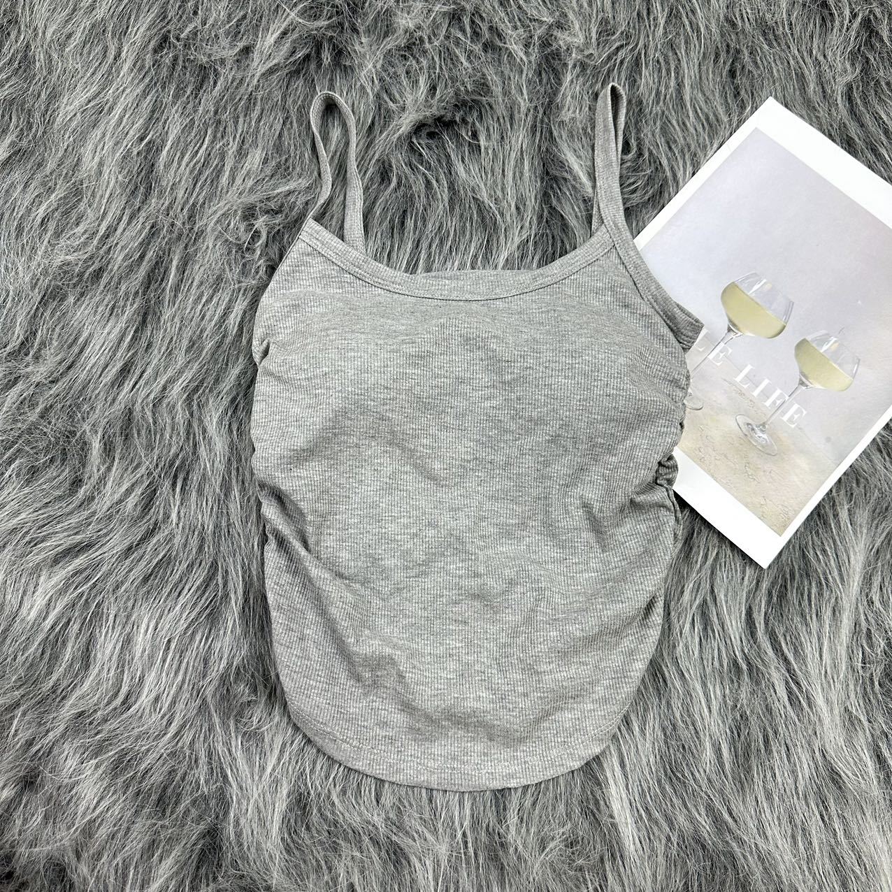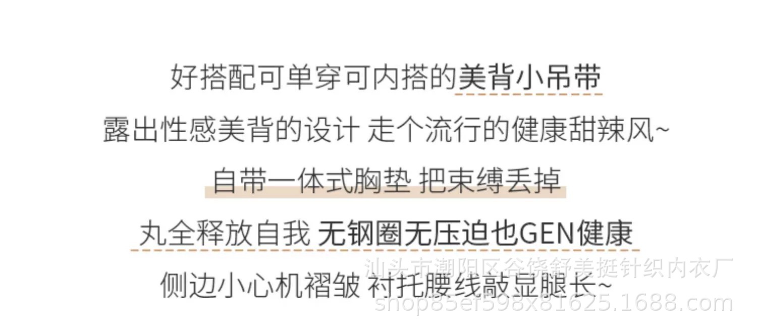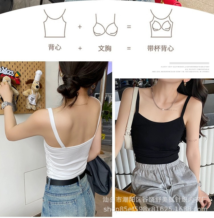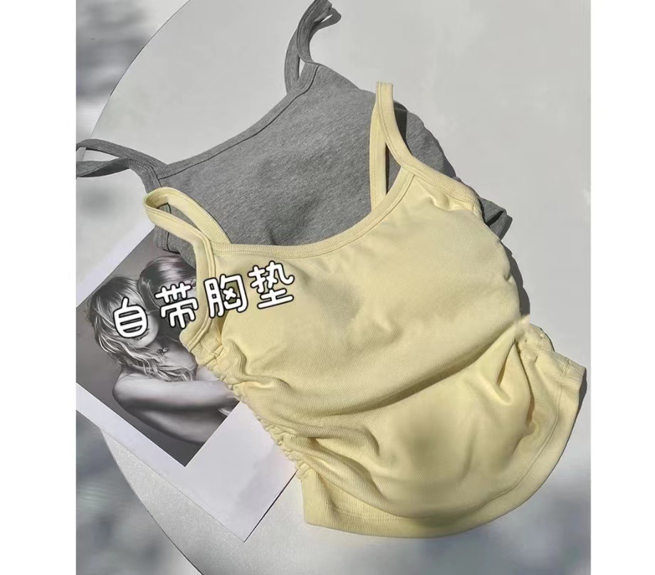 标题:新款多巴胺美背小吊带韩系内搭一体胸垫轻奢抽绳褶皱显瘦打底背心