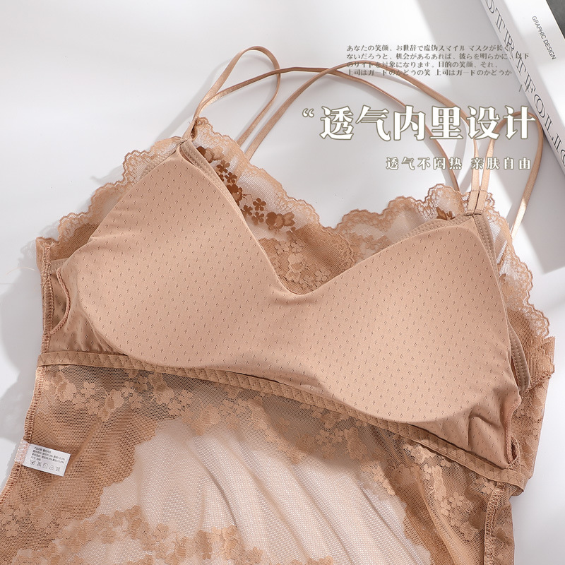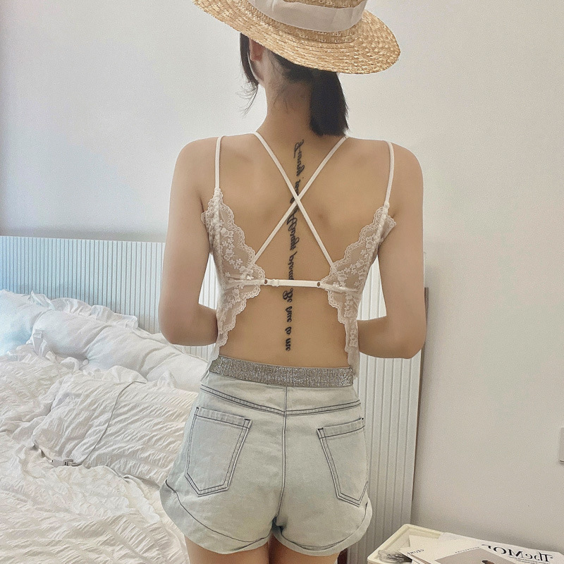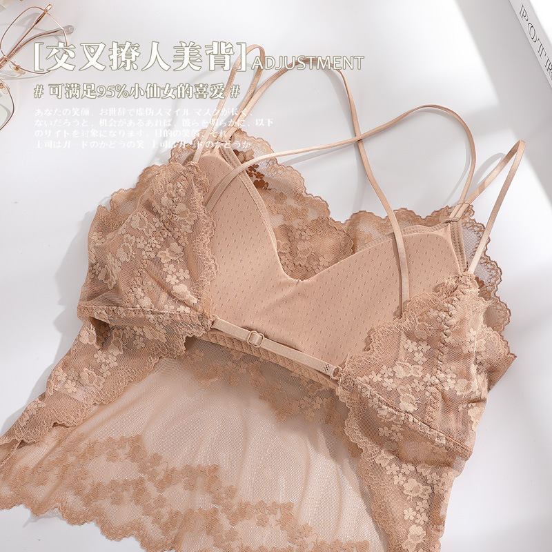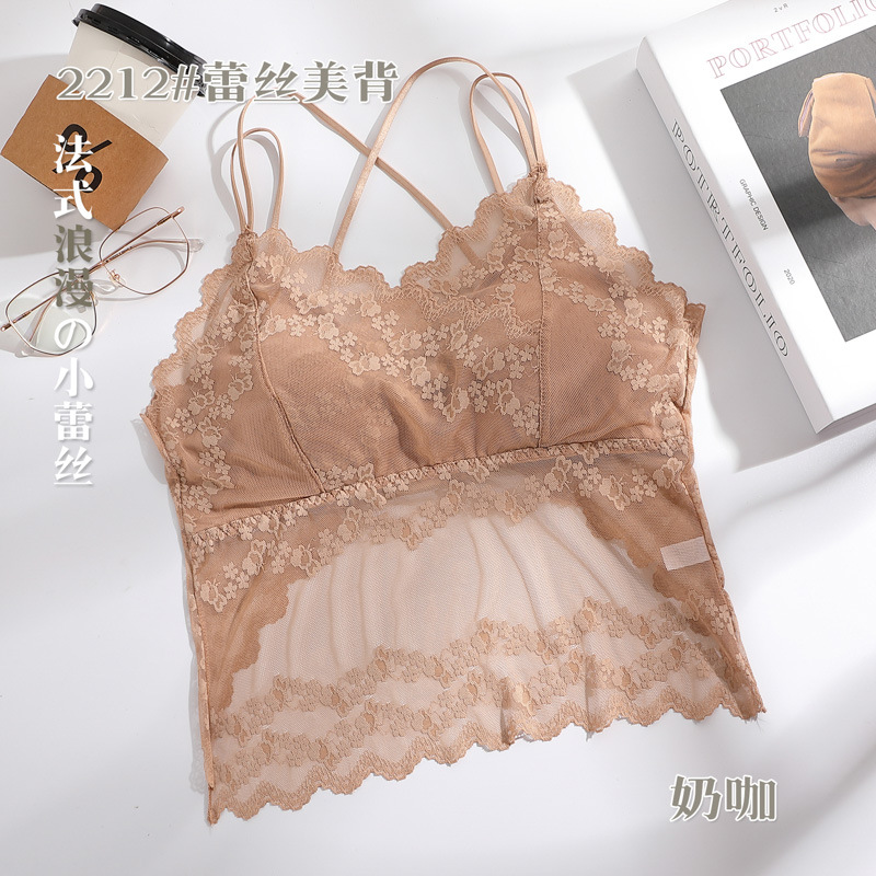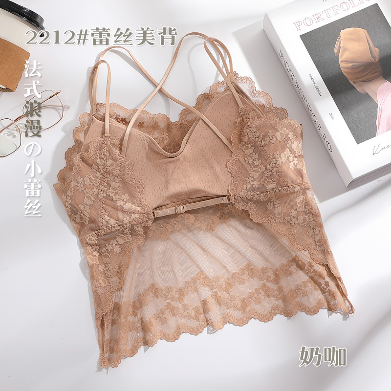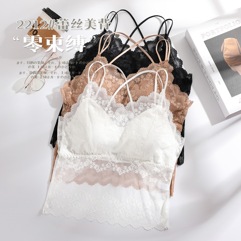 标题:蕾丝美背吊带背心女交叉内搭打底长款裹胸带胸垫性感内衣大码