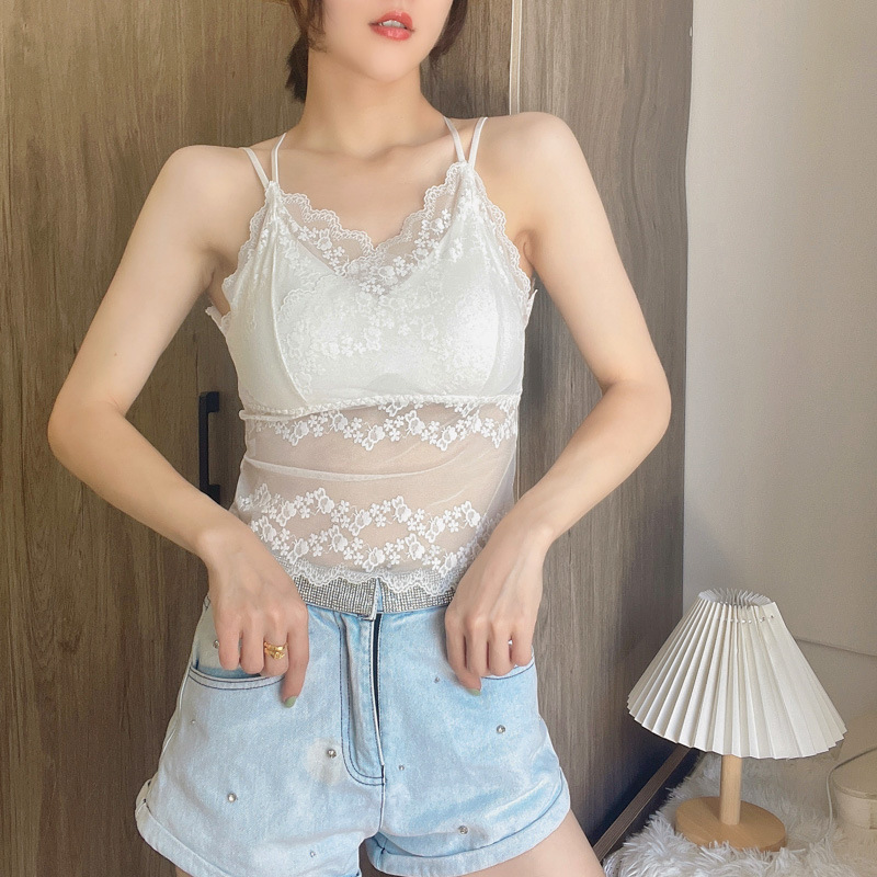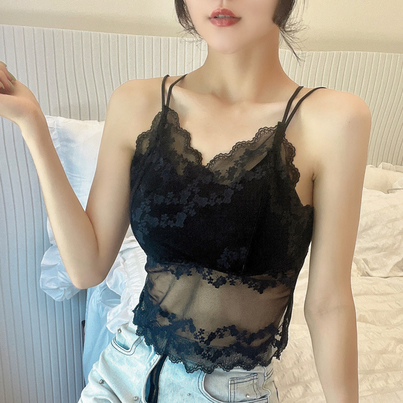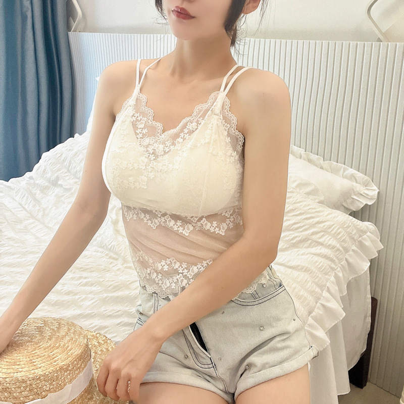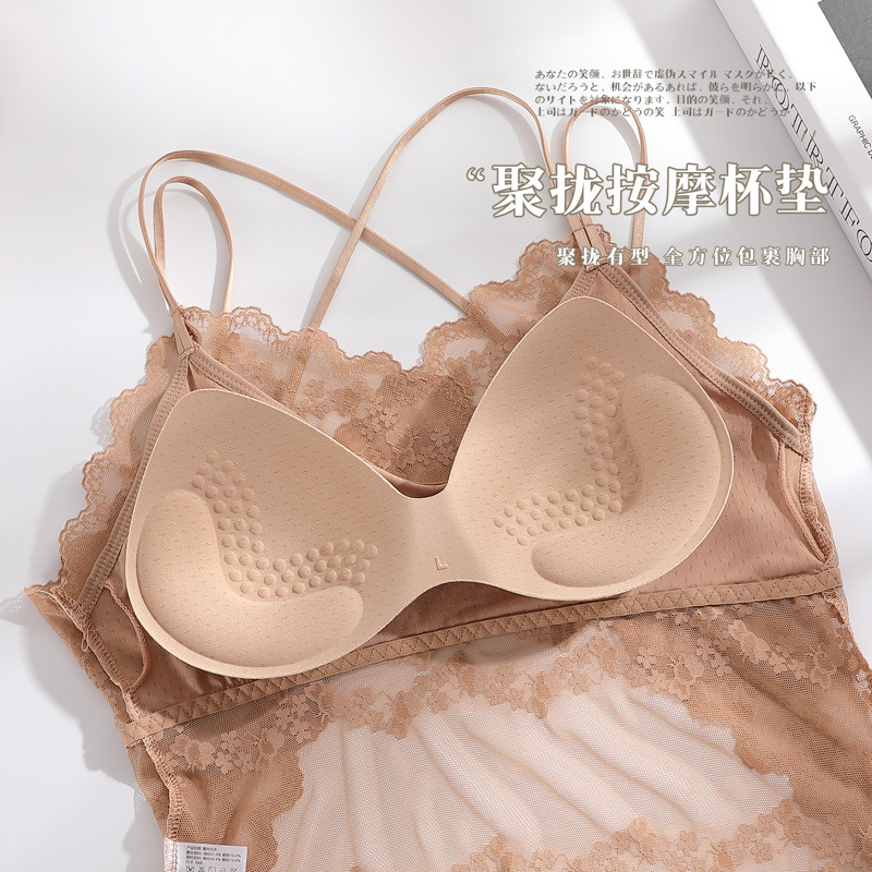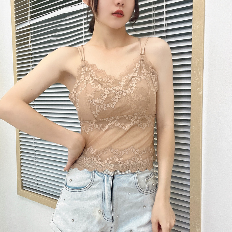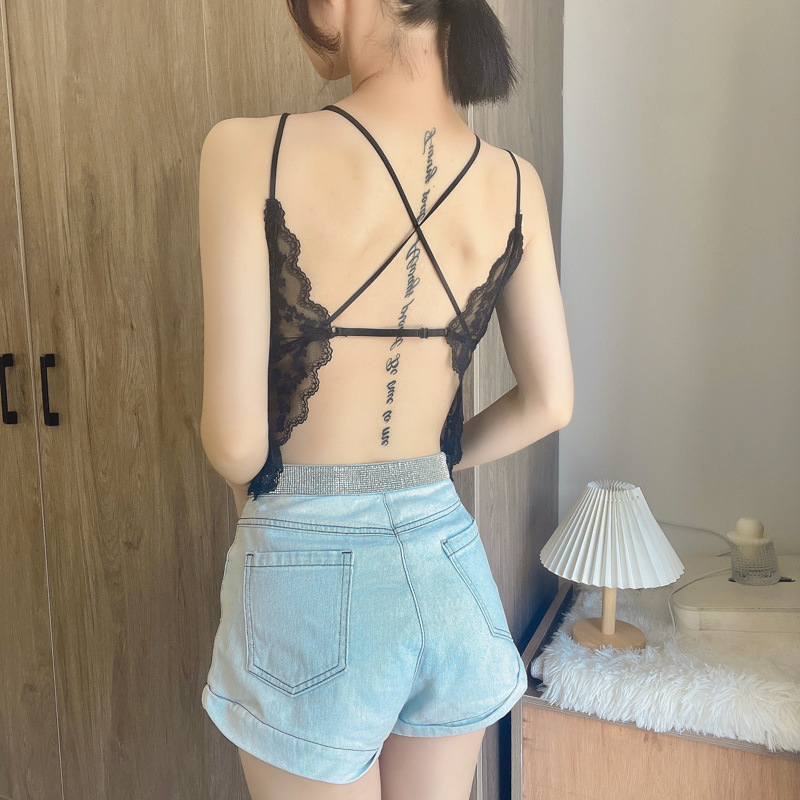 标题:蕾丝美背吊带背心女交叉内搭打底长款裹胸带胸垫性感内衣大码