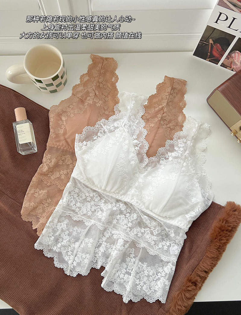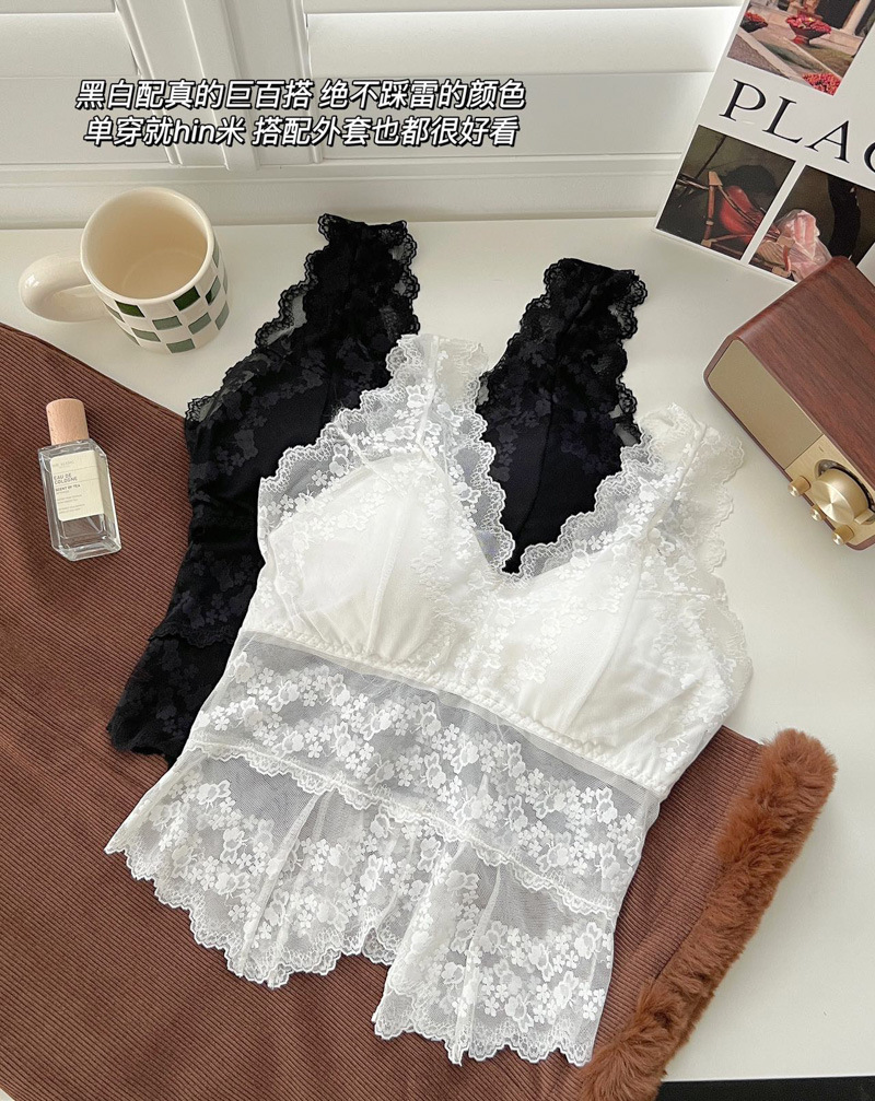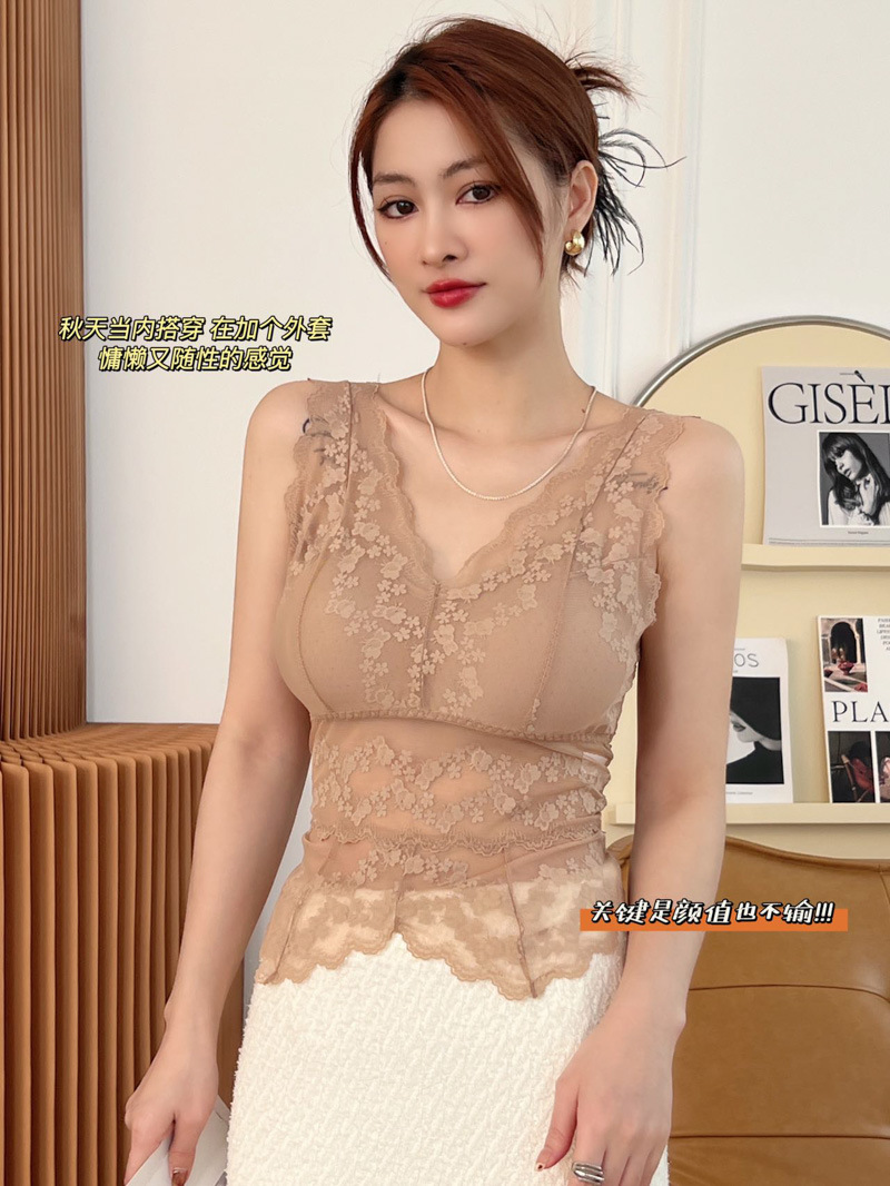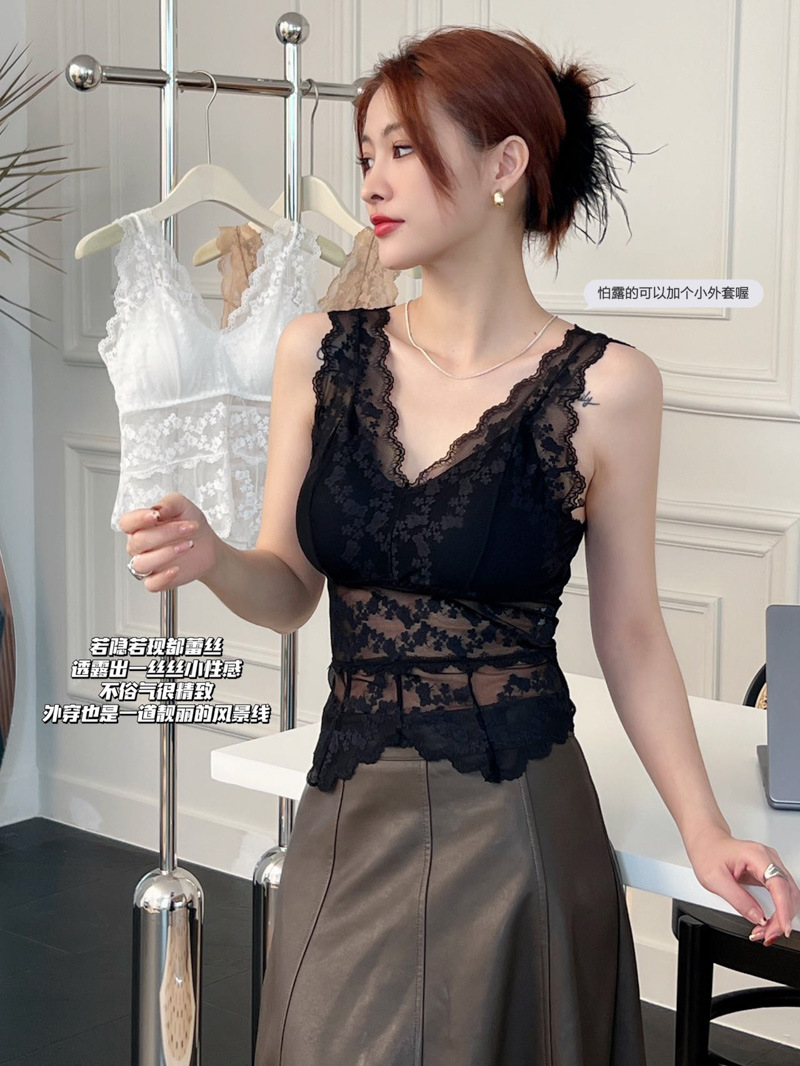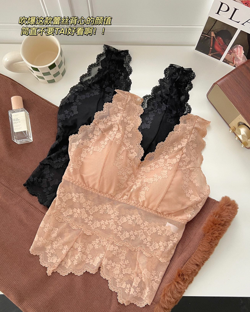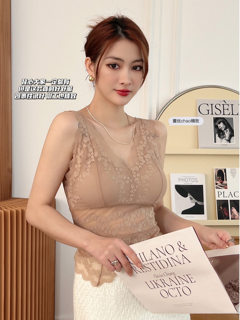 标题:蕾丝美背性感内搭打底衫薄款背心女外穿带胸垫内衣