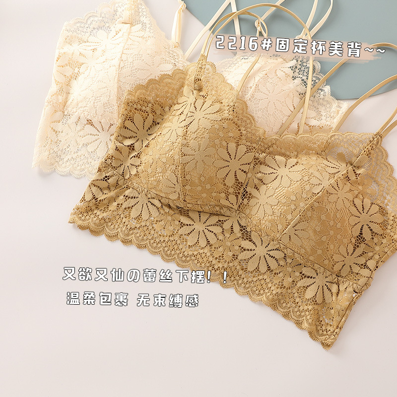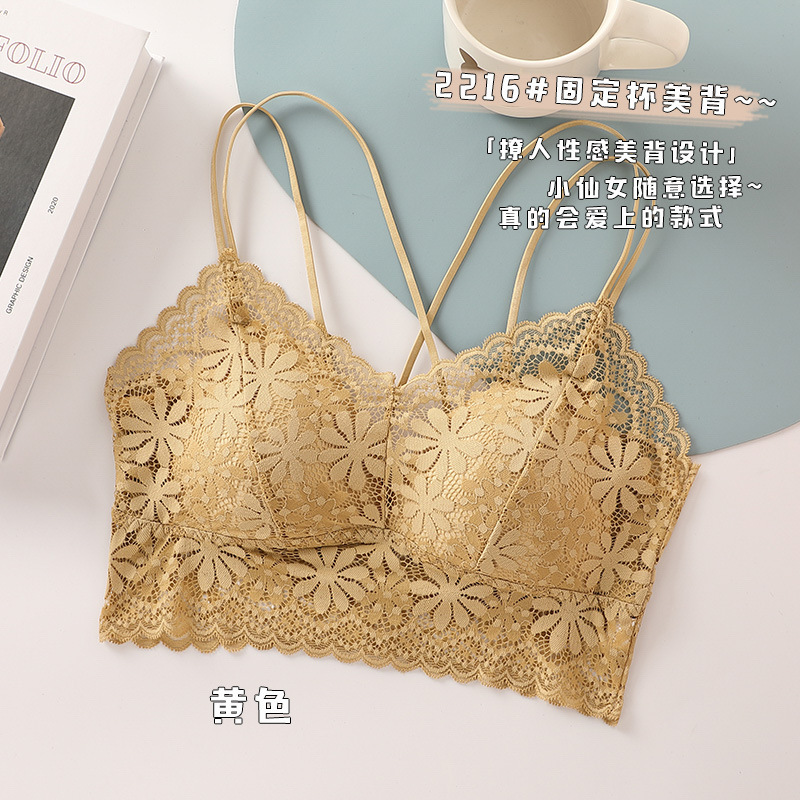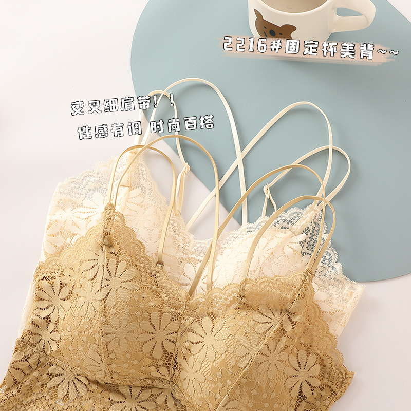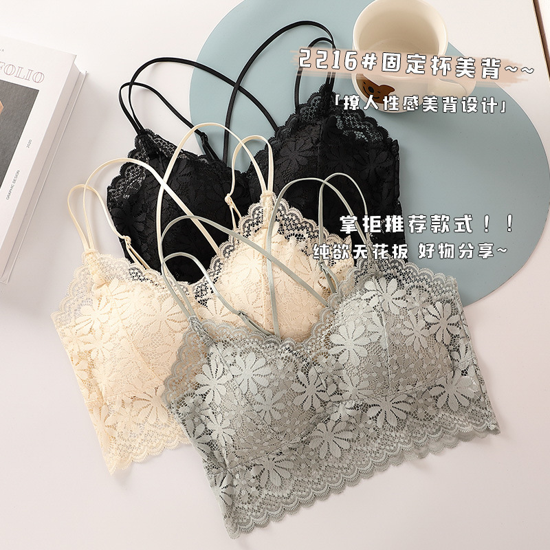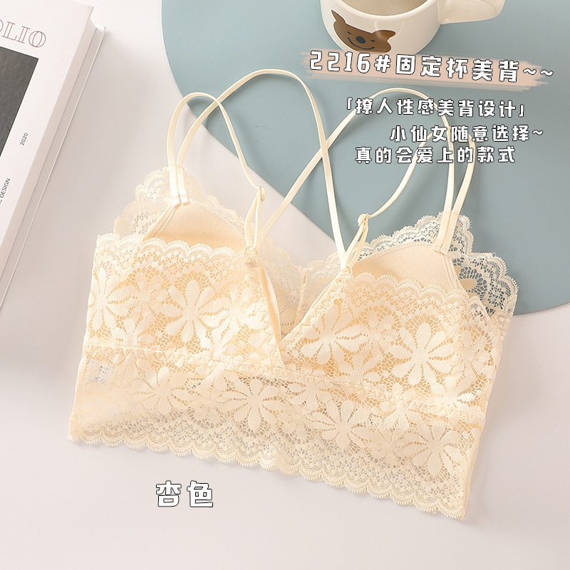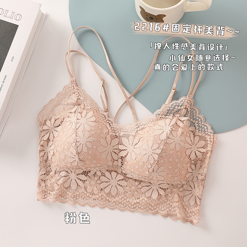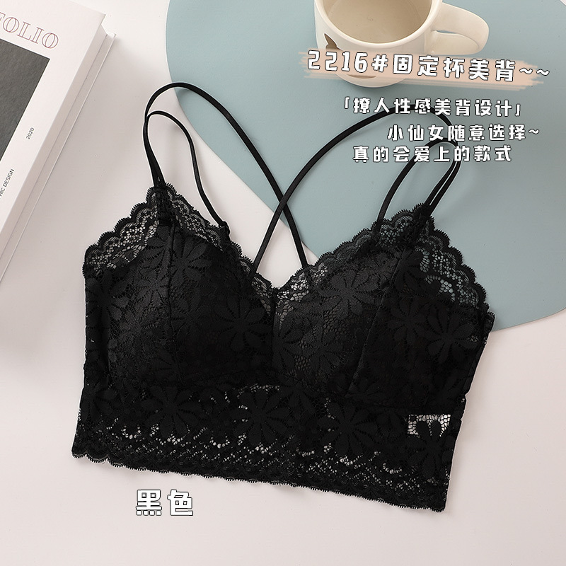 标题:蕾丝美背吊带裹胸女交叉抹胸一体式胸垫背心固定杯性感内衣