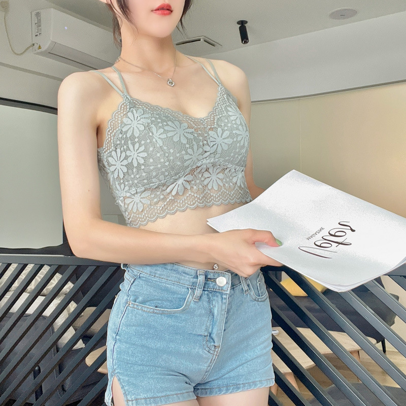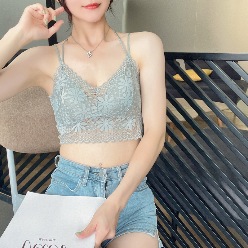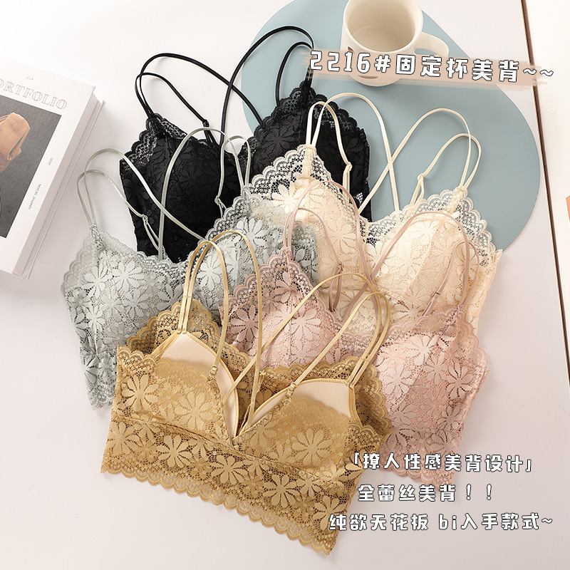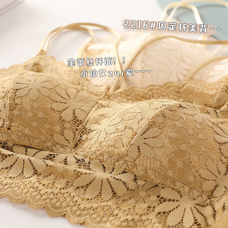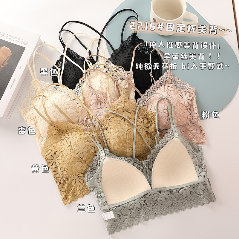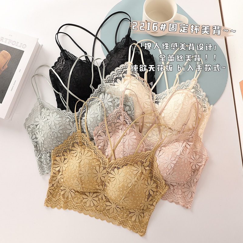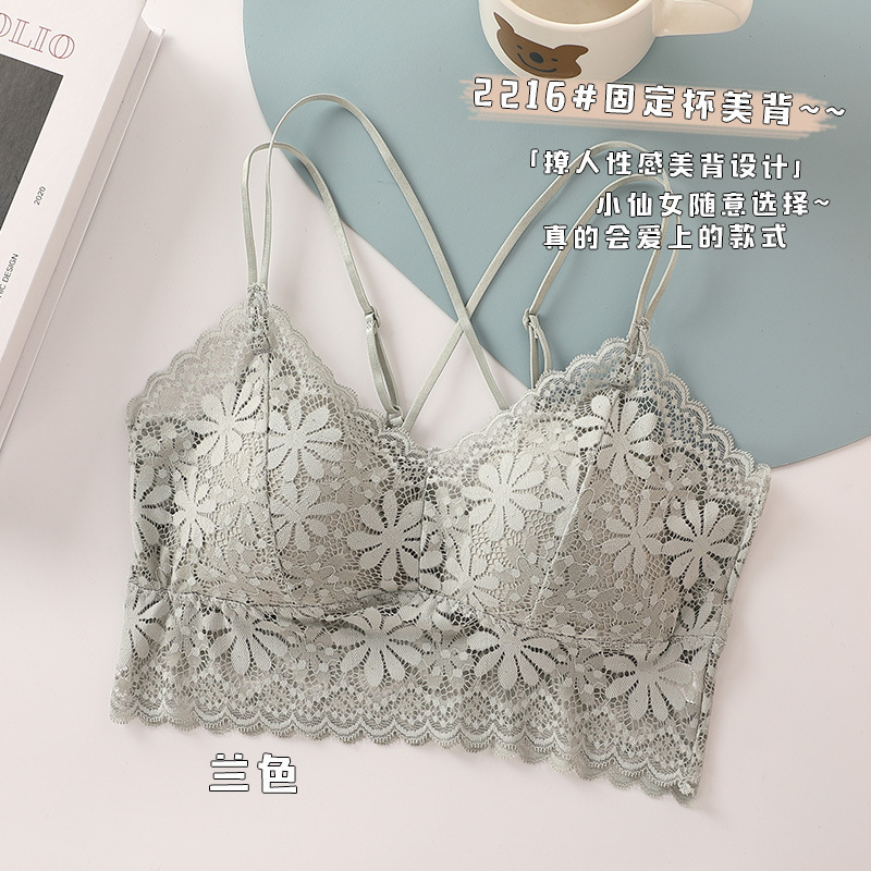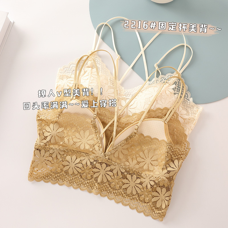 标题:蕾丝美背吊带裹胸女交叉抹胸一体式胸垫背心固定杯性感内衣