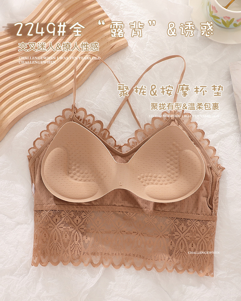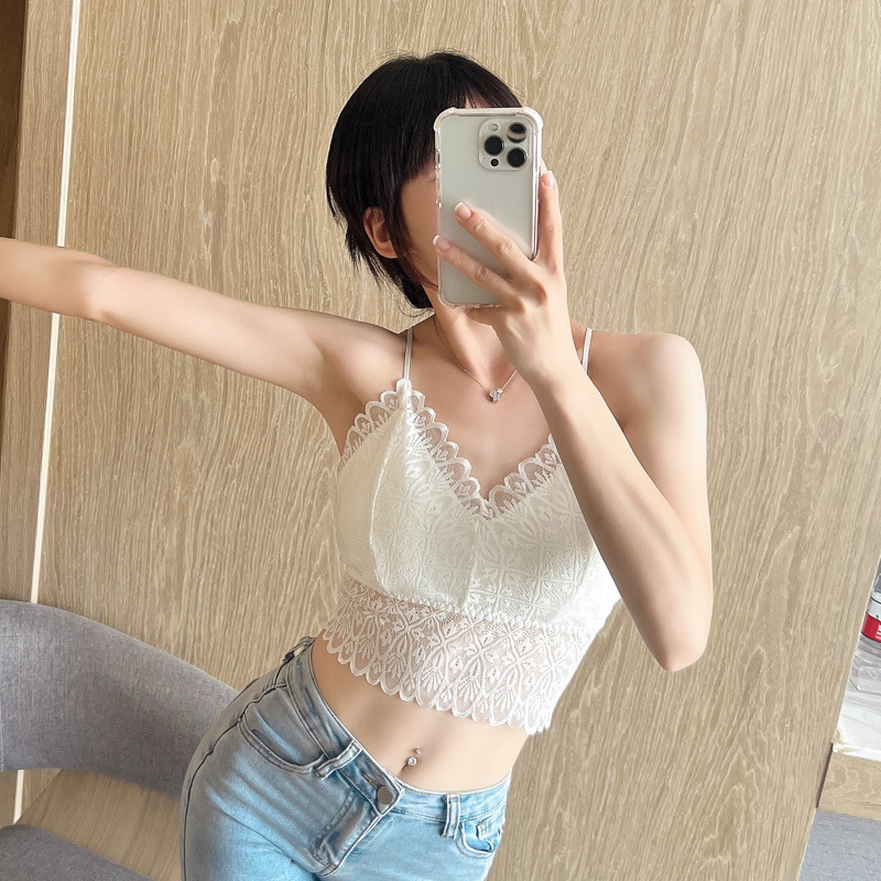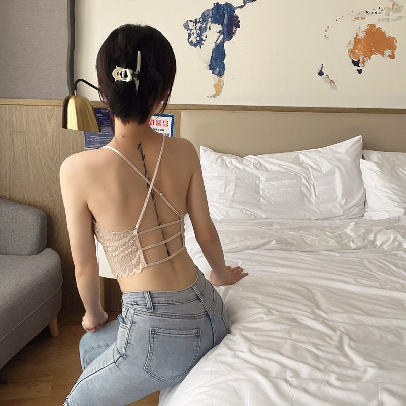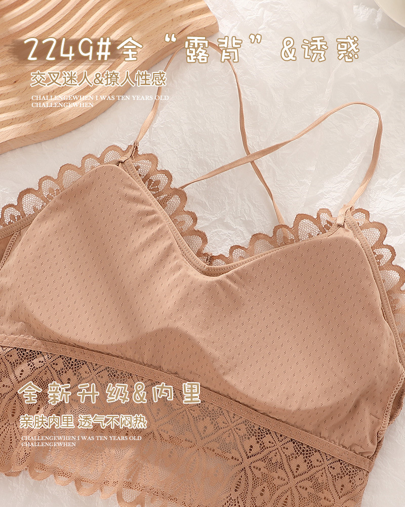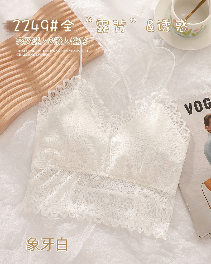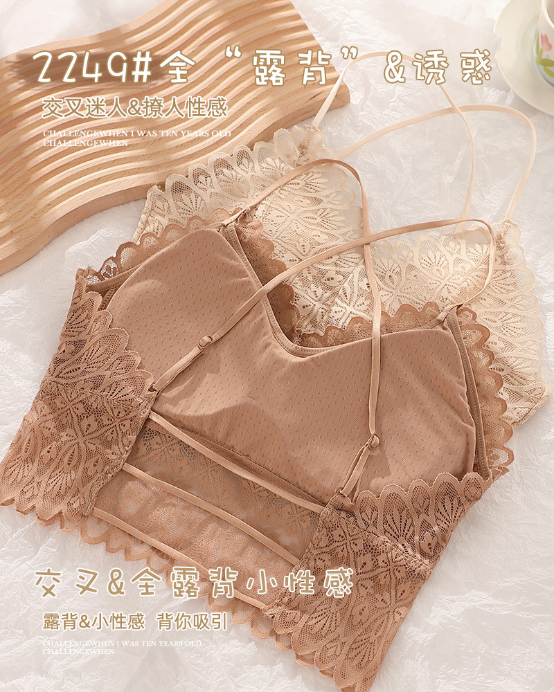 标题:蕾丝美背性感打底内搭薄款交叉吊带背心女带胸垫乳胶内衣