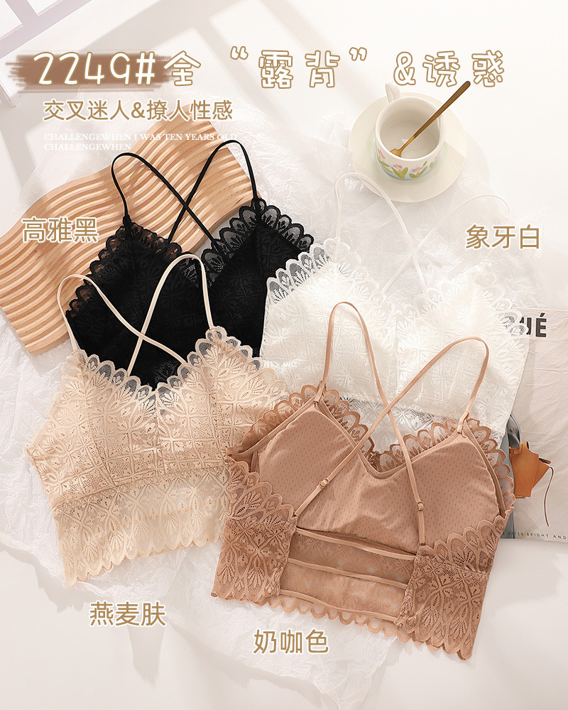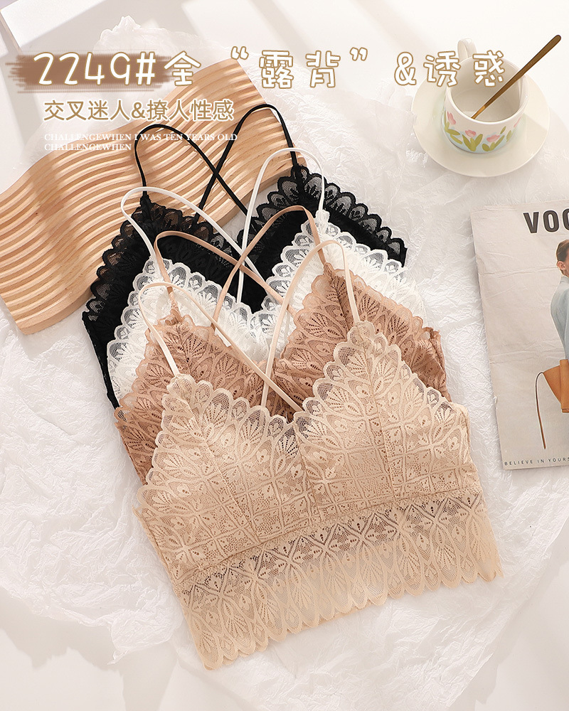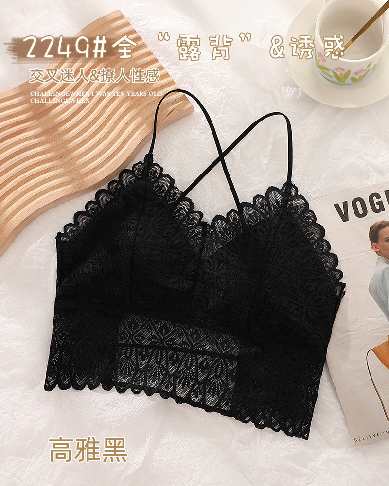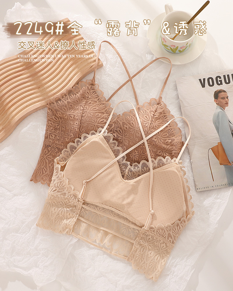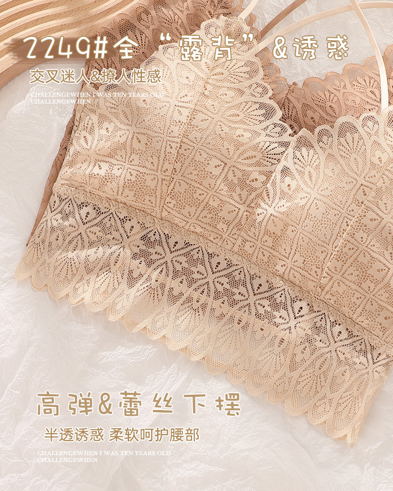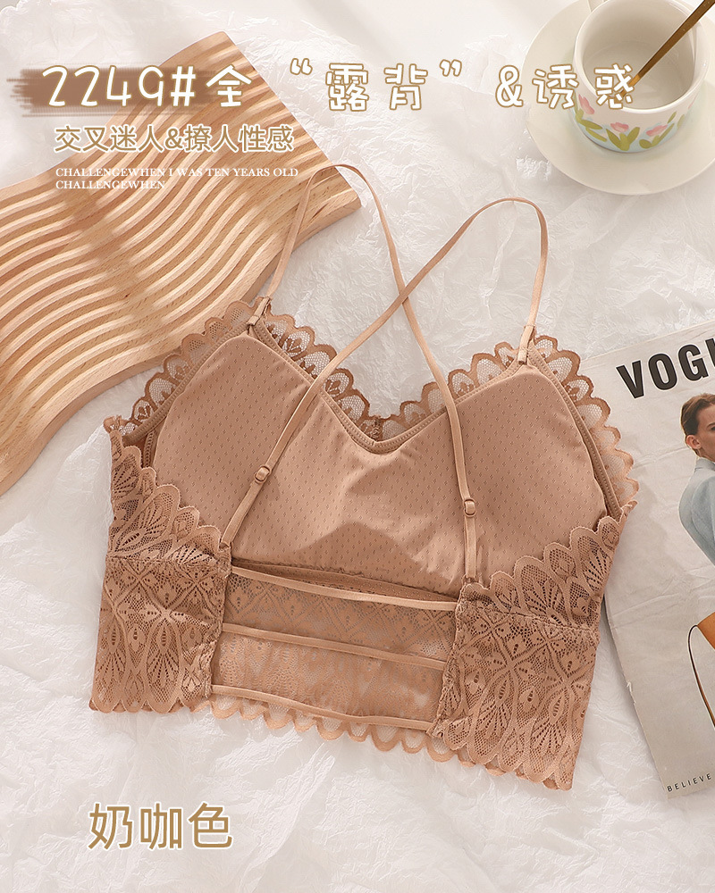 标题:蕾丝美背性感打底内搭薄款交叉吊带背心女带胸垫乳胶内衣