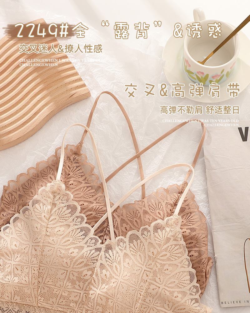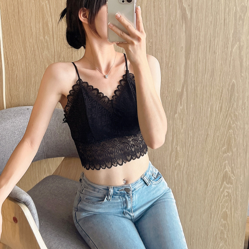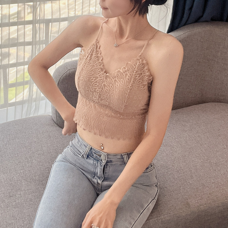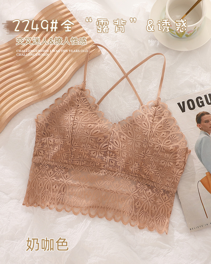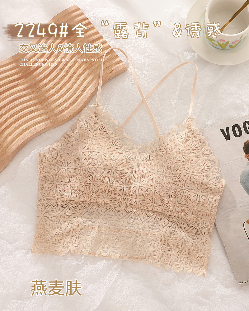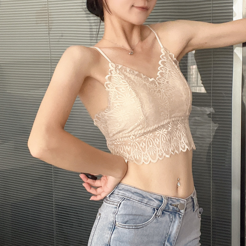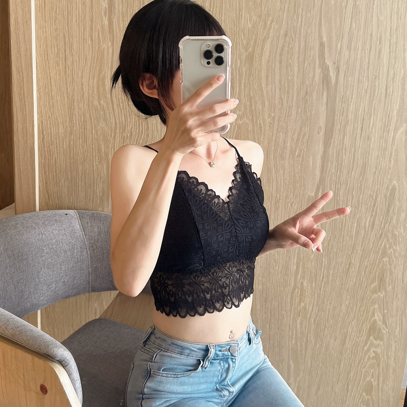 标题:蕾丝美背性感打底内搭薄款交叉吊带背心女带胸垫乳胶内衣