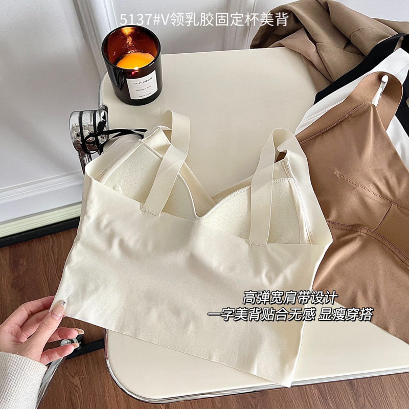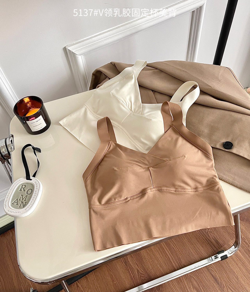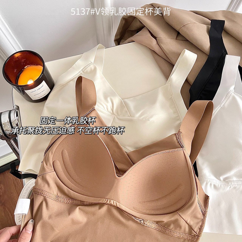 标题:冰丝美背无痕吊带一体式胸垫背心内搭乳胶内衣