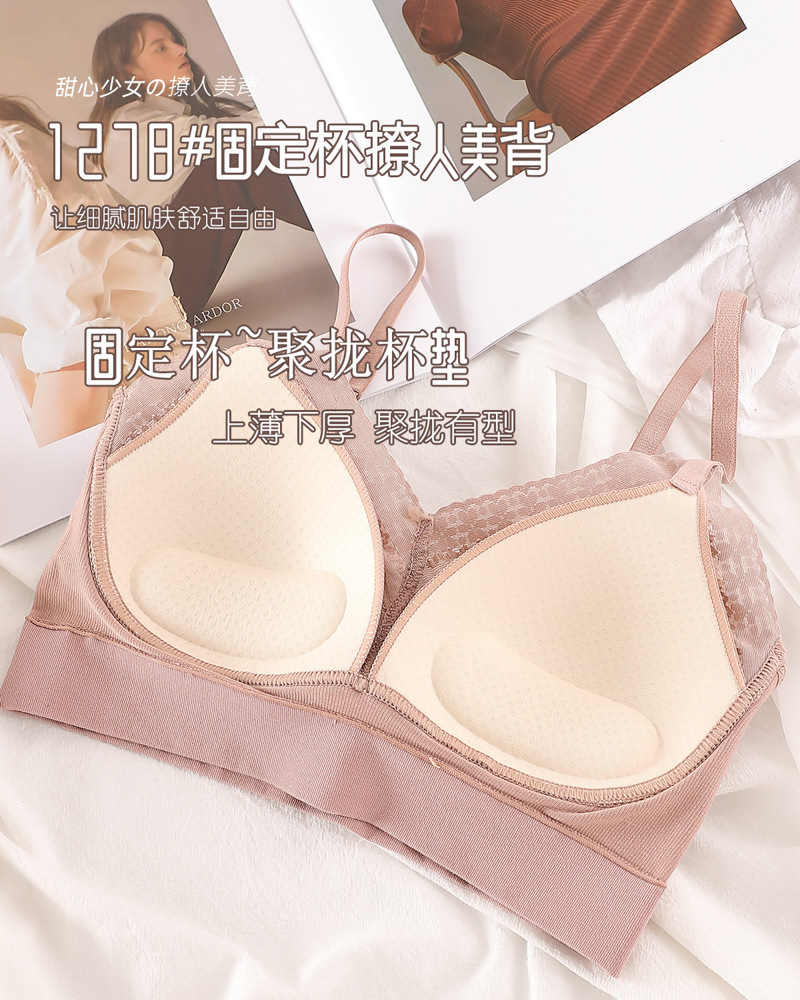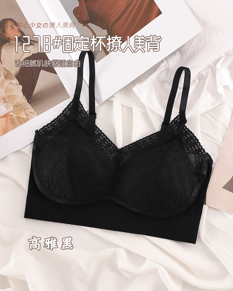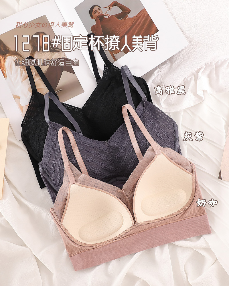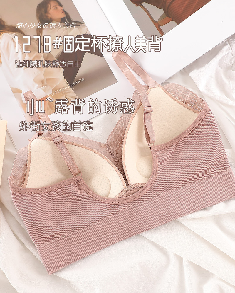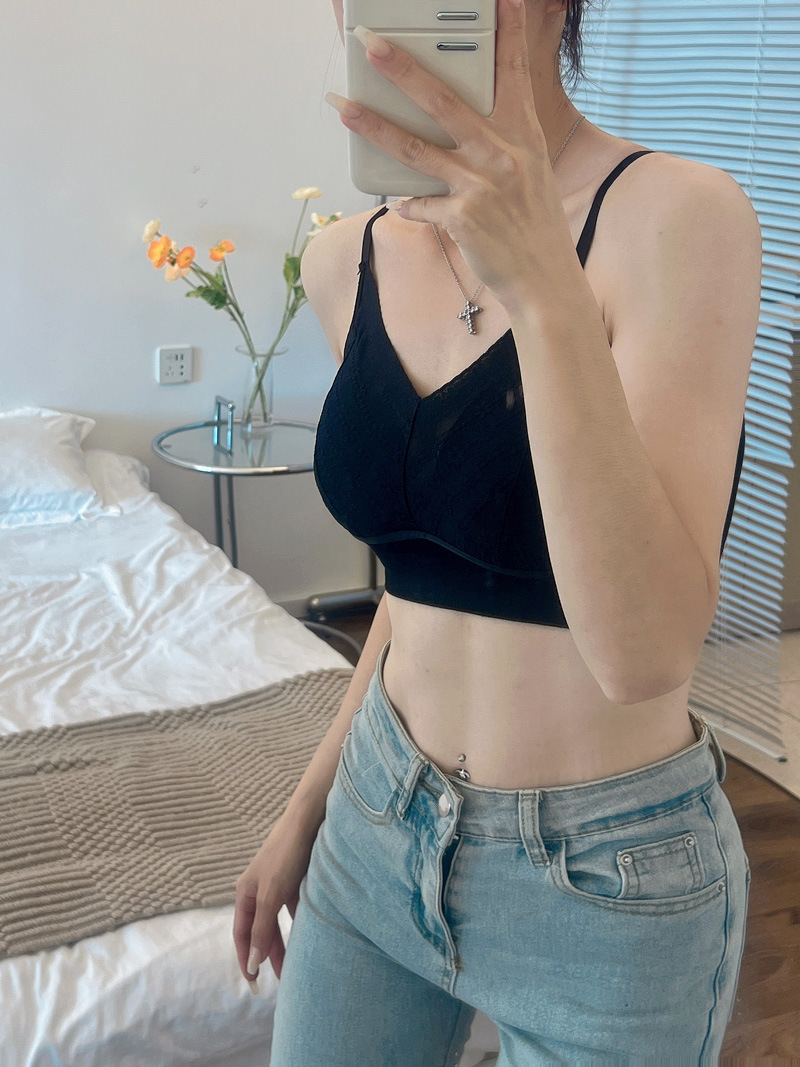 标题:蕾丝美背乳胶内衣吊带女一体式胸垫内搭背心薄款无钢圈文胸固定杯