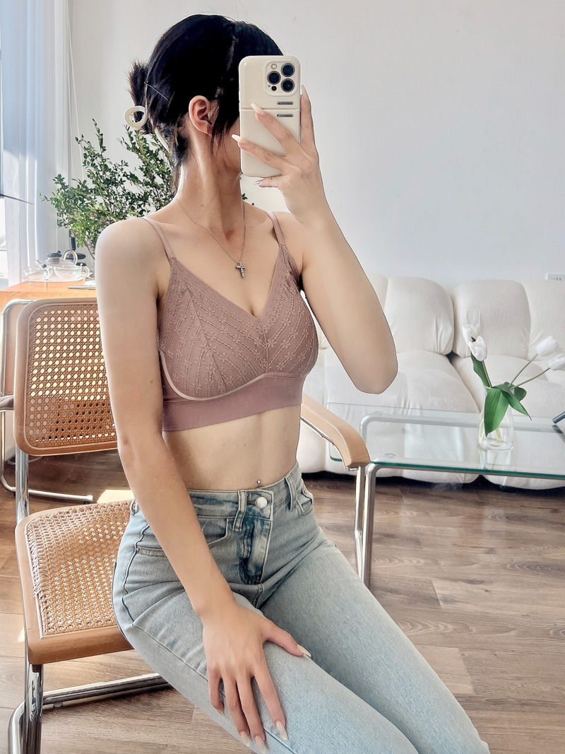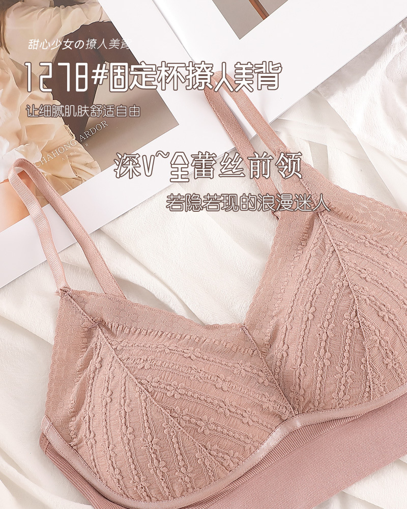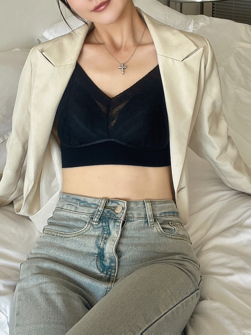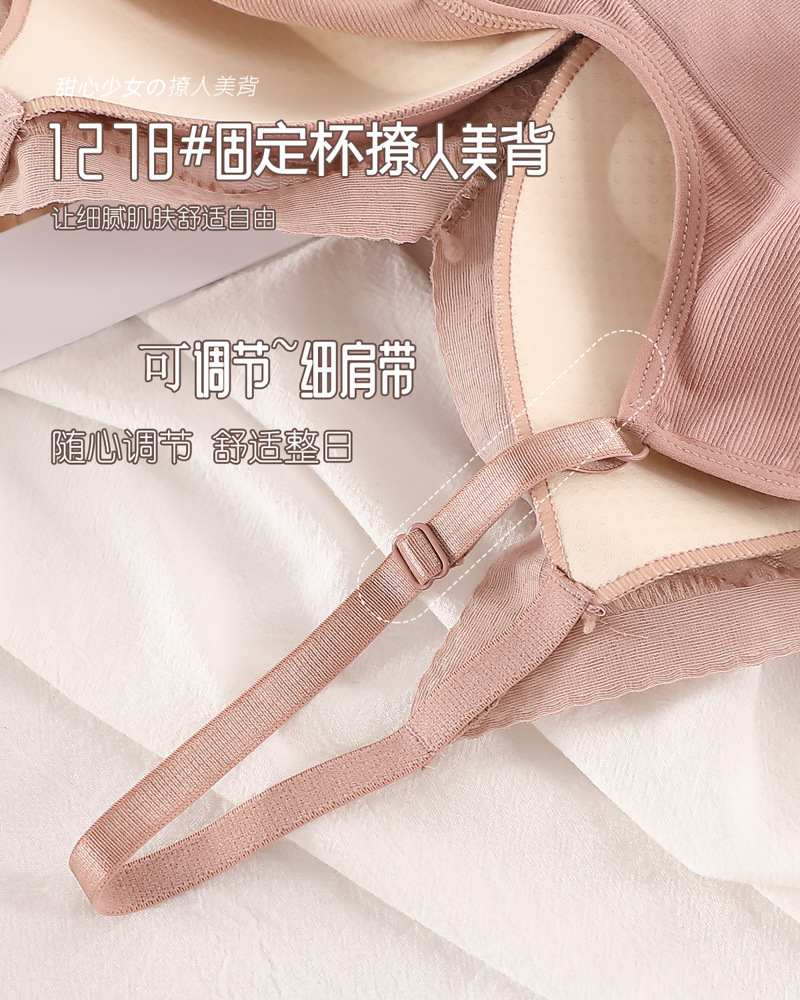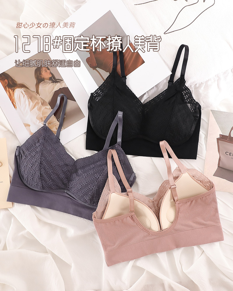 标题:蕾丝美背乳胶内衣吊带女一体式胸垫内搭背心薄款无钢圈文胸固定杯