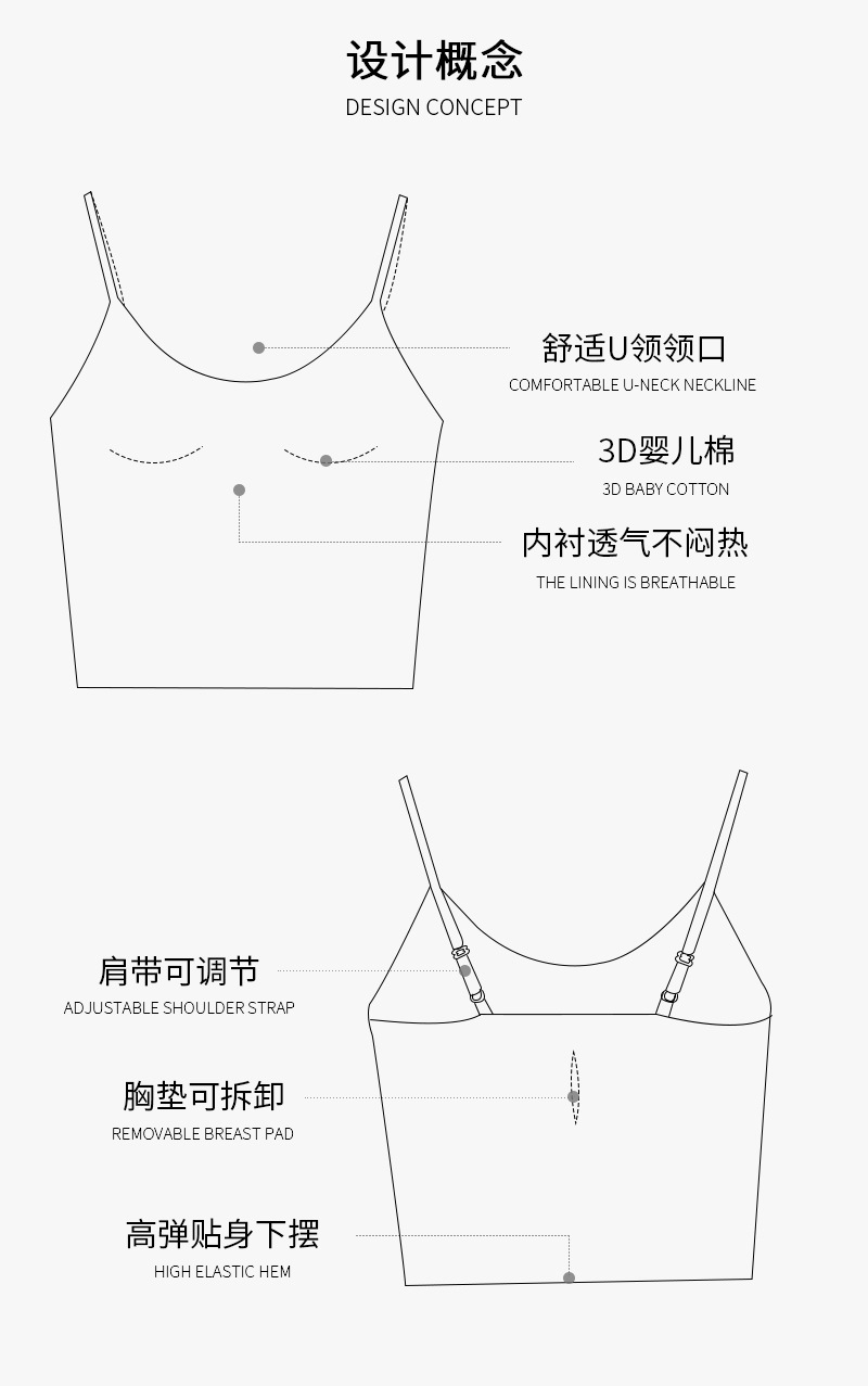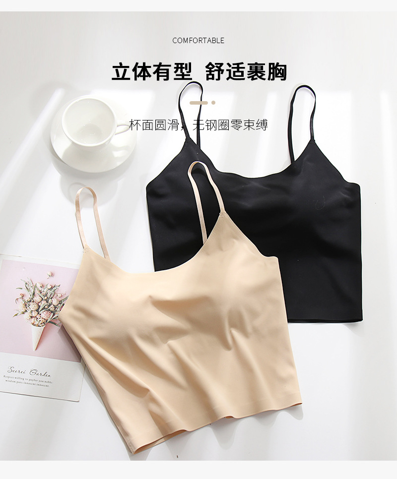 标题:外贸冰丝抹胸美背吊带背心带胸垫一体式性感运动女士内衣无痕裹胸