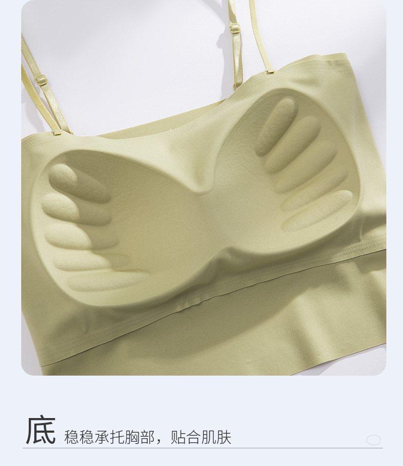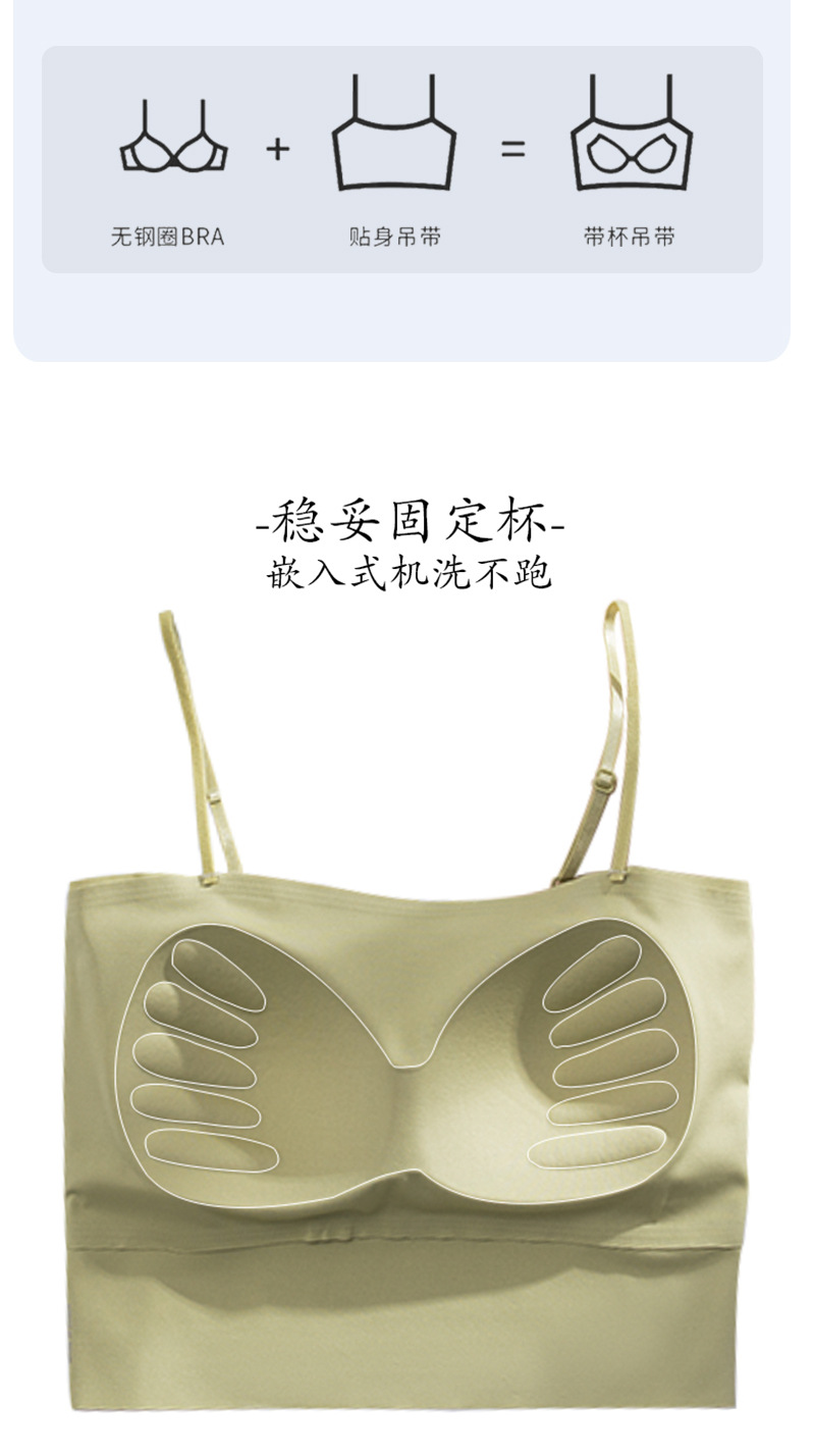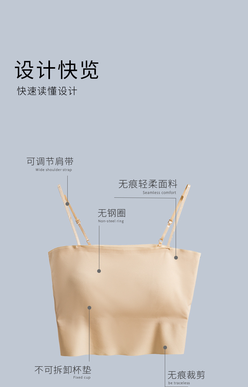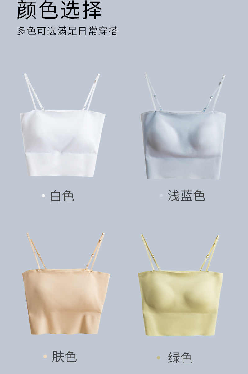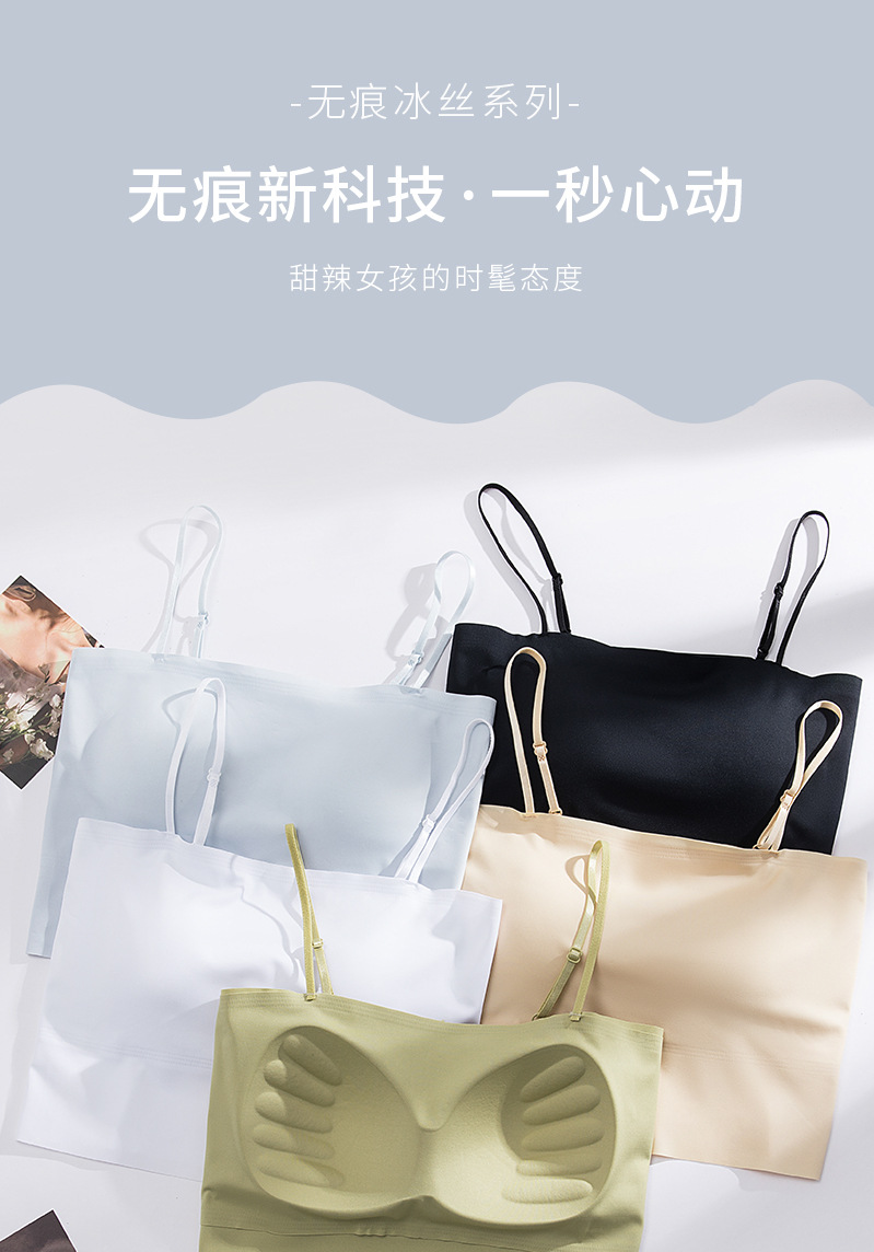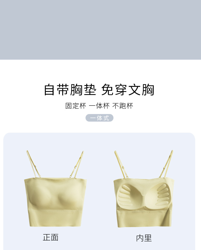 标题:新款固定空气杯抹胸式吊带背心无痕一字领轻运动风夏季冰丝内衣女