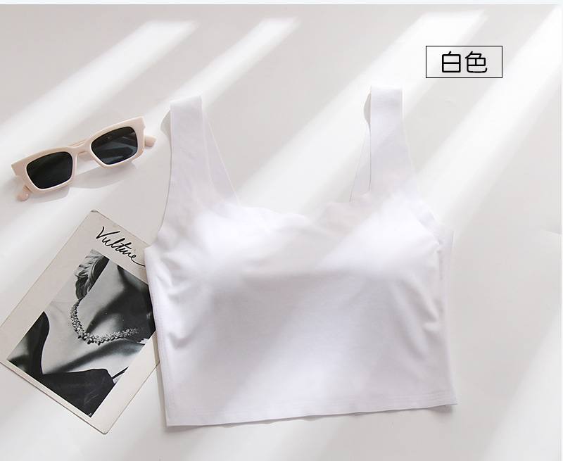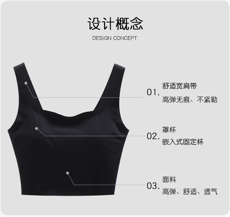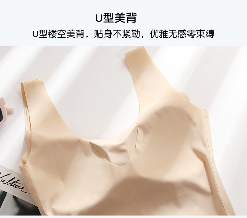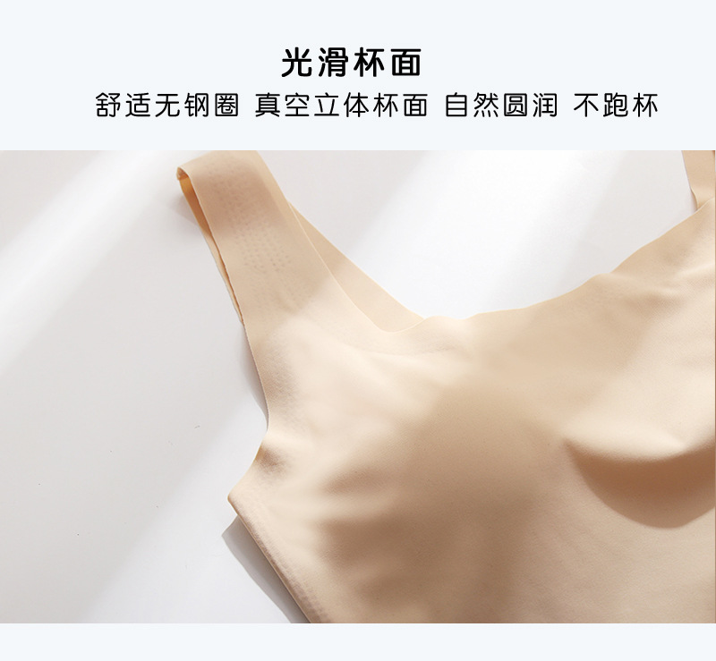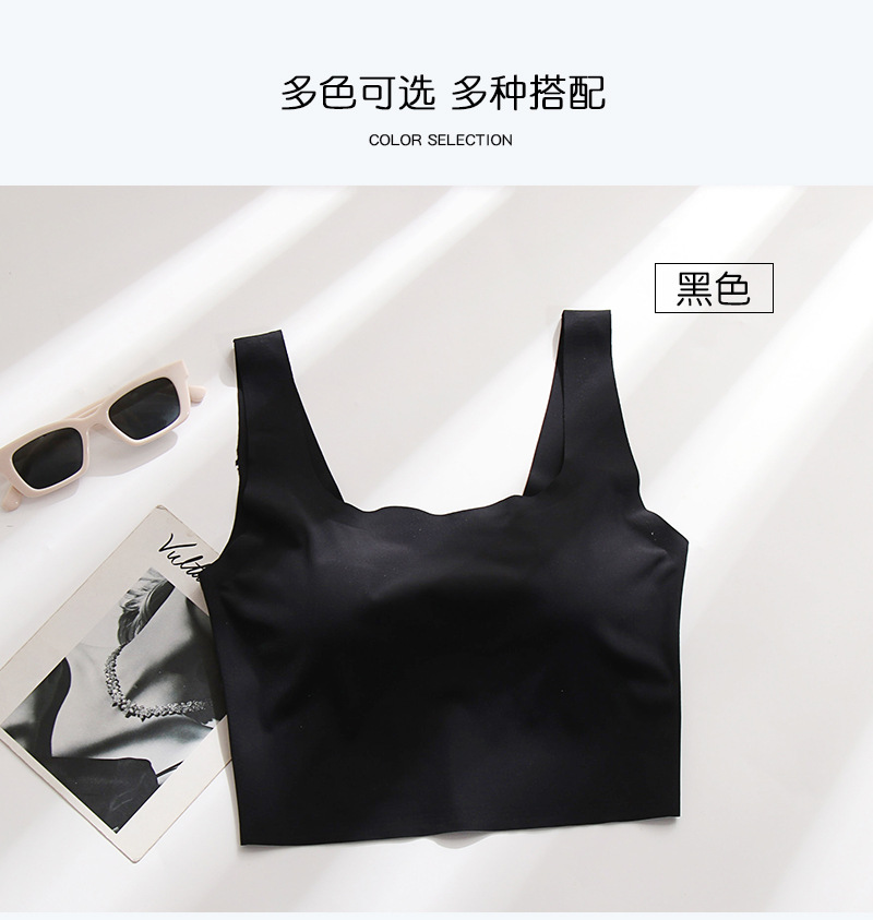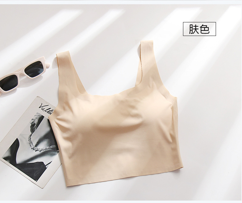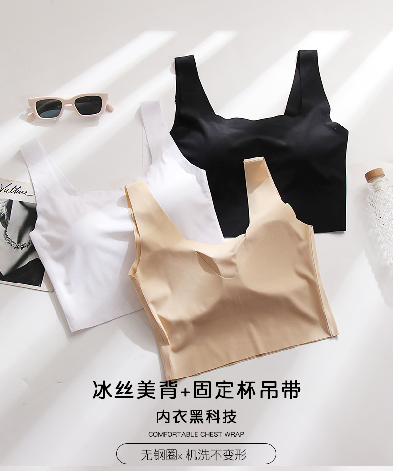 标题:新款夏季冰丝固定杯宽肩带背心一片式无痕经典韩版吊带内衣女批发