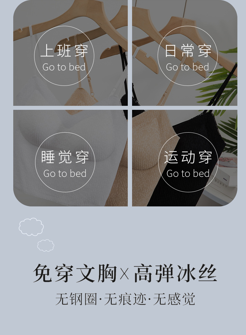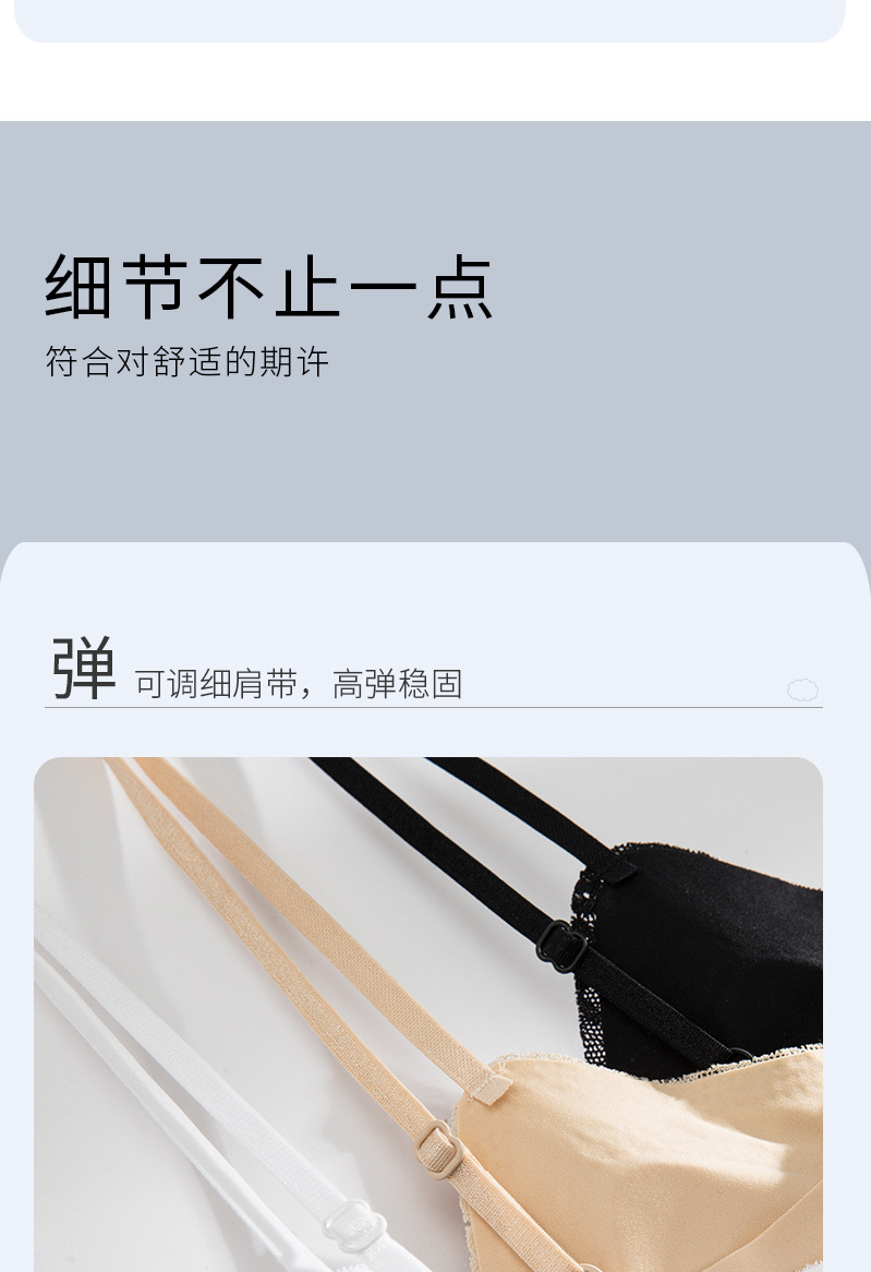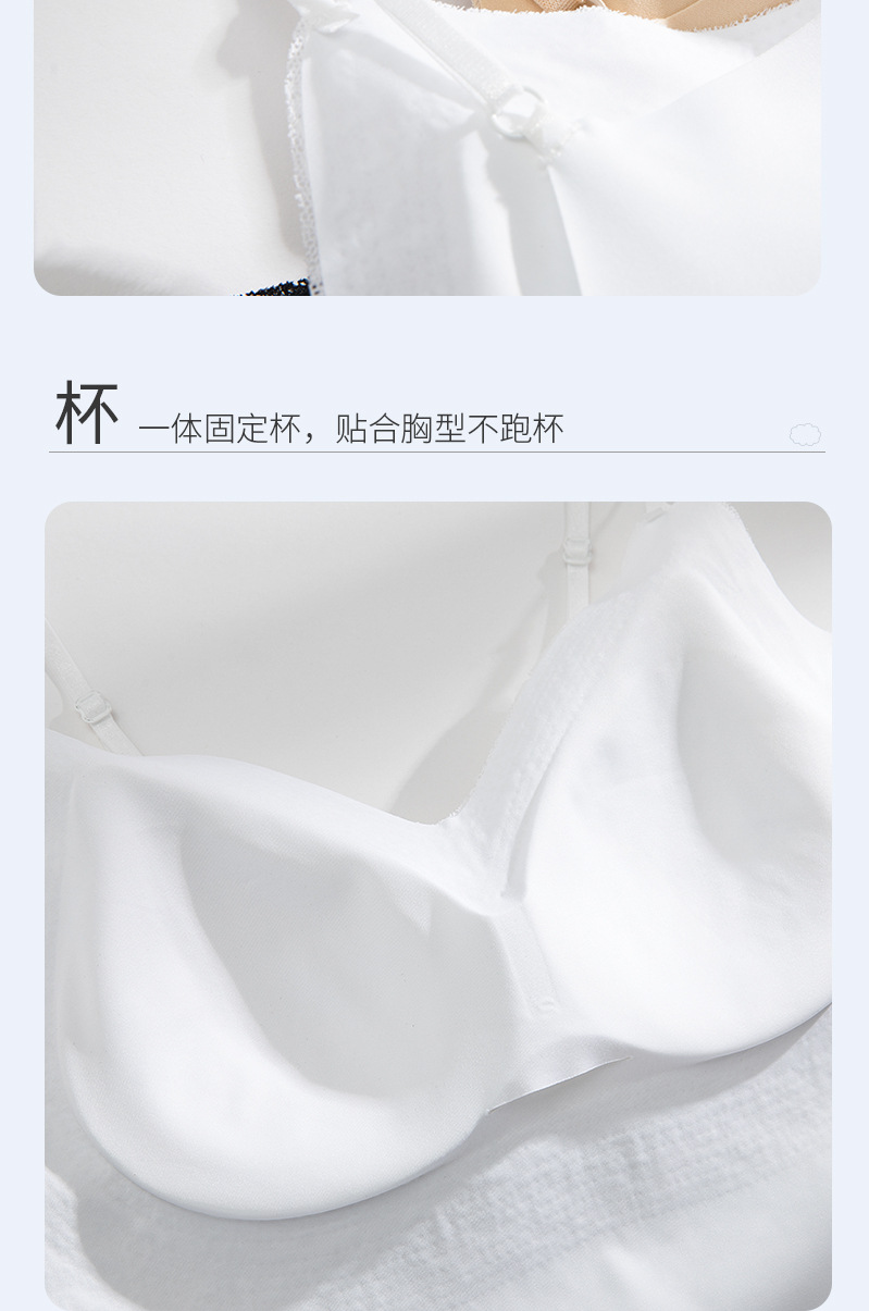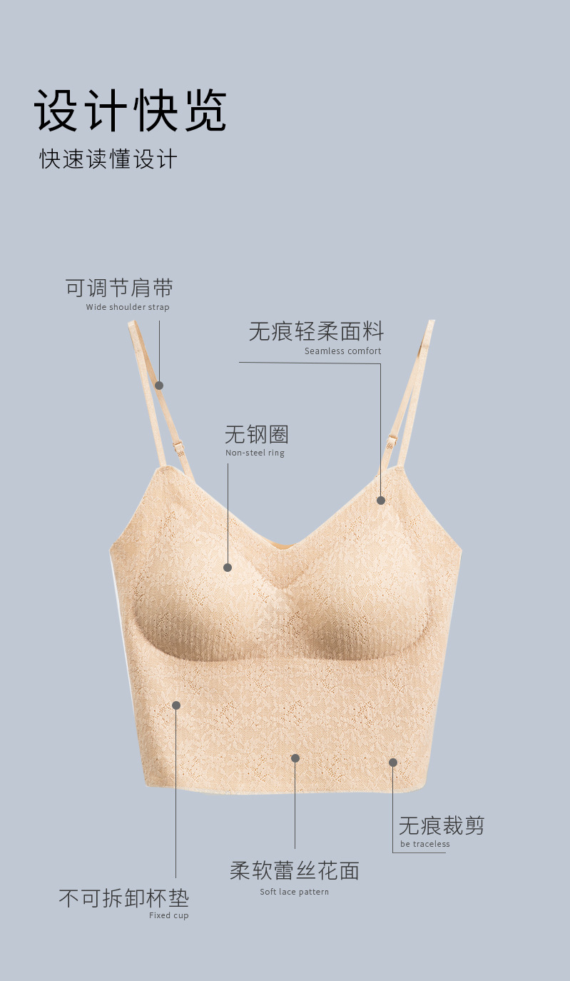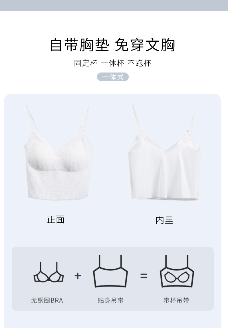 标题:夏季纯欲仙女风固定杯蕾丝吊带内衣罩杯一体免穿文胸性感露脐美背