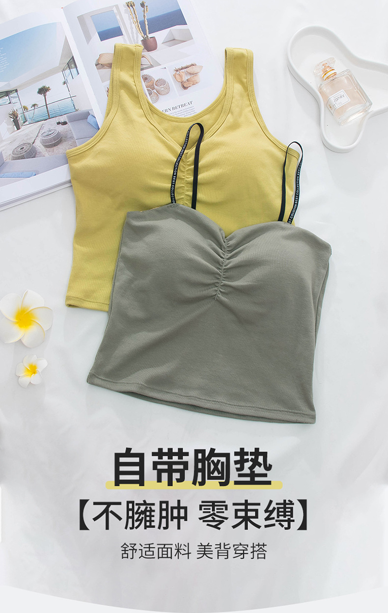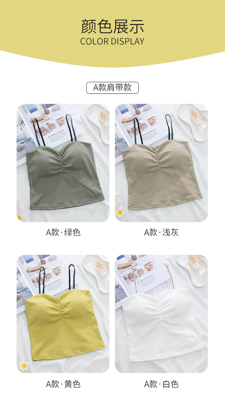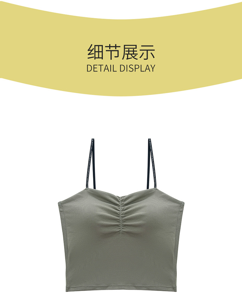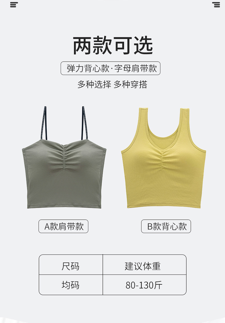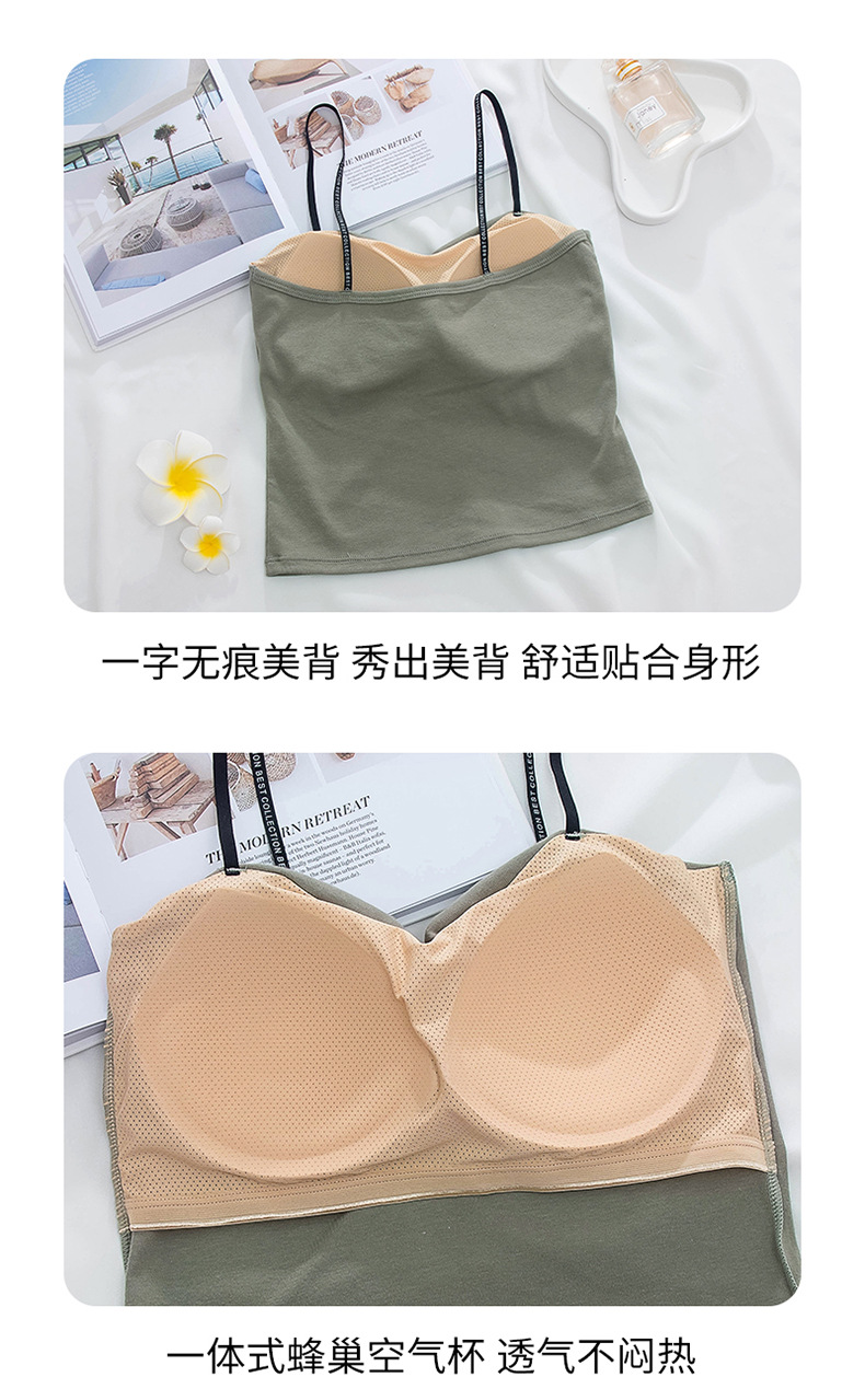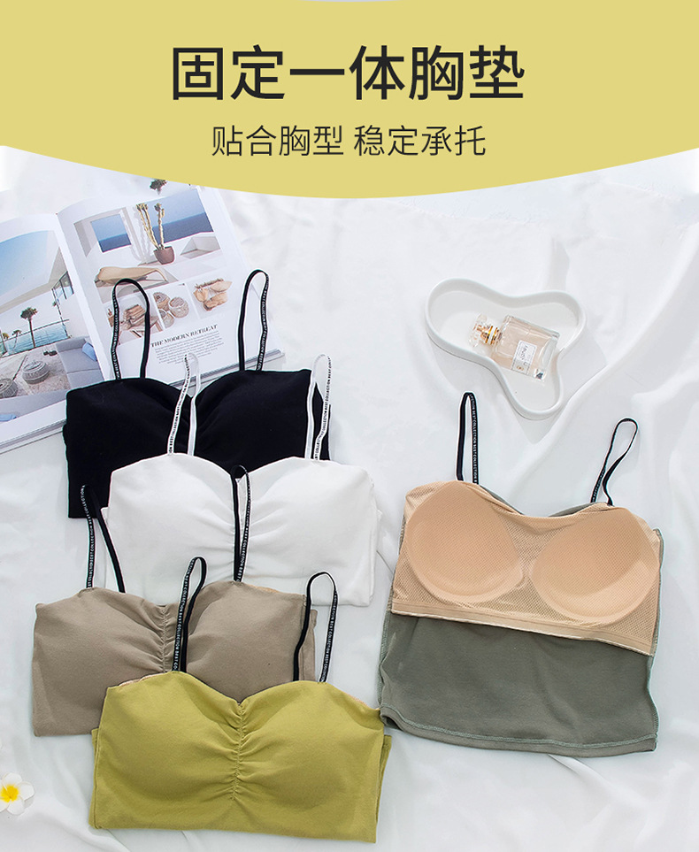标题:固定杯乳胶女士内衣字母吊带背心带胸垫免穿文胸经典纯色少女美背