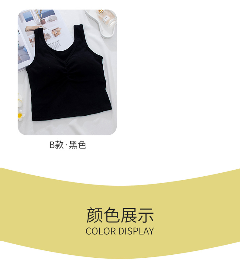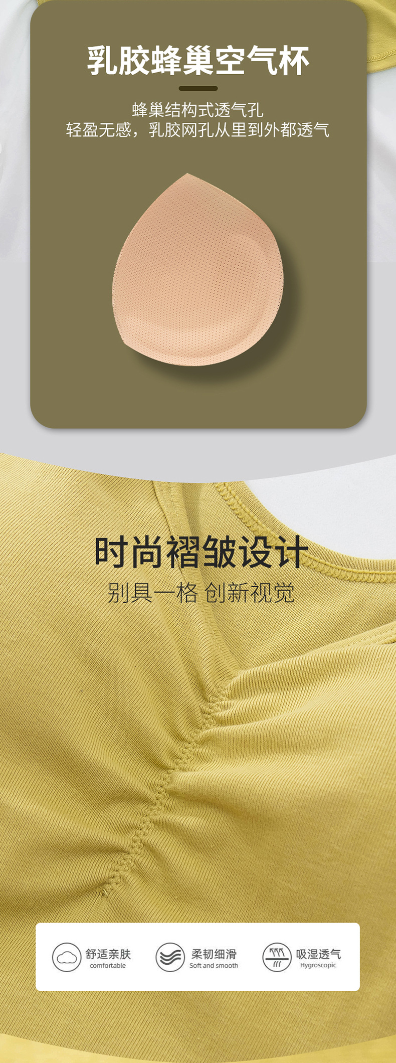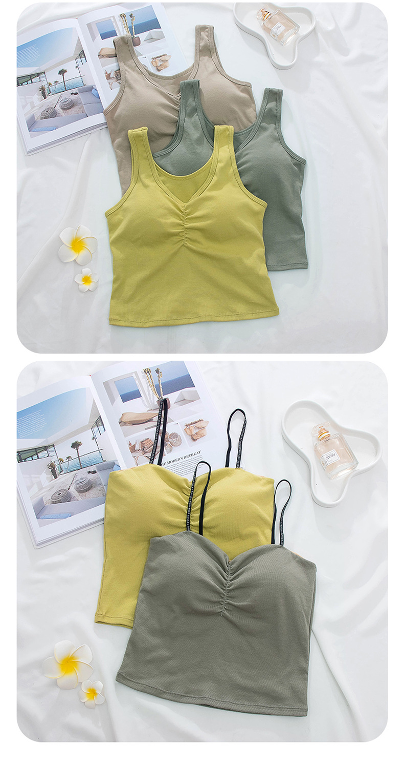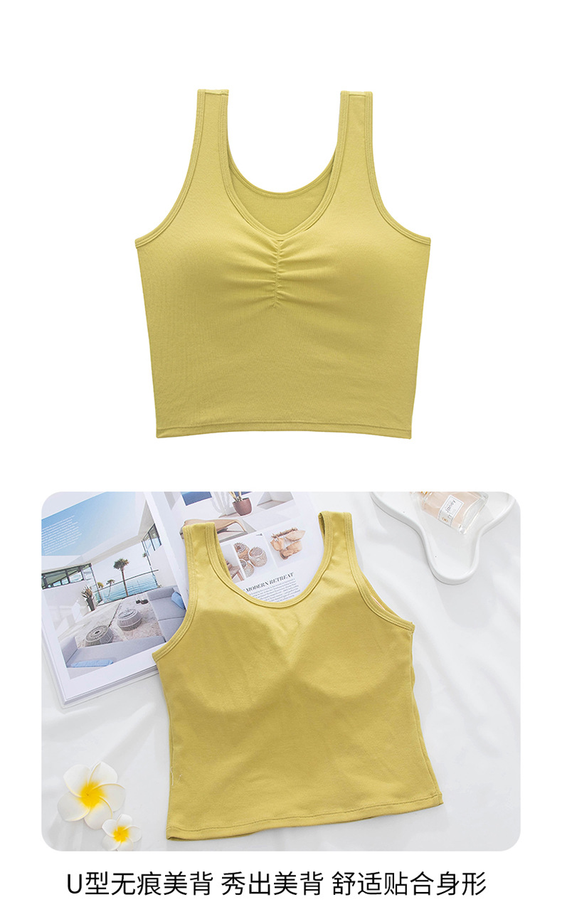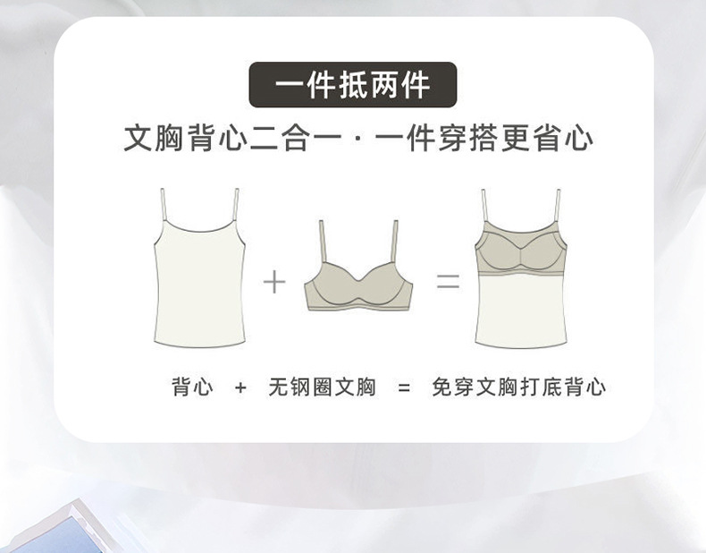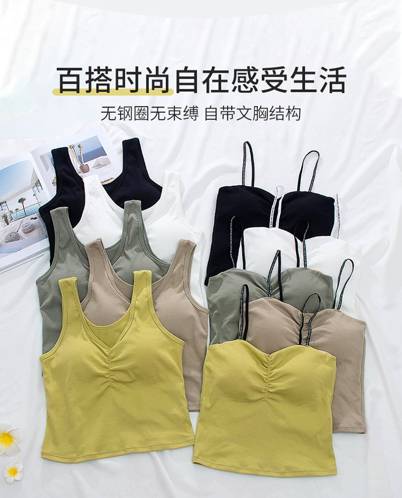 标题:固定杯乳胶女士内衣字母吊带背心带胸垫免穿文胸经典纯色少女美背