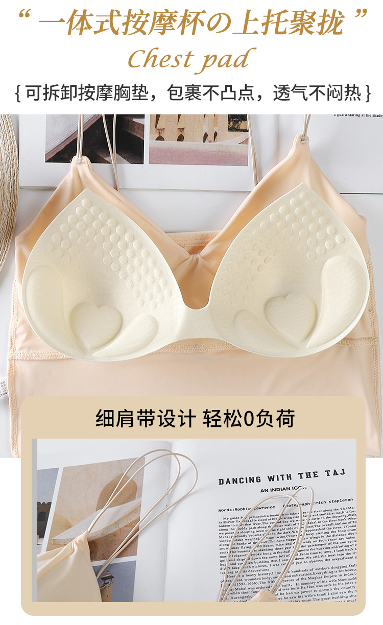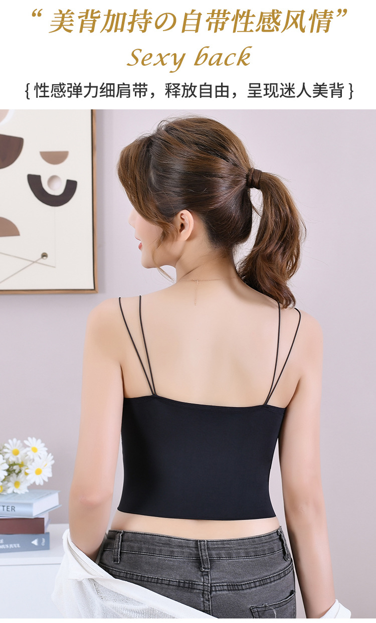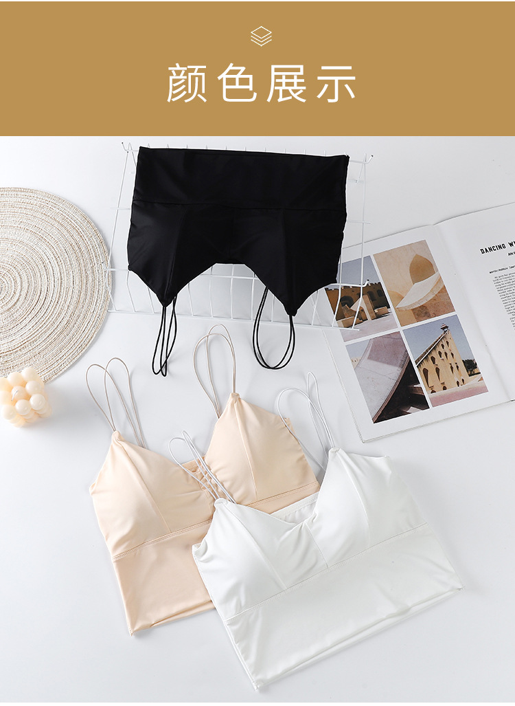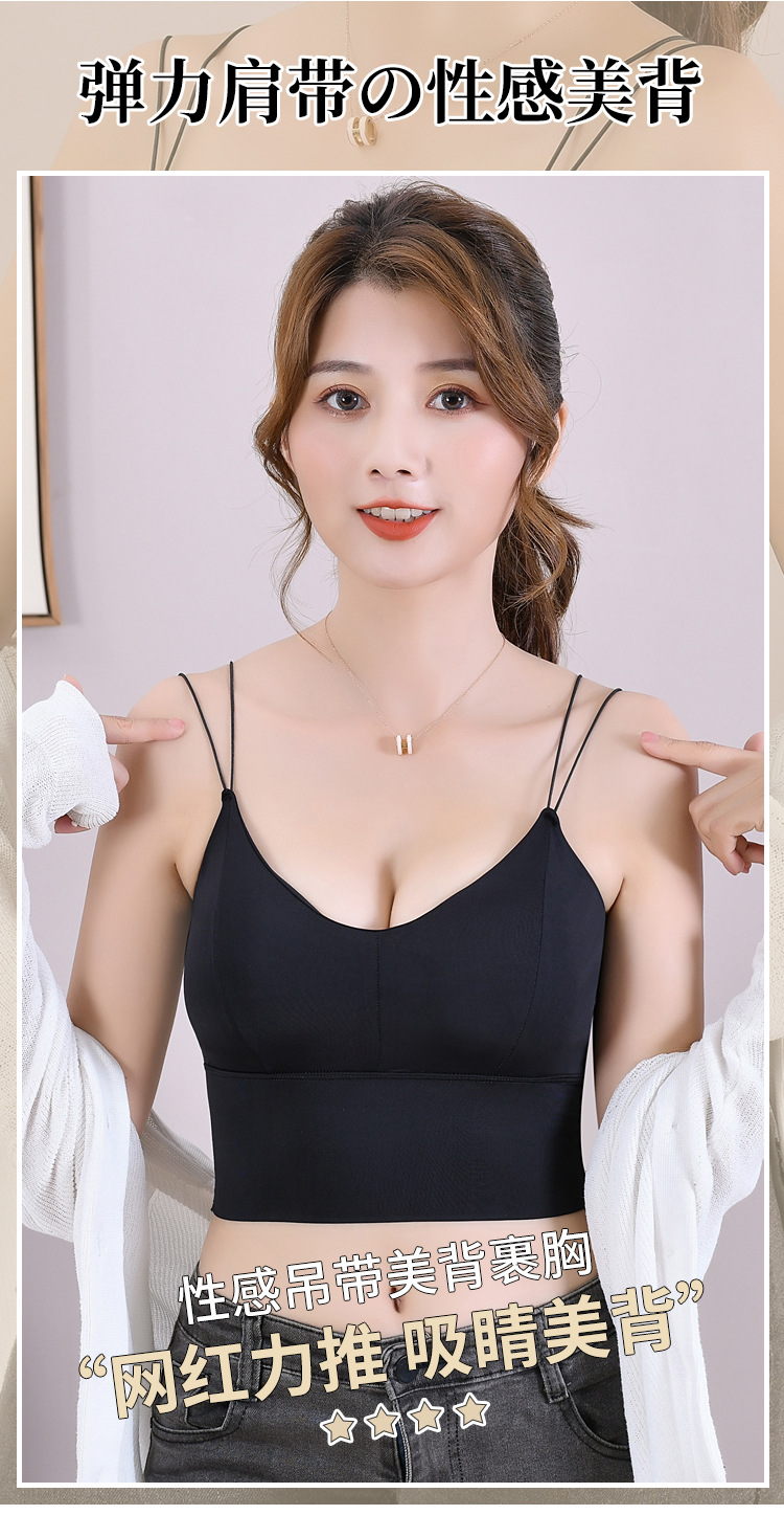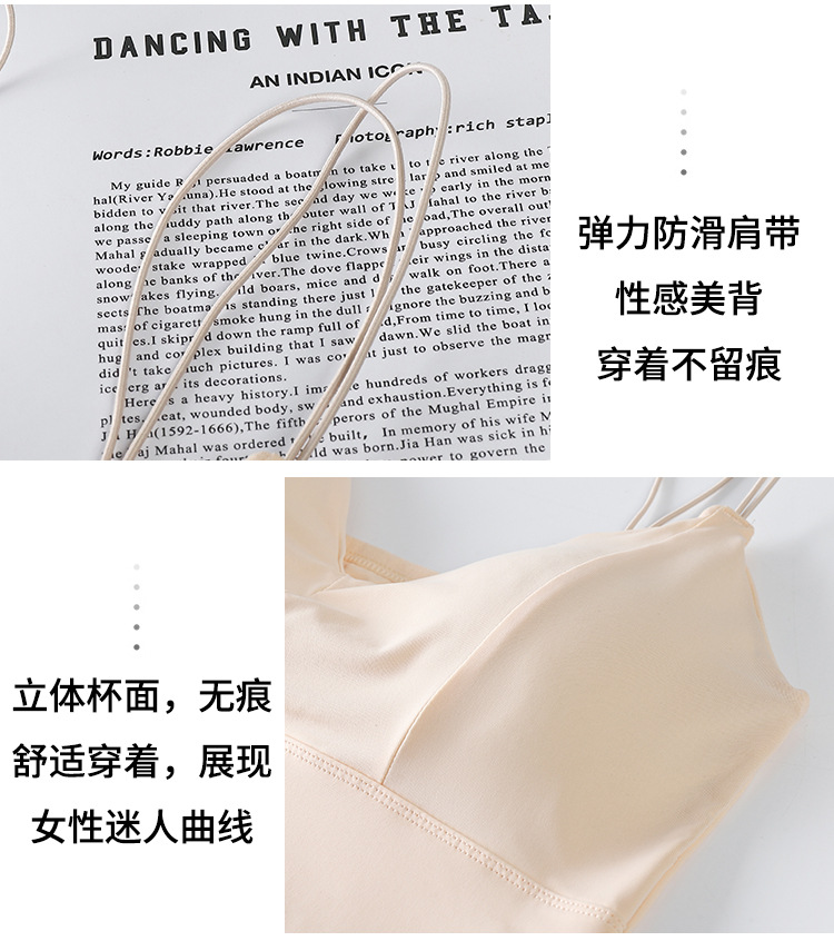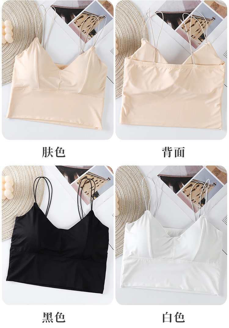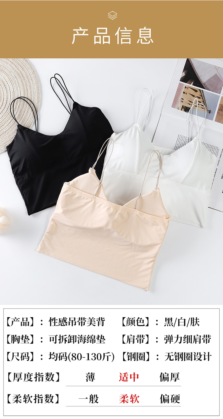 标题:夏季冰丝无痕吊带背心带胸垫美背抹胸内衣无钢圈学生打底裹胸文胸